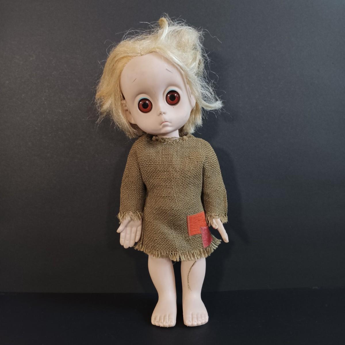 The Little Miss No Name doll comes as shown, it does not have the tear.