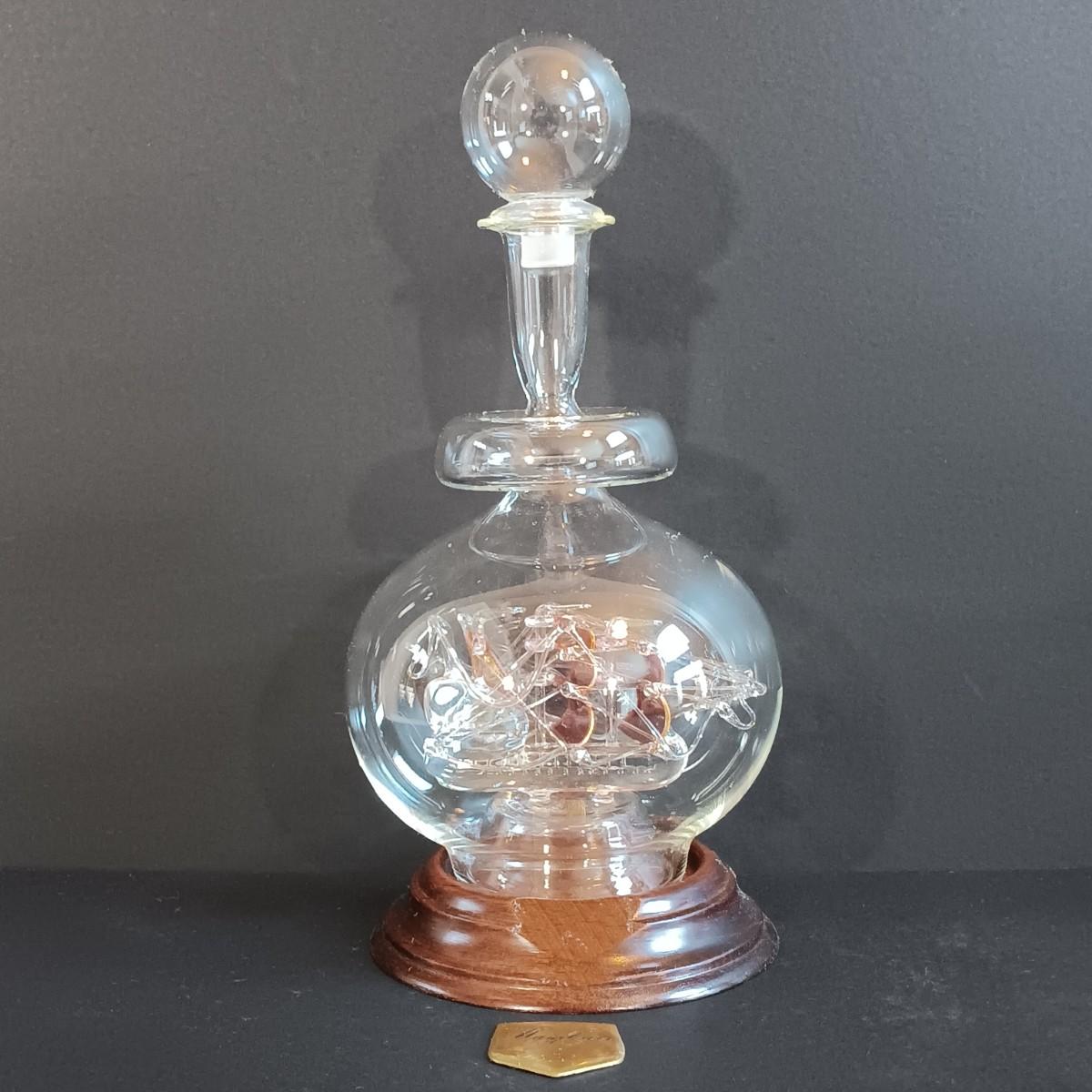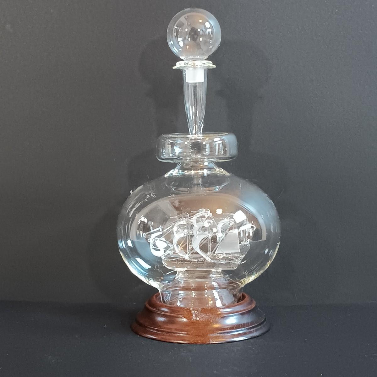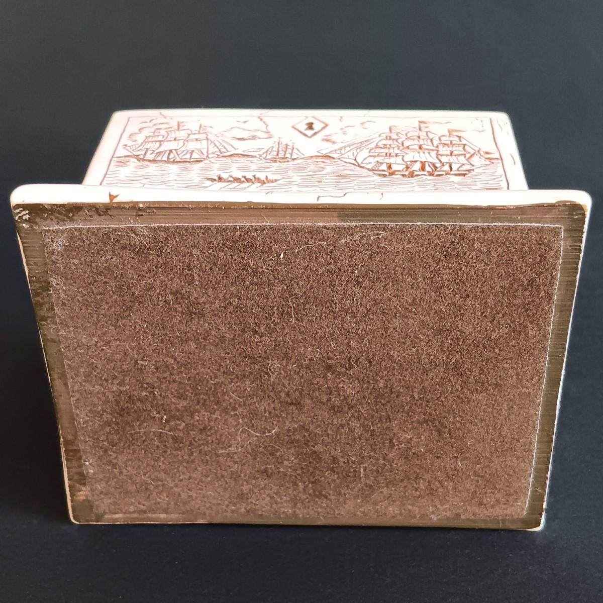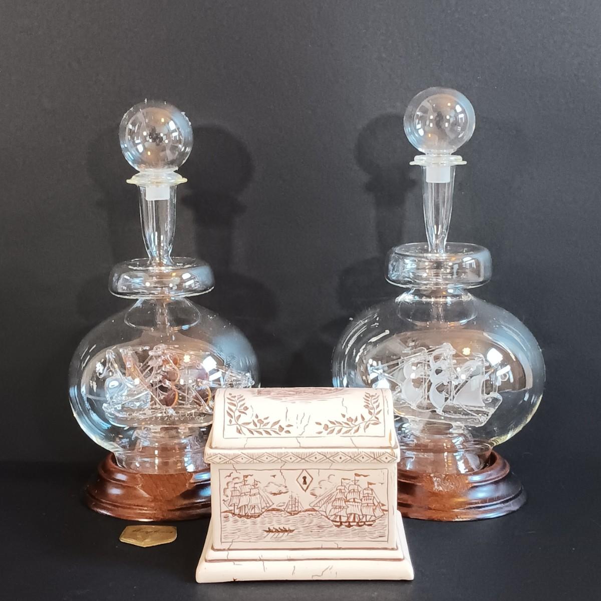 LOT 54: Set of (2) Glass Ships in a Glass Bottle and Faux Scrimshaw Trinket Box