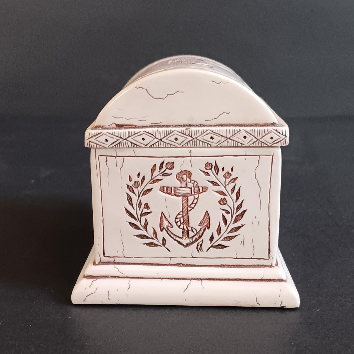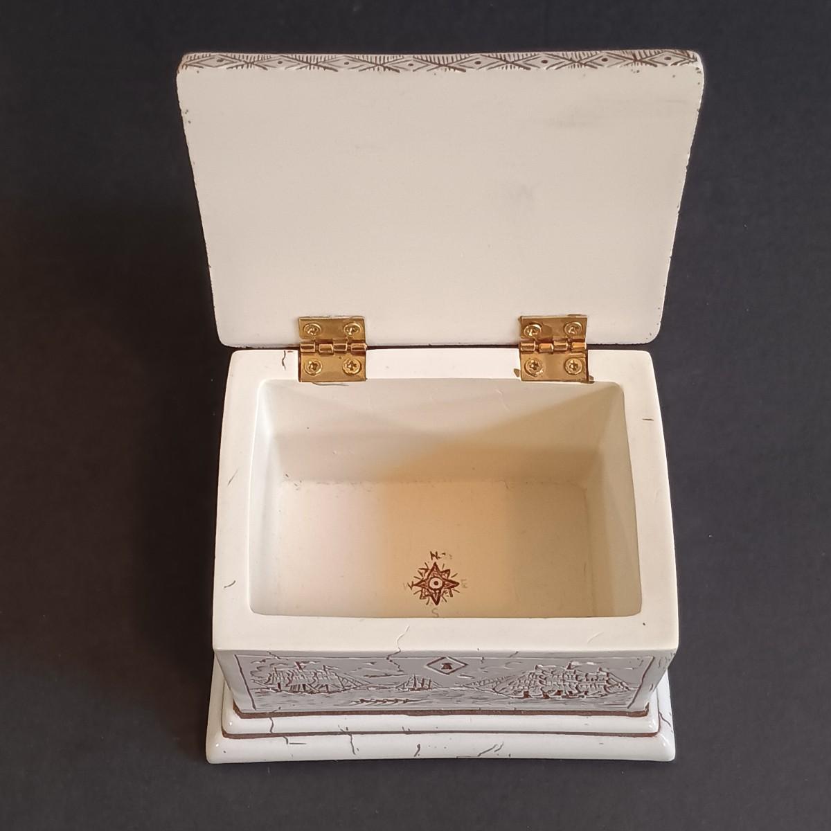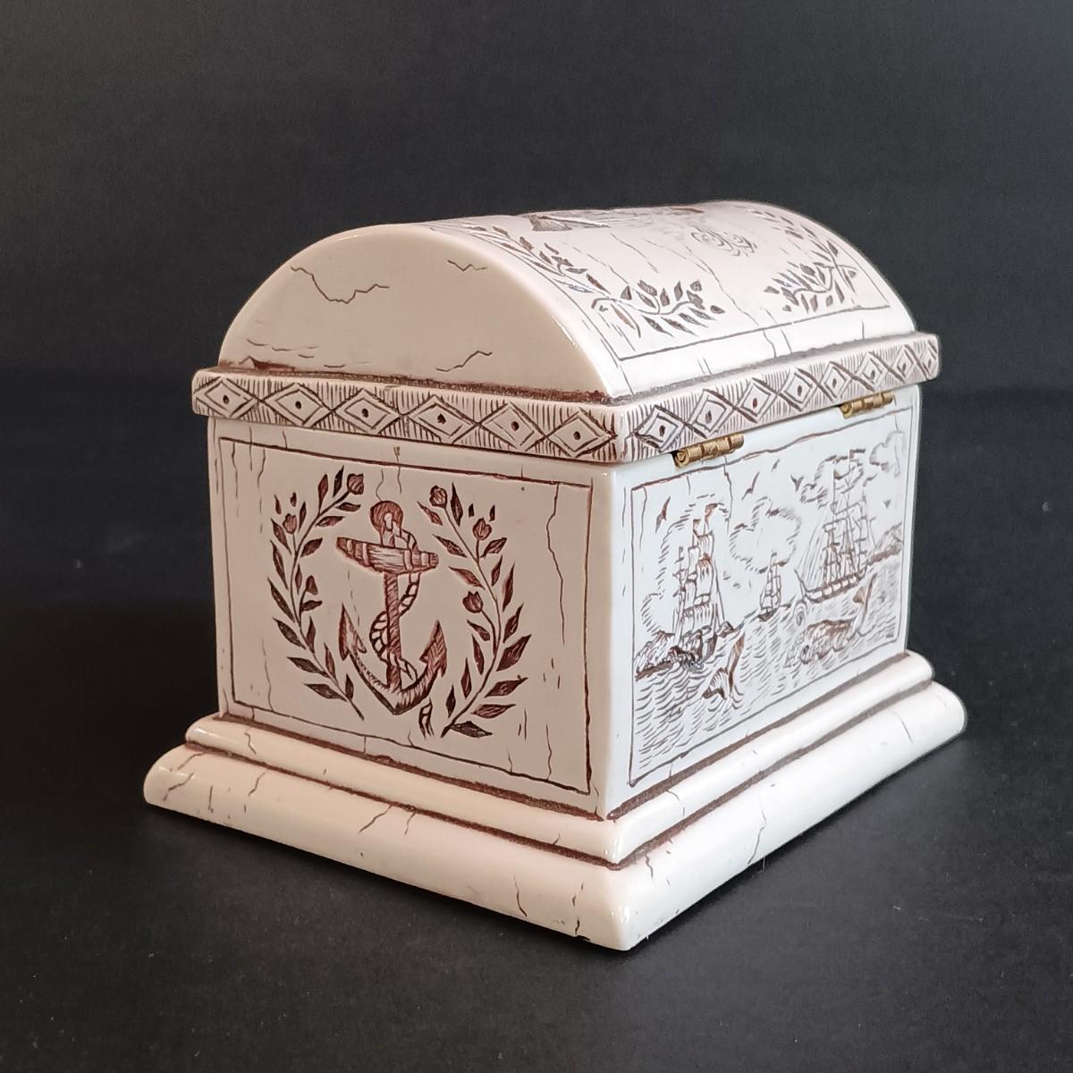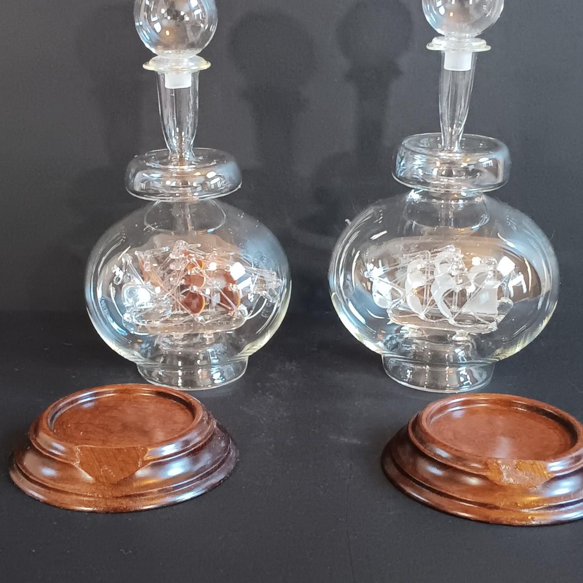 LOT 54: Set of (2) Glass Ships in a Glass Bottle and Faux Scrimshaw Trinket Box