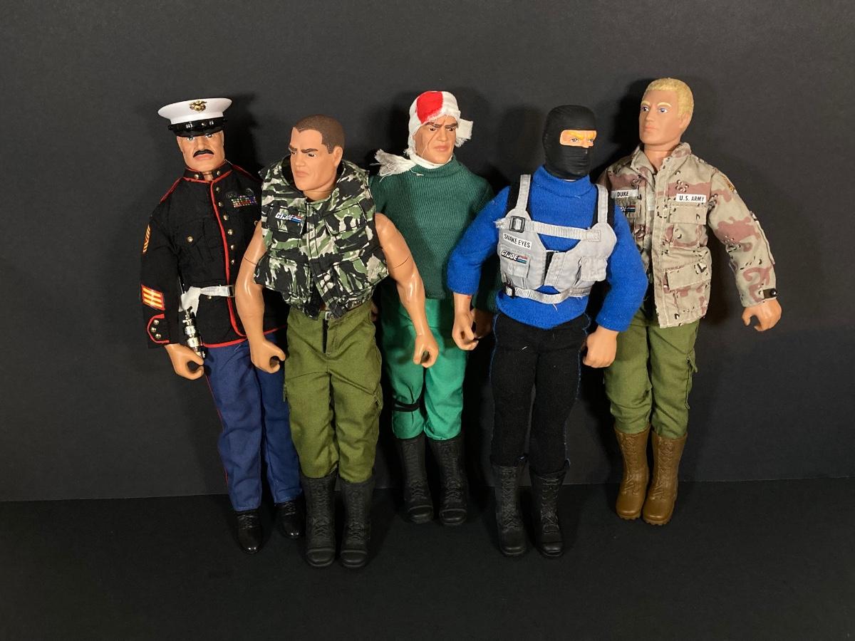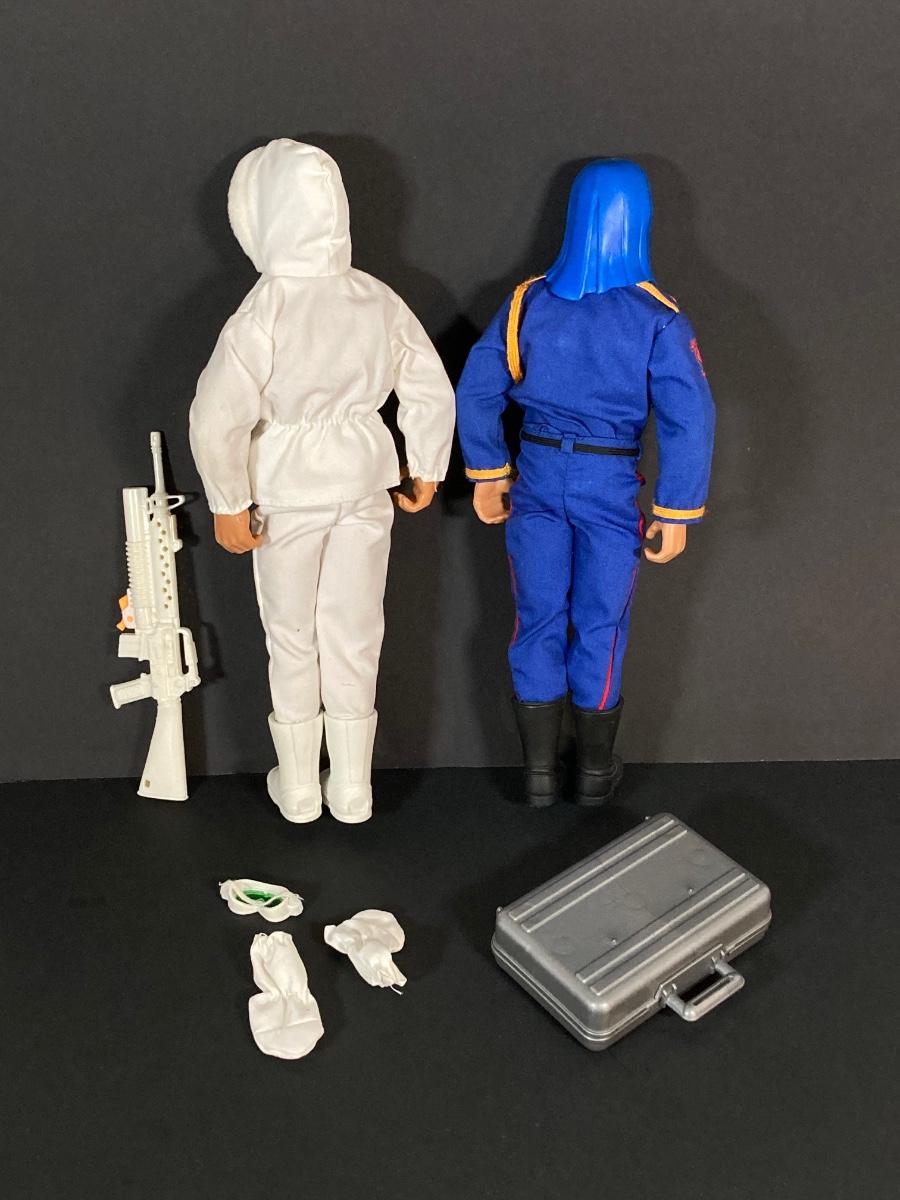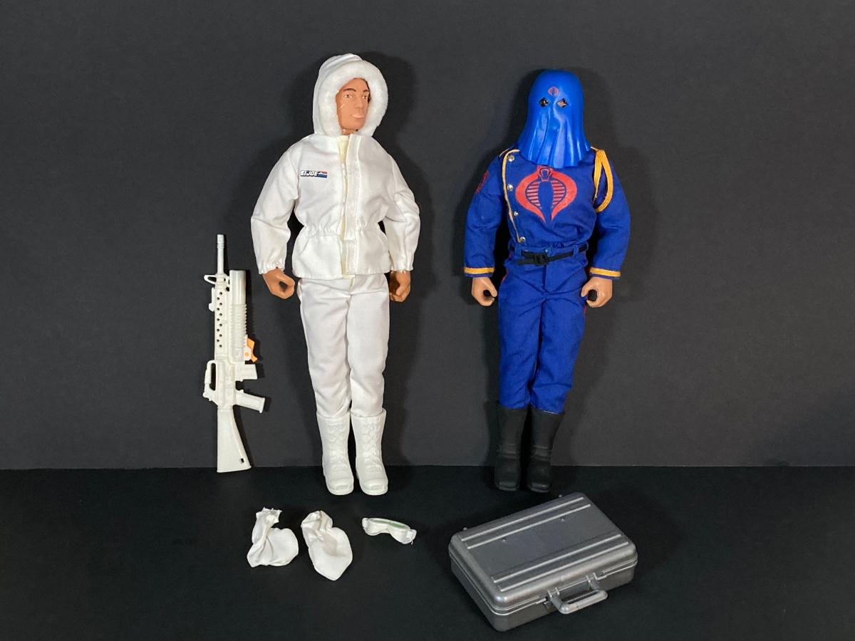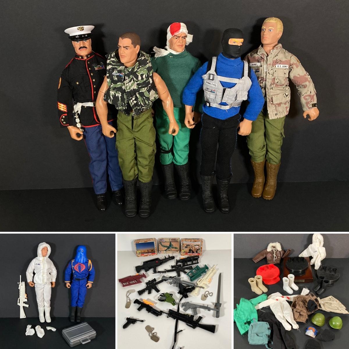 LOT 68: Collection of G.I. Joe Action Figures, Stands, Clothing, Parts, Desert Storm Cards and More
