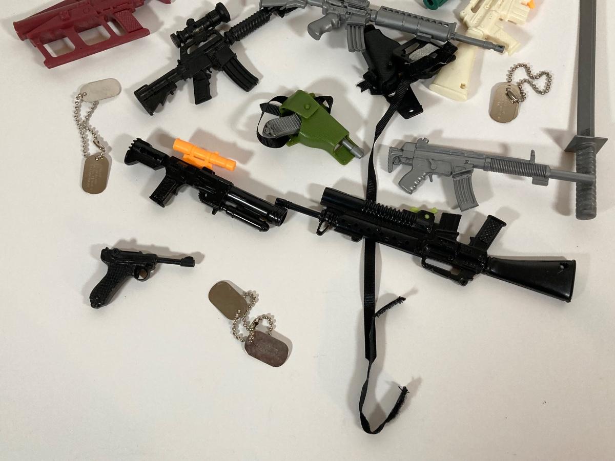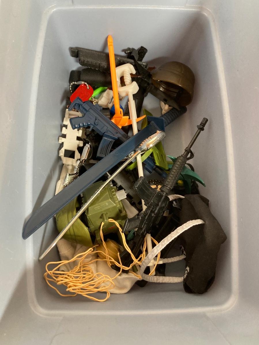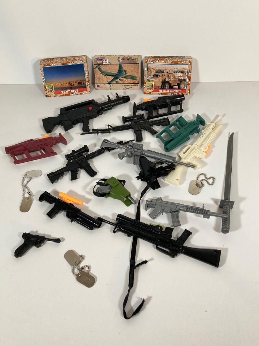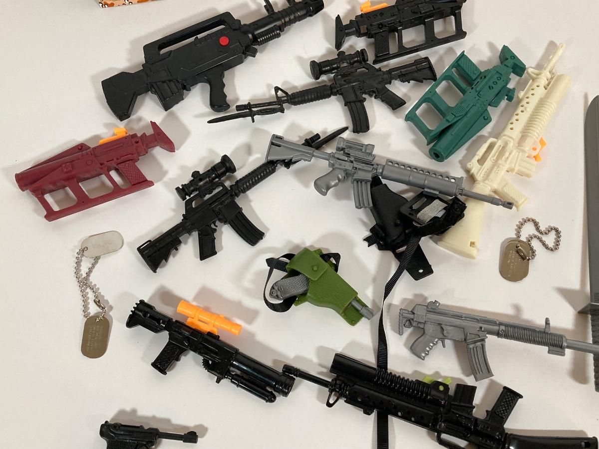 LOT 68: Collection of G.I. Joe Action Figures, Stands, Clothing, Parts, Desert Storm Cards and More