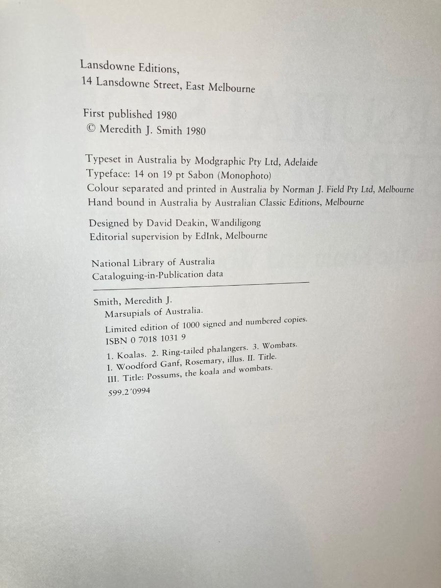 LOT 73: Signed and Numbered Marsupials of Australia Oversized Book by M. J. Smith and R. Woodford Ganf