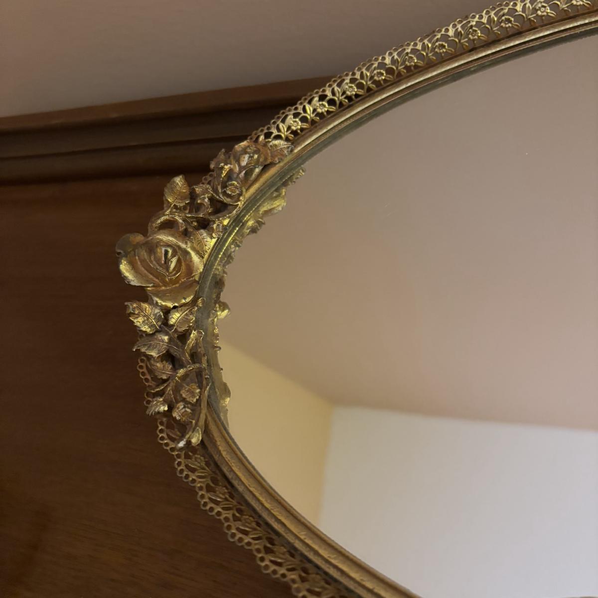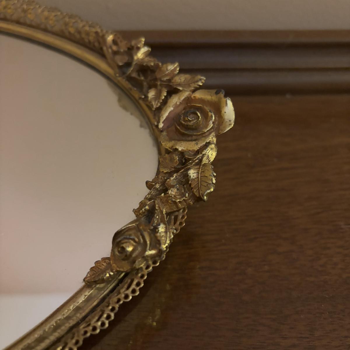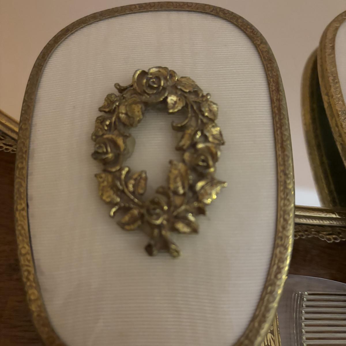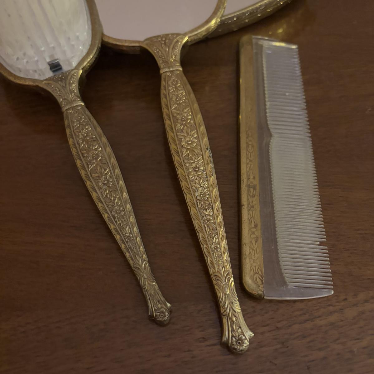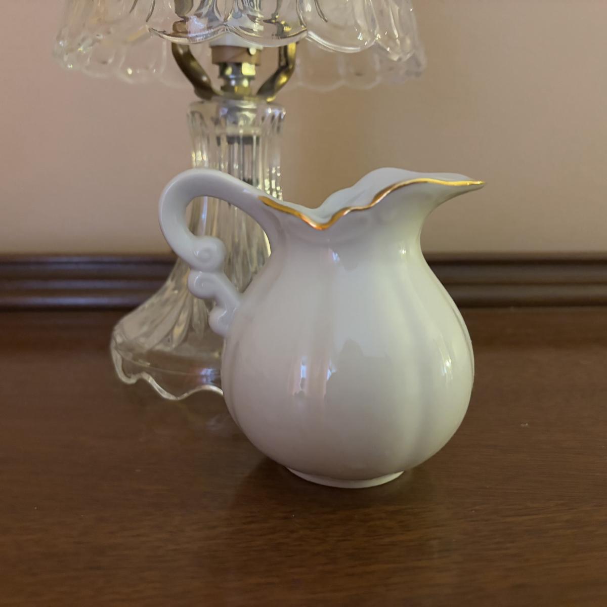 LOT 97: Vanity Collection: Crystal Night Light Lamp, Mirrored Vanity Tray, Hand Mirror, Brush, Comb Set, Lefton Pitcher & More