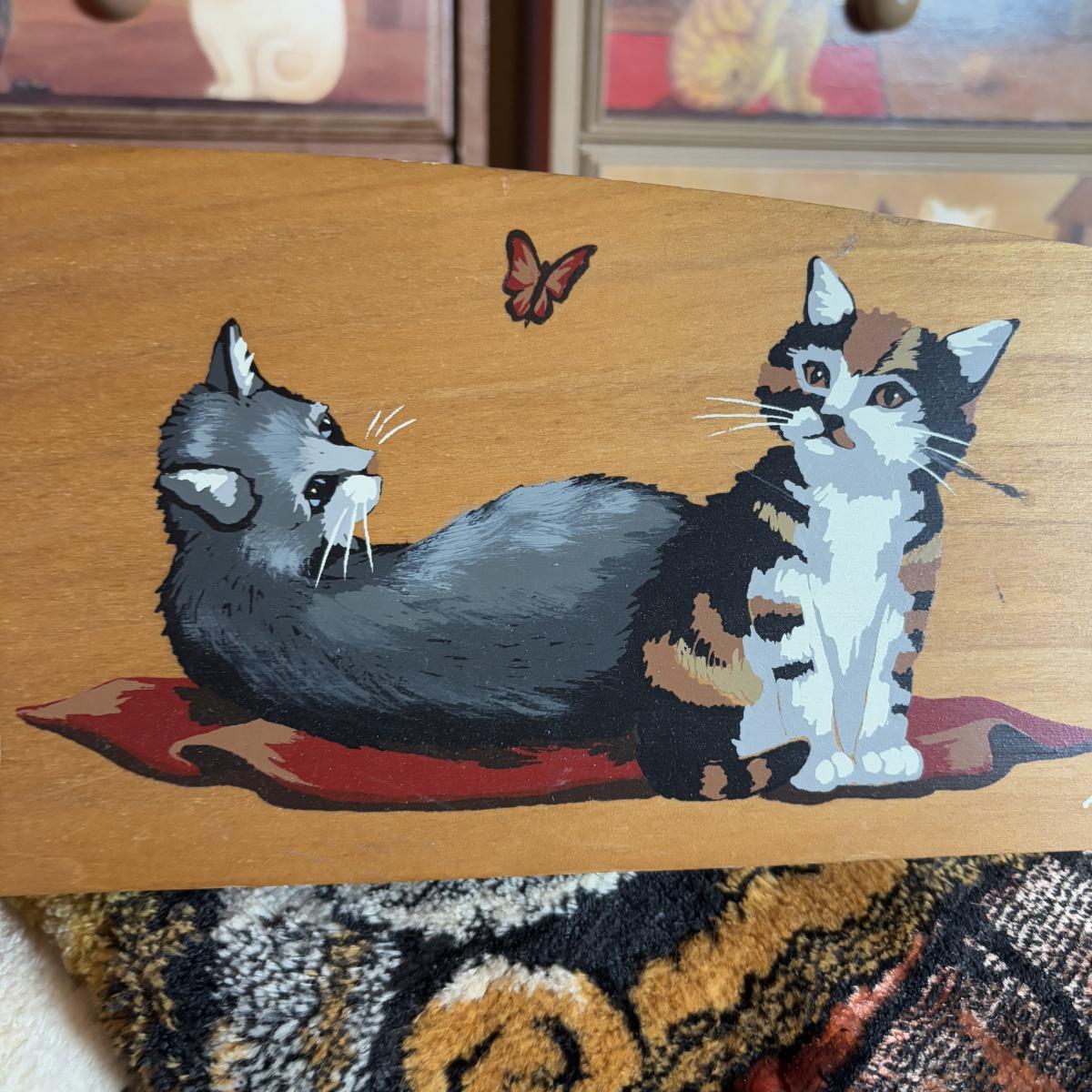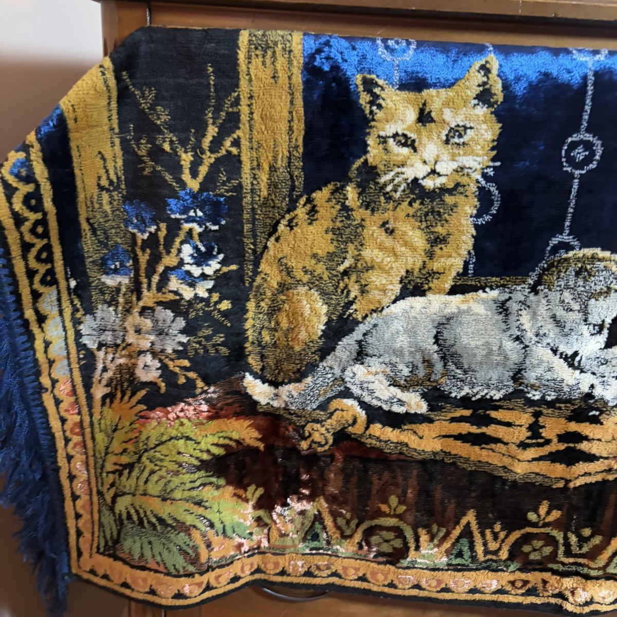 LOT 100: Here Kitty! Kitty! Home Decor, Cross Stich Grey Tabby, Woven Cat Tapestries, & More