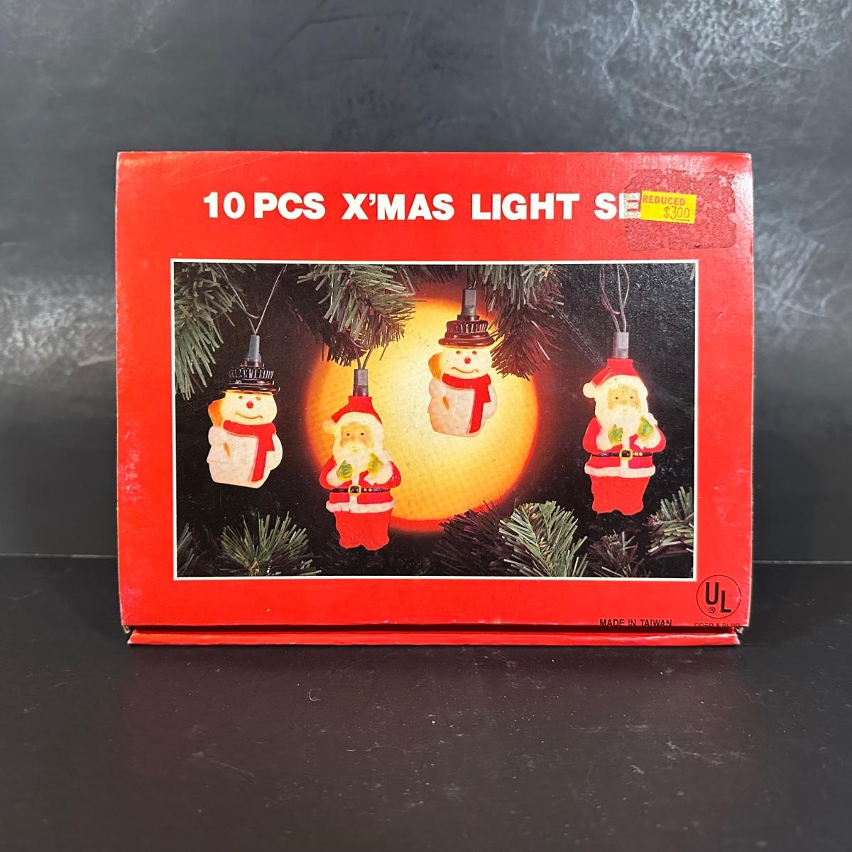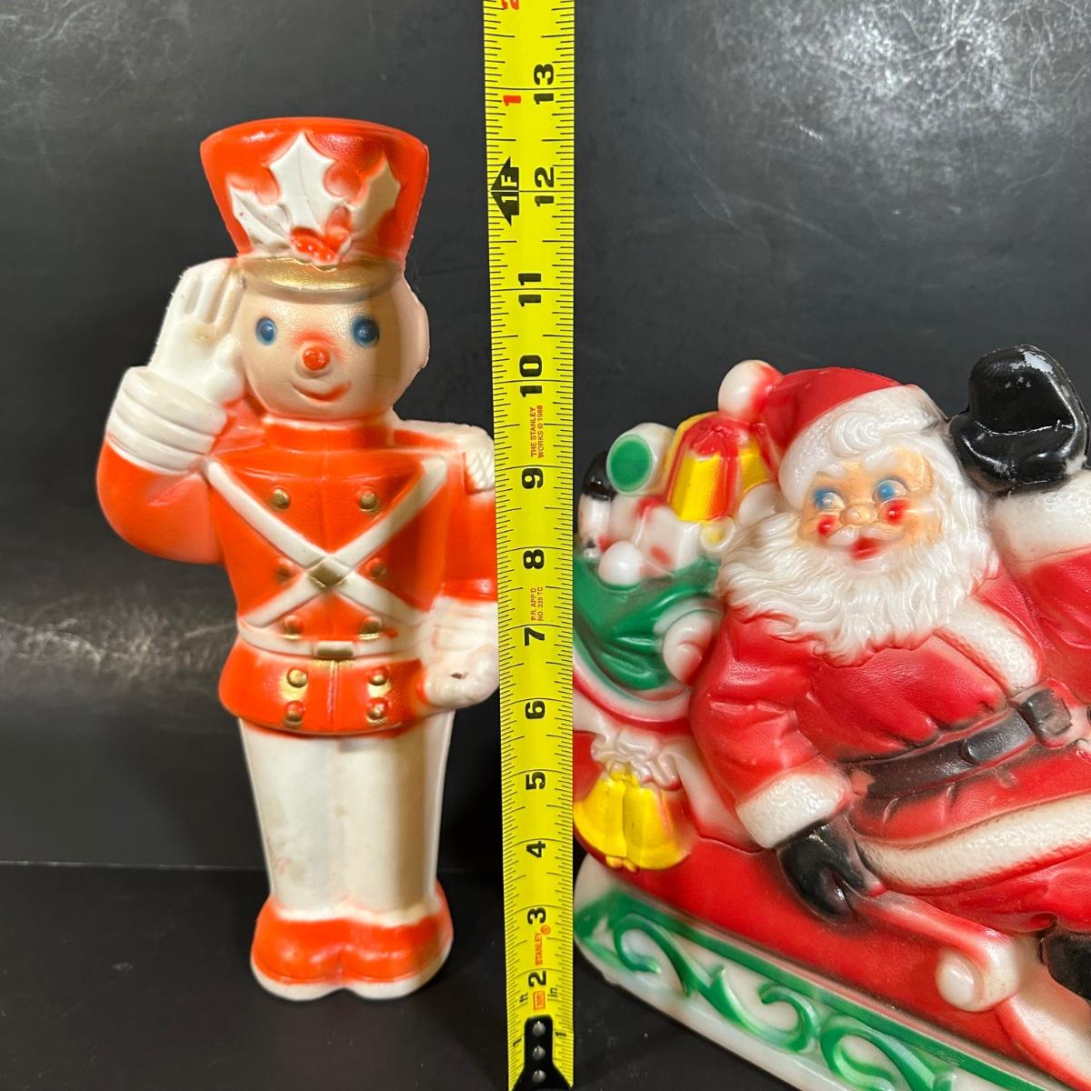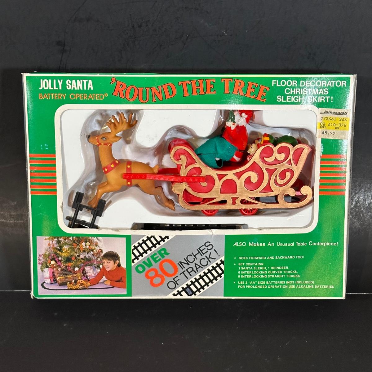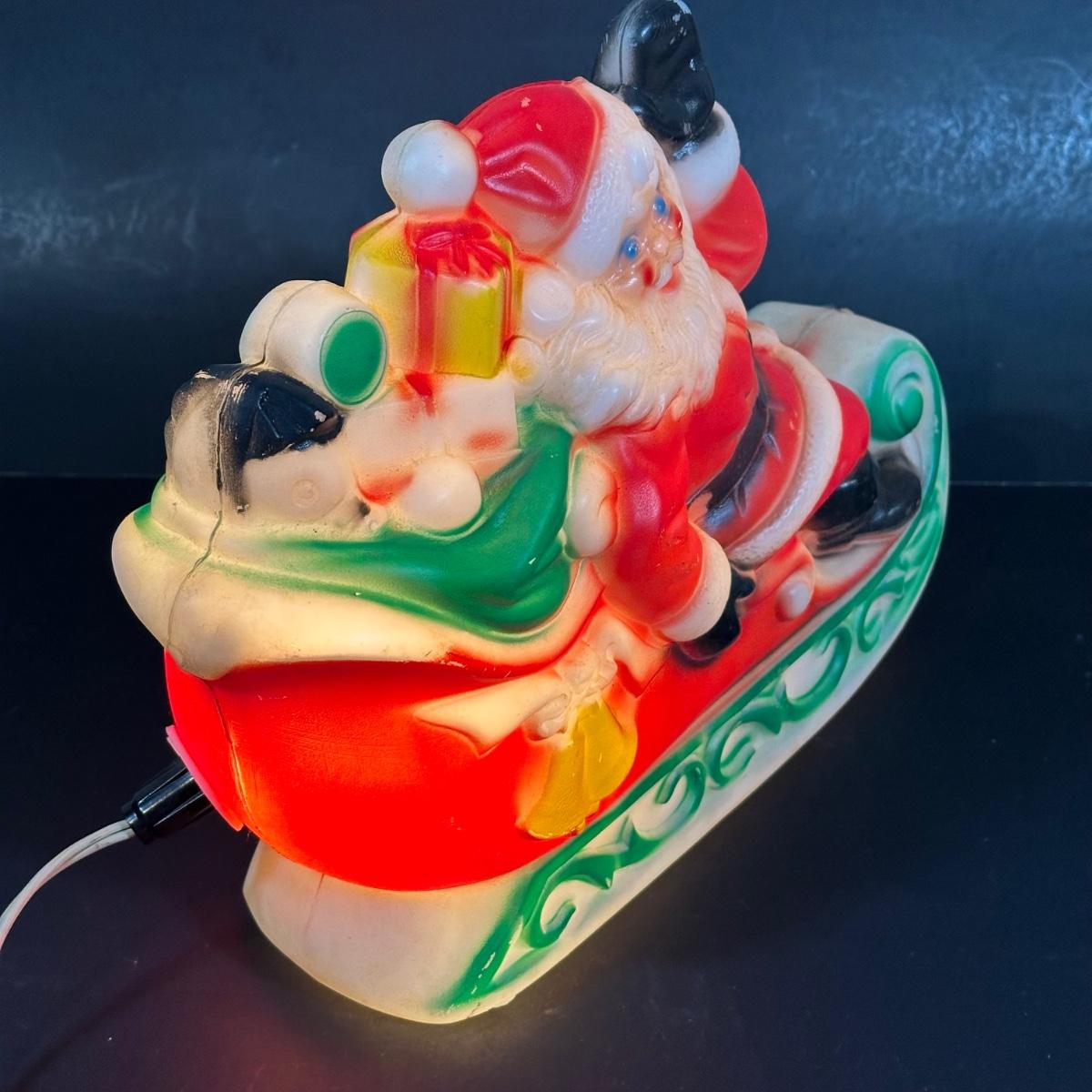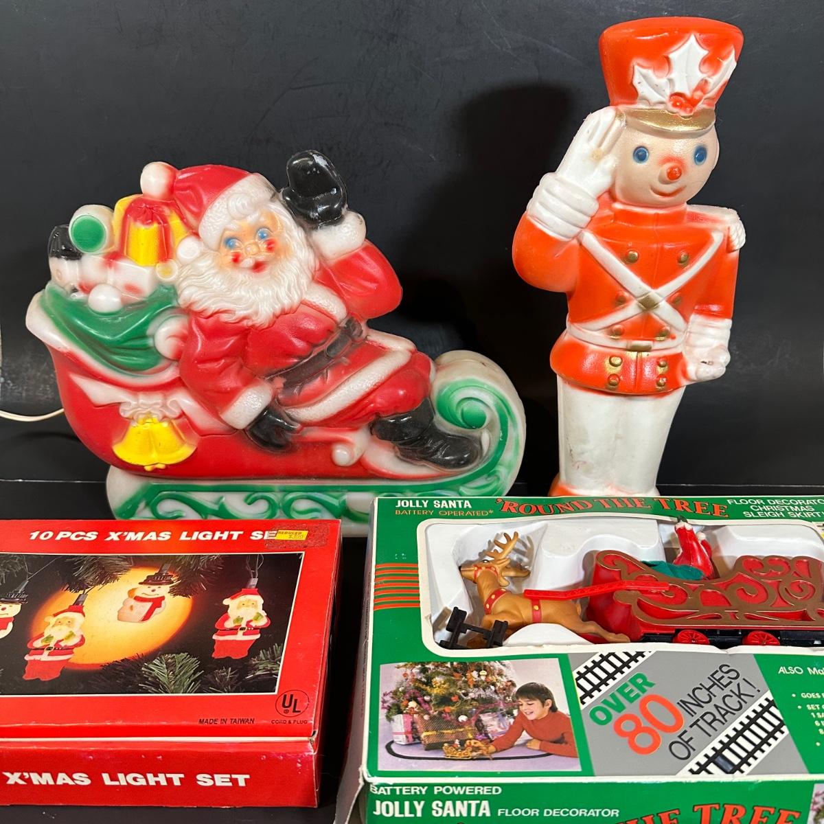 LOT 141B: Vintage Christmas Decor! Blow Molds, 10 Piece Light Set & Jolly Santa Round The Tree in Box