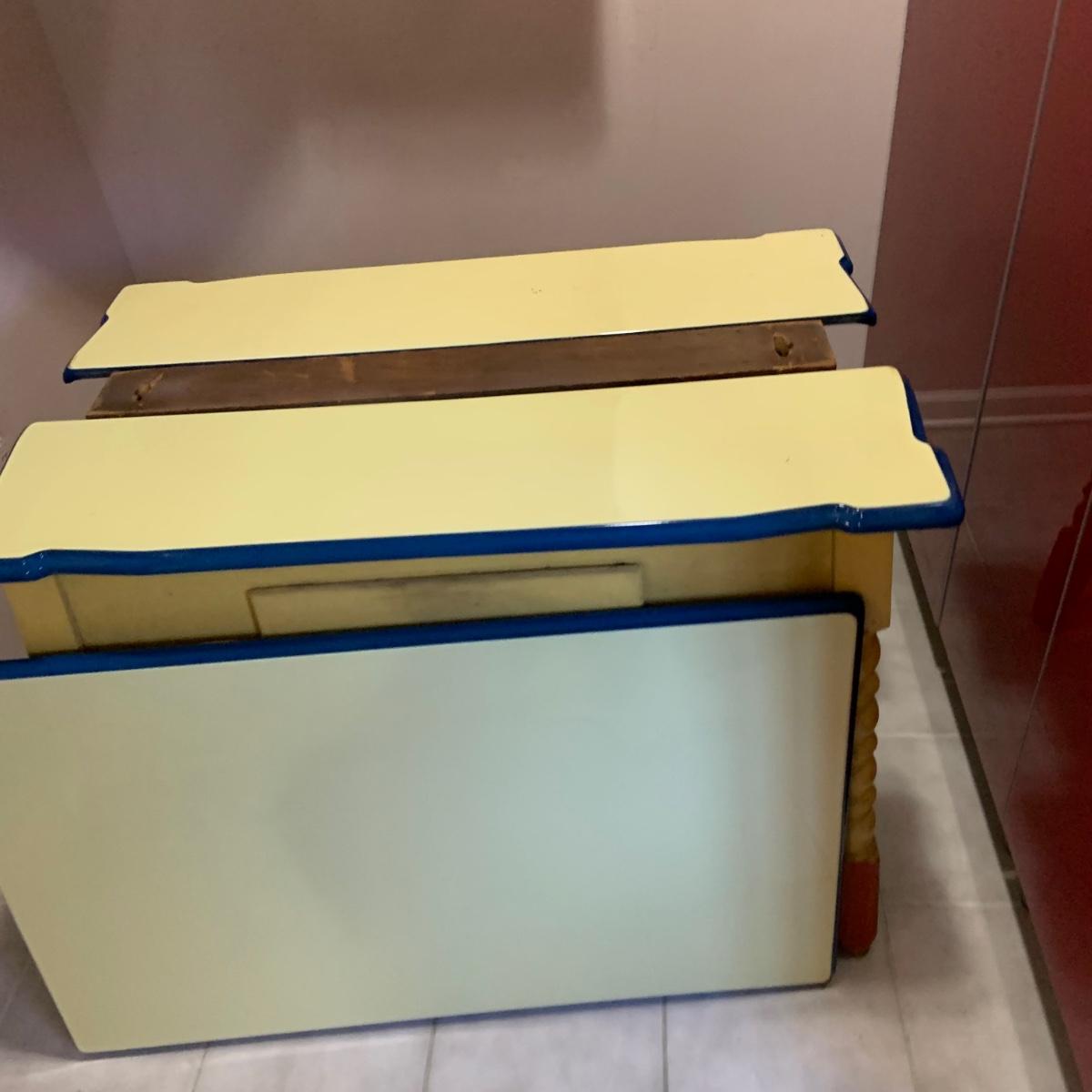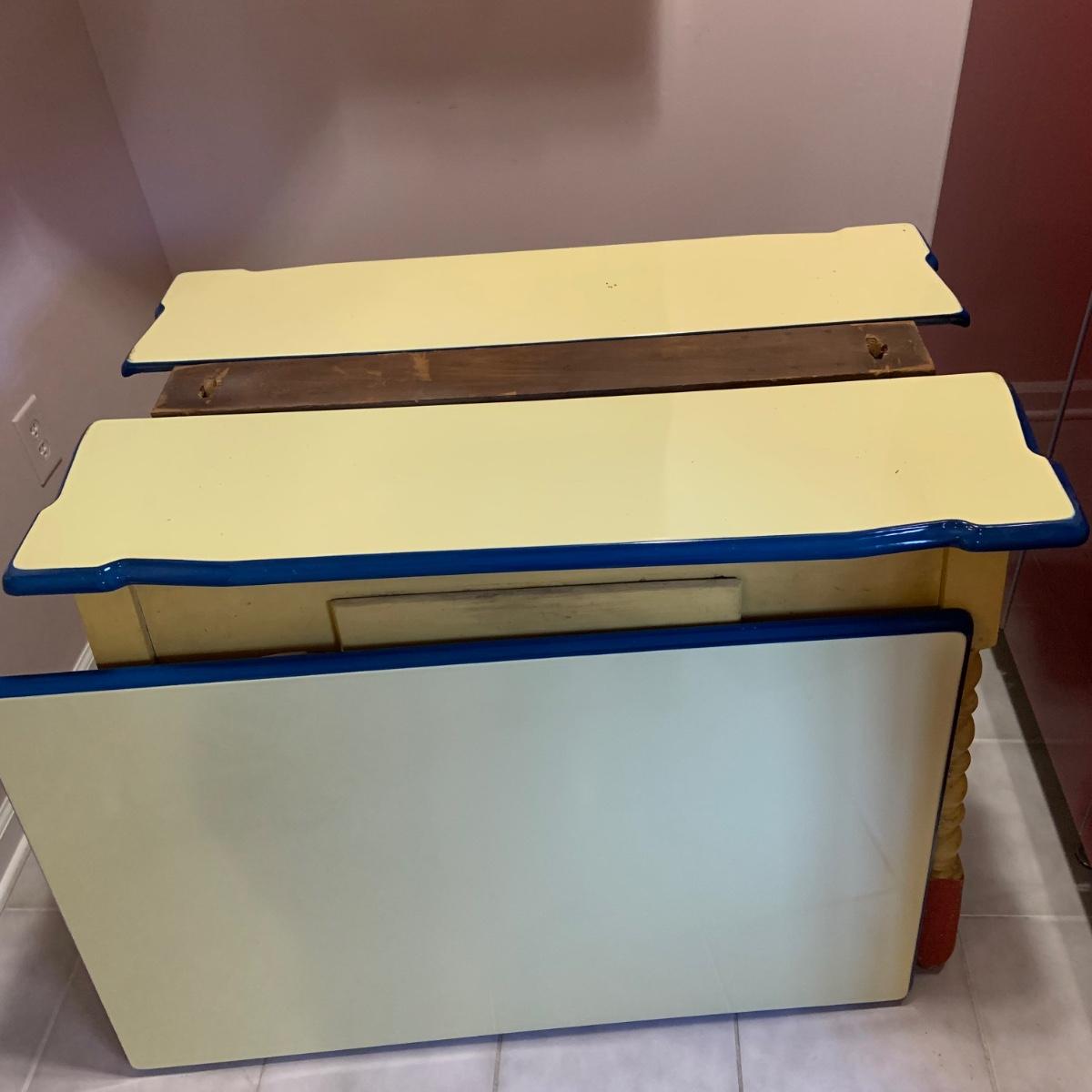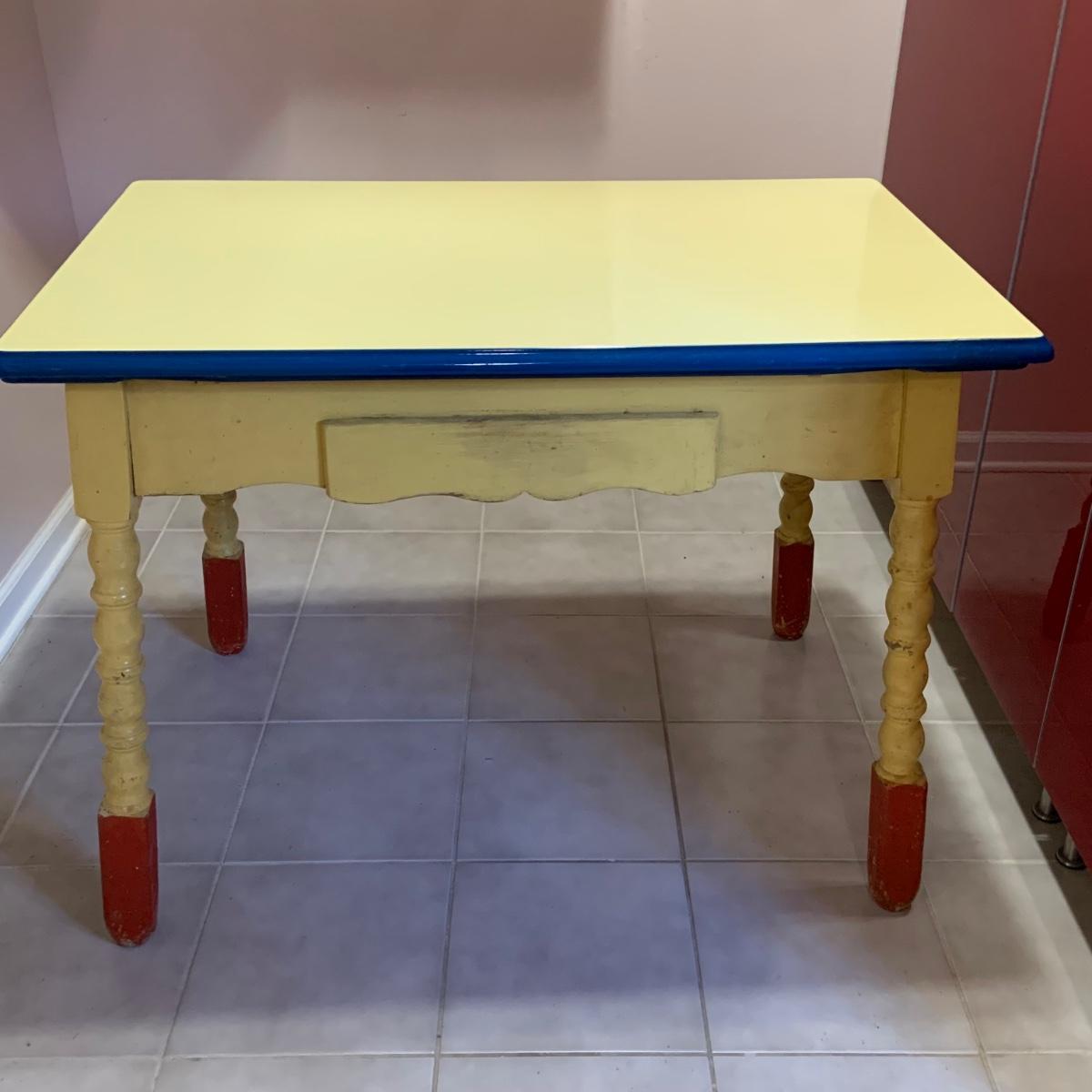 LOT:163: Vintage Wood Kitchen Table with Enamel Top - Expandable