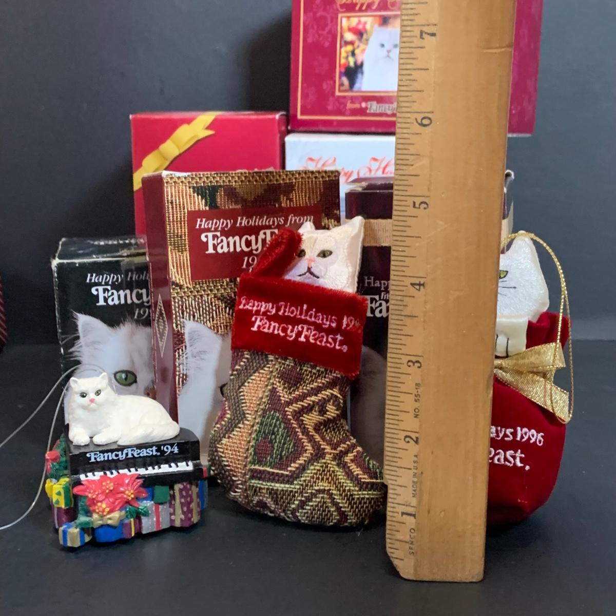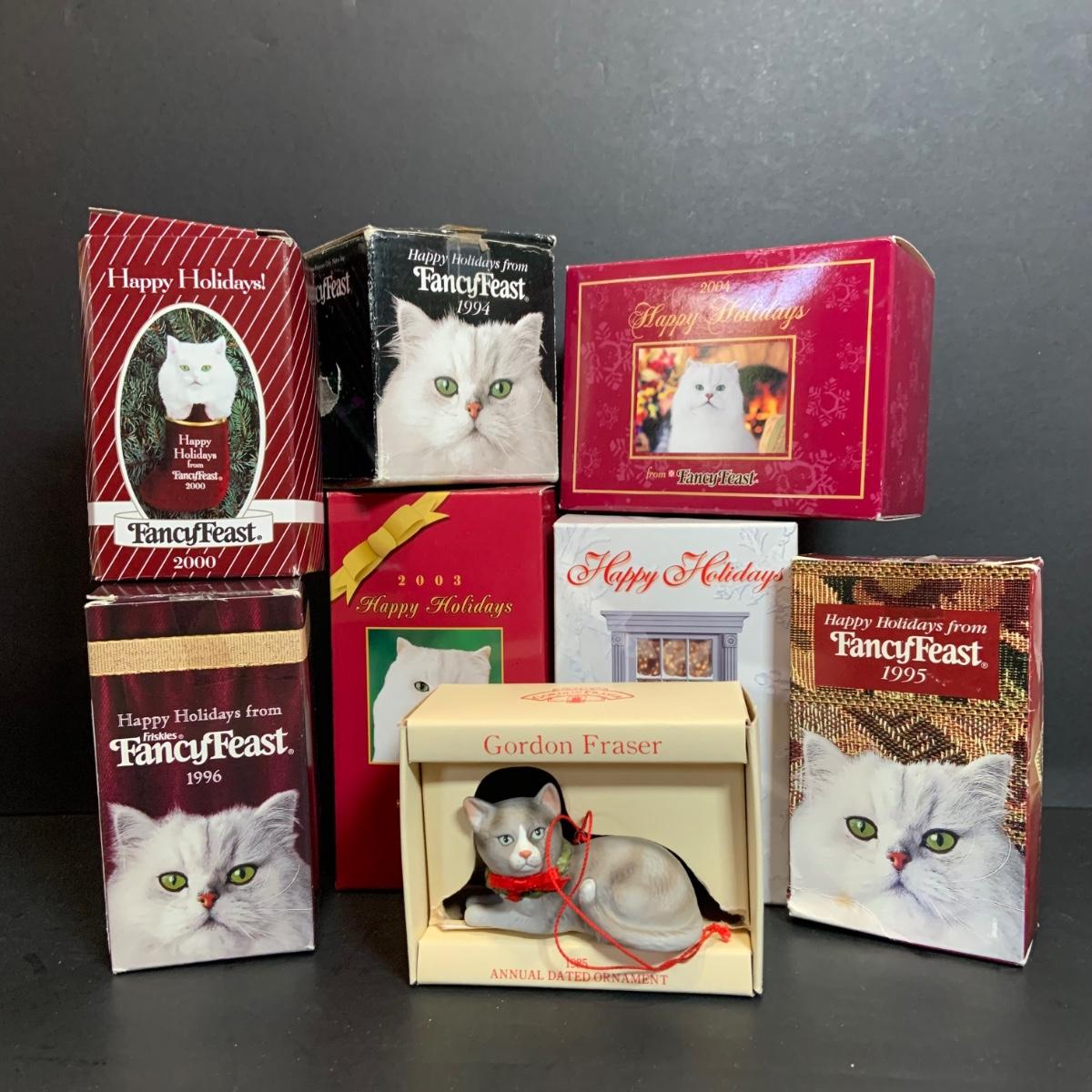 LOT:171: Collection of Fancy Feast Annual Christmas Ornaments and a Gordon Fraiser Cat Ornament