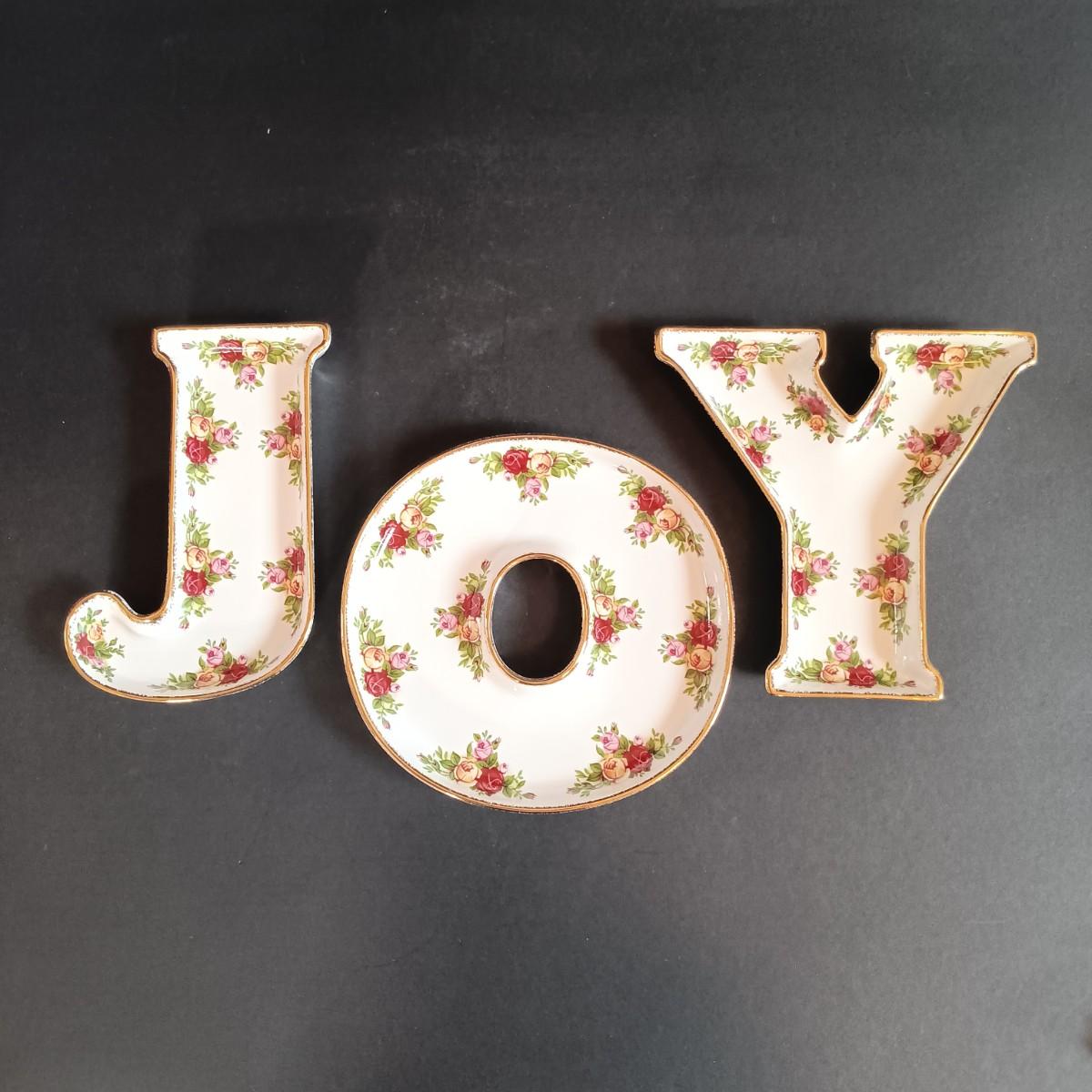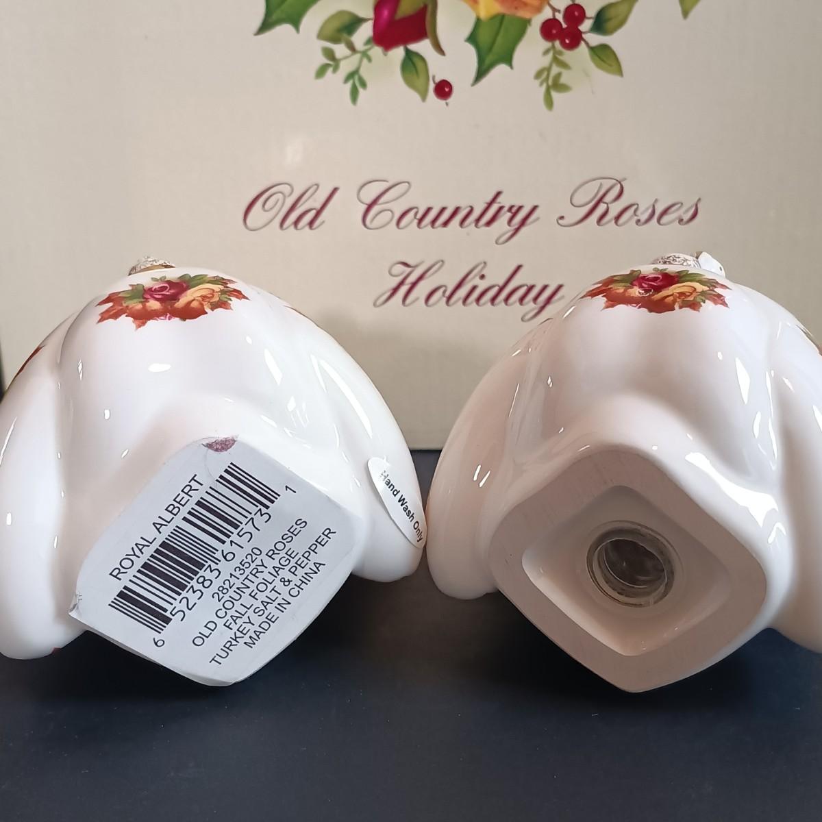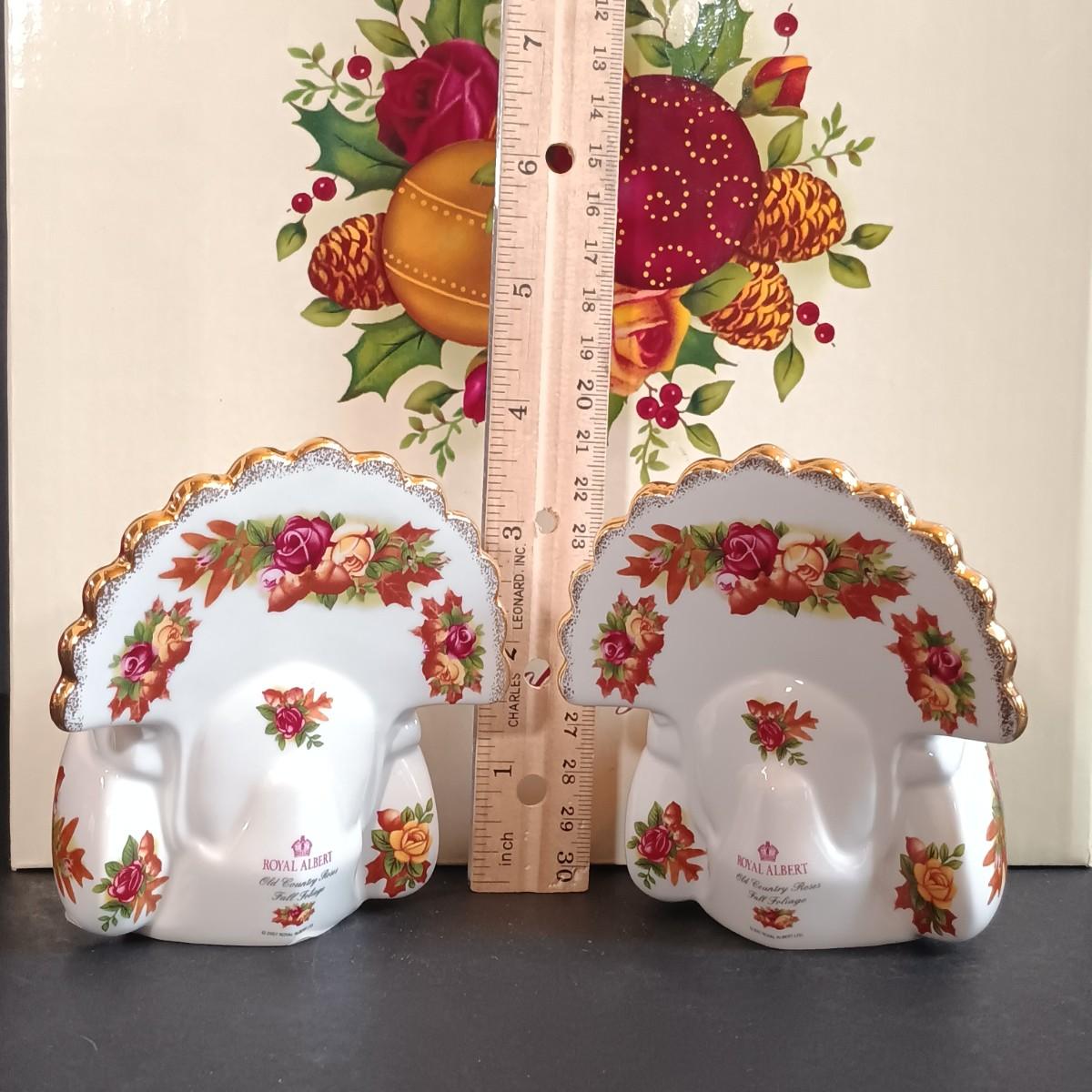 LOT 193: Royal Albert Old Country Roses Holiday Vase, Fall Foliage Turkey Salt & Pepper Shakers & JOY Dishes