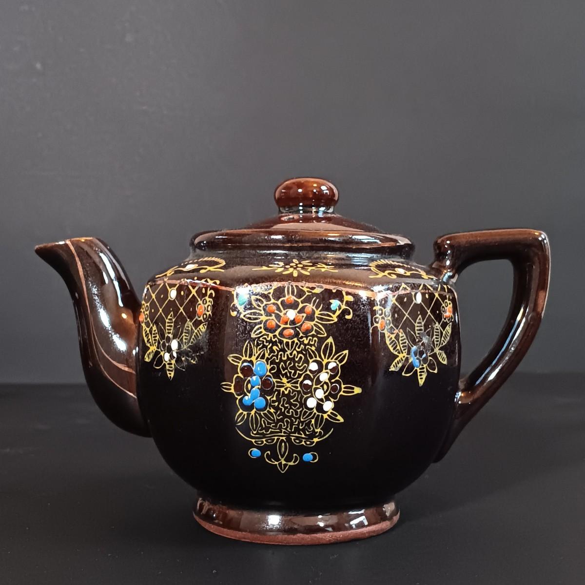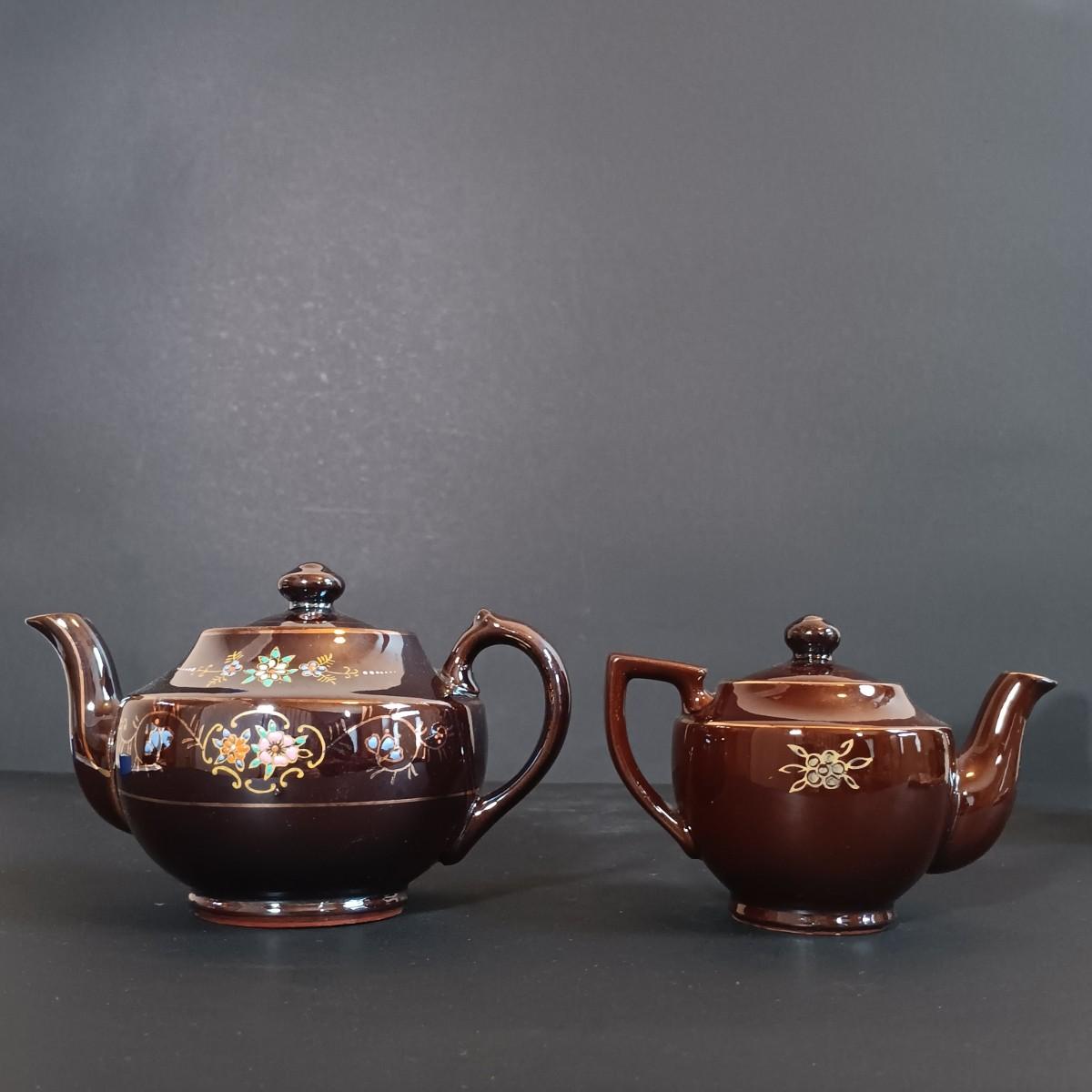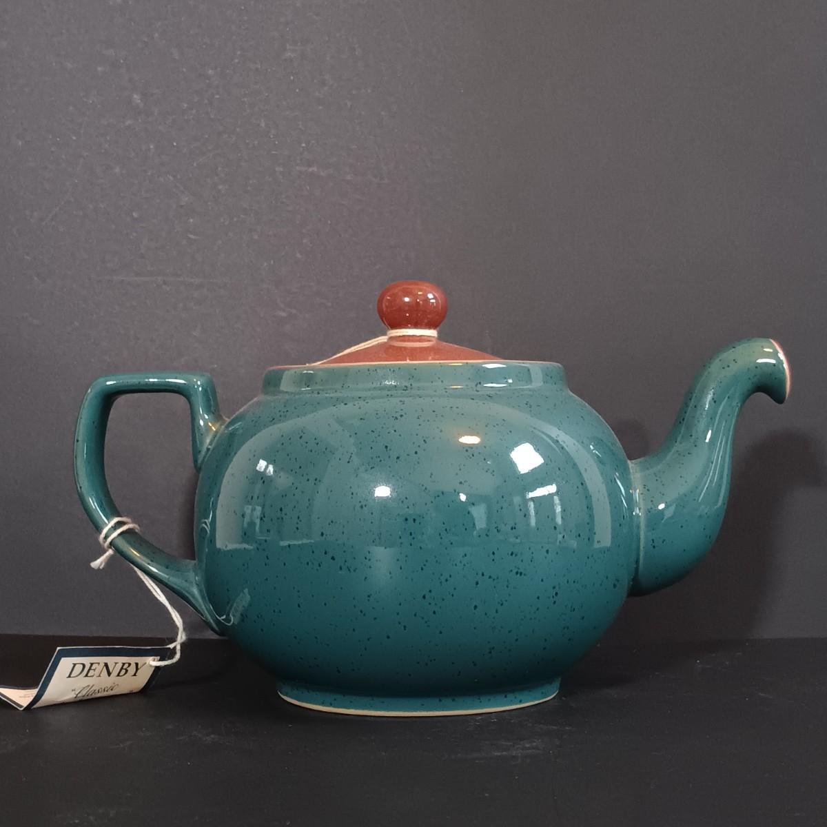 LOT 197: Denby 'Nevva Drip' Teapot with Set of (3) Redware Teapots