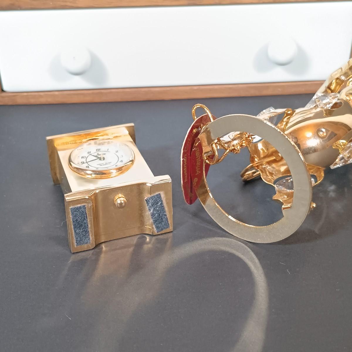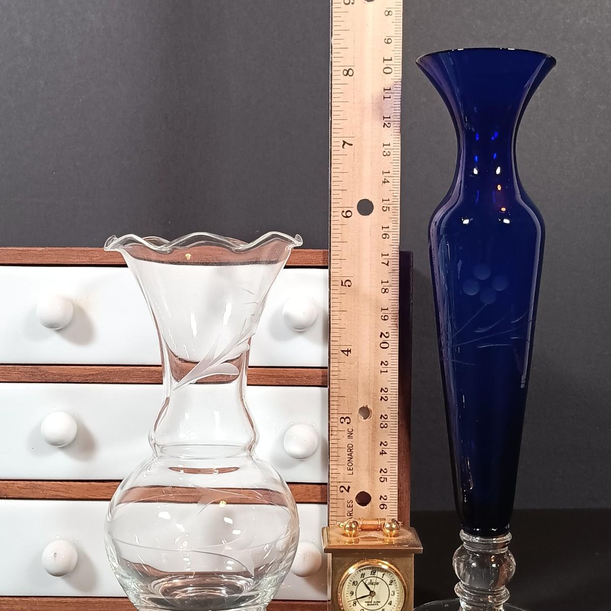 LOT 202: Gallaway Crystal Shamrock Clock, Art Glass Vases, Gold Plated and Crystal Pig & More