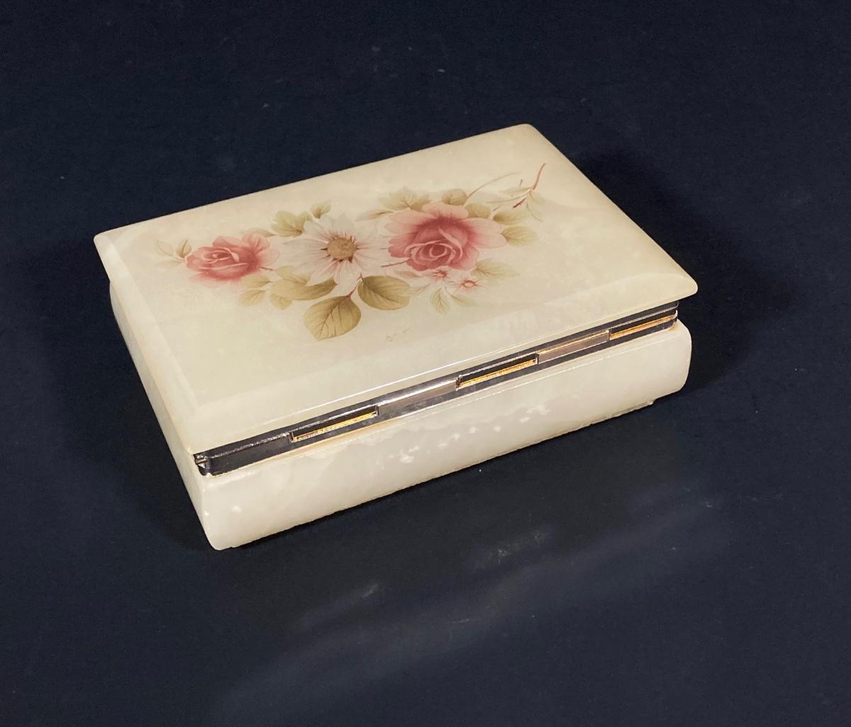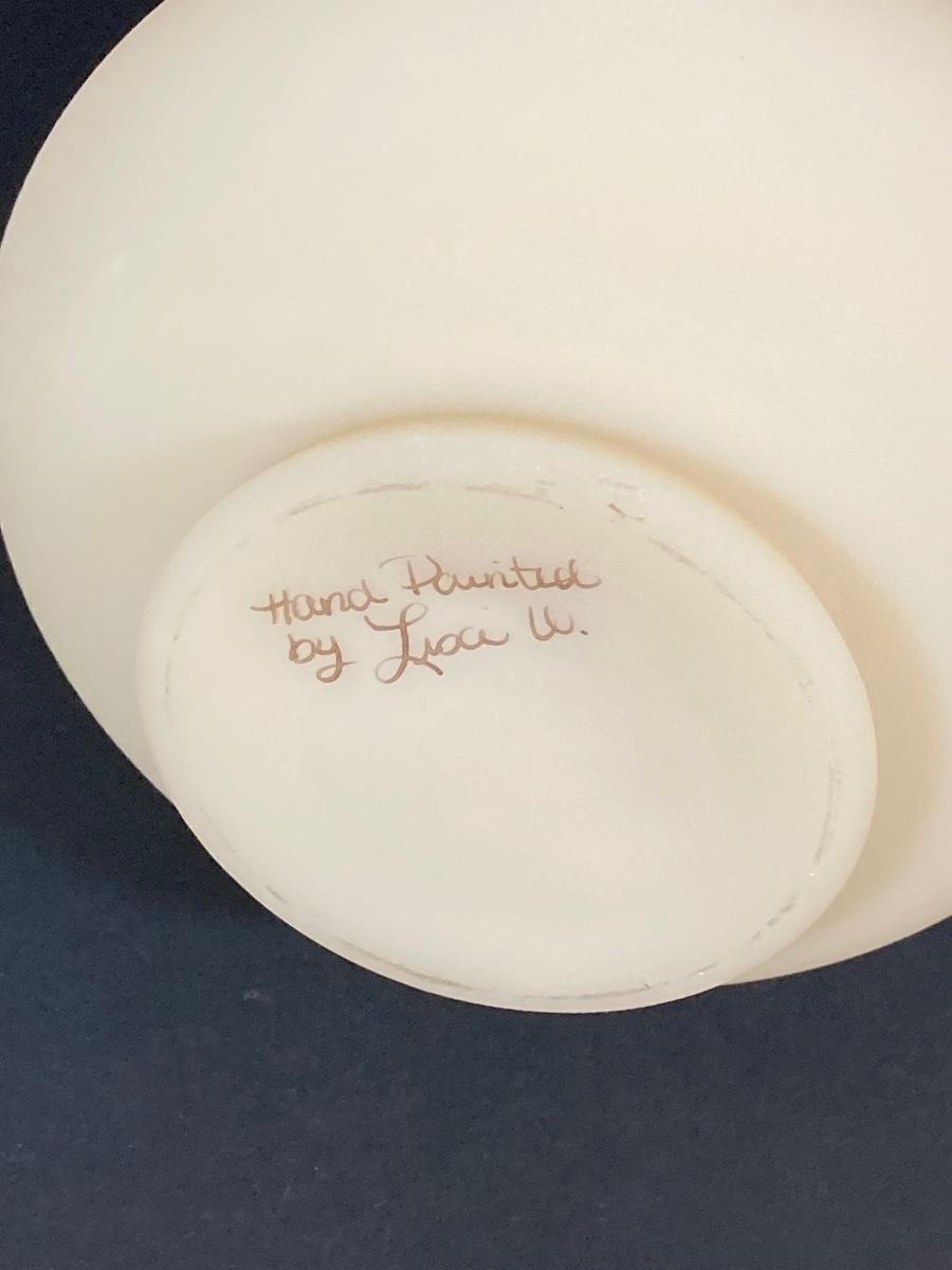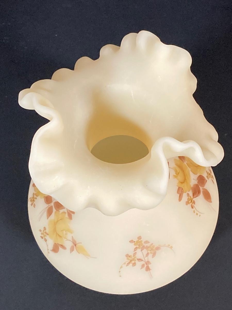 LOT 224: Satin Ruffled Top Hand Painted Fenton Vase and Floral Trinket Box
