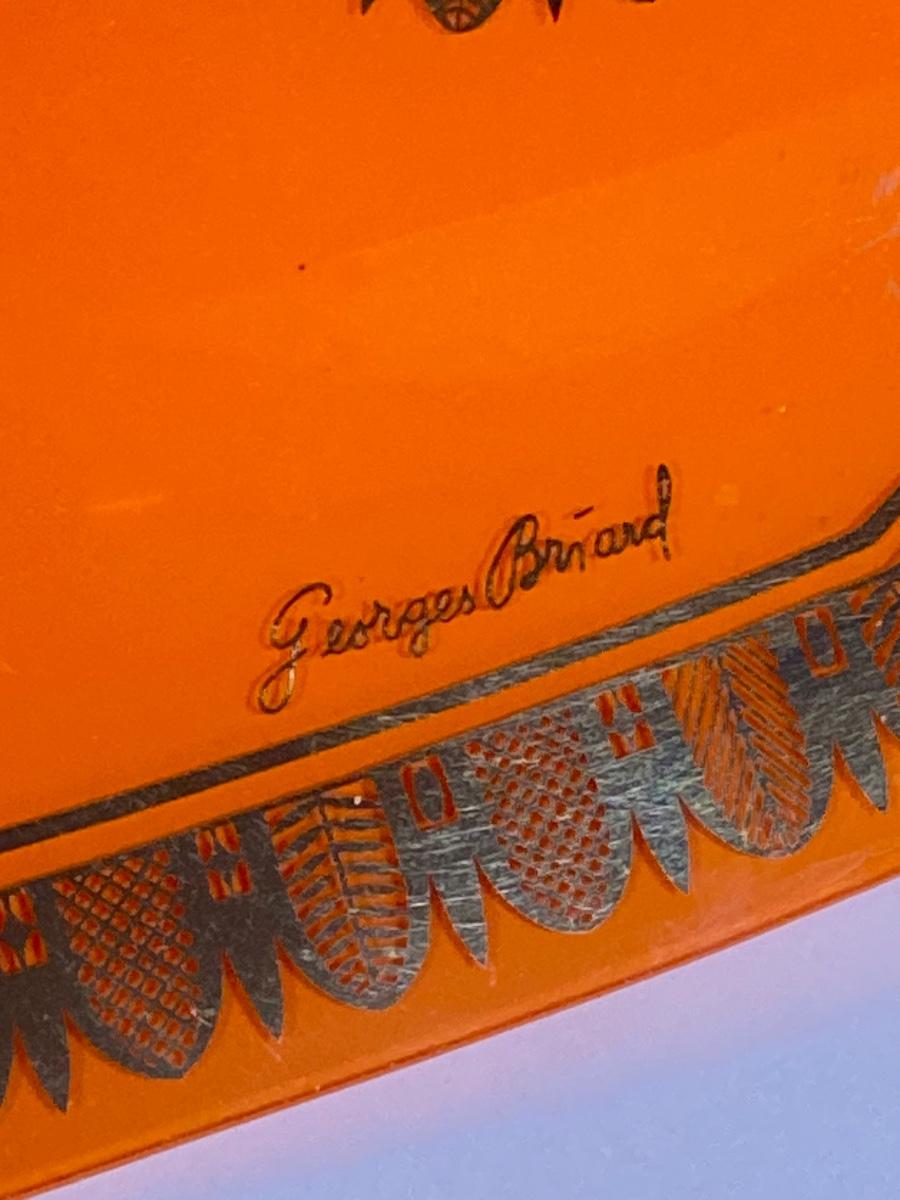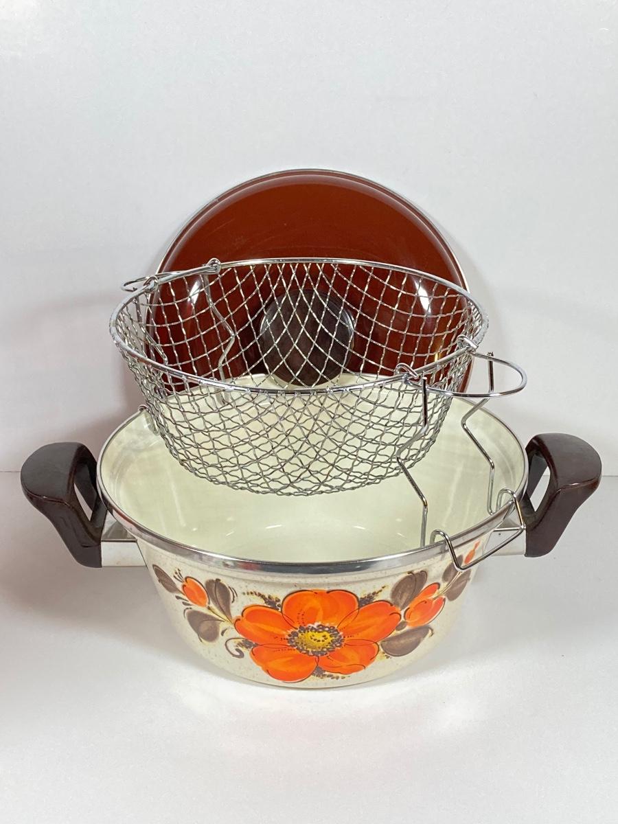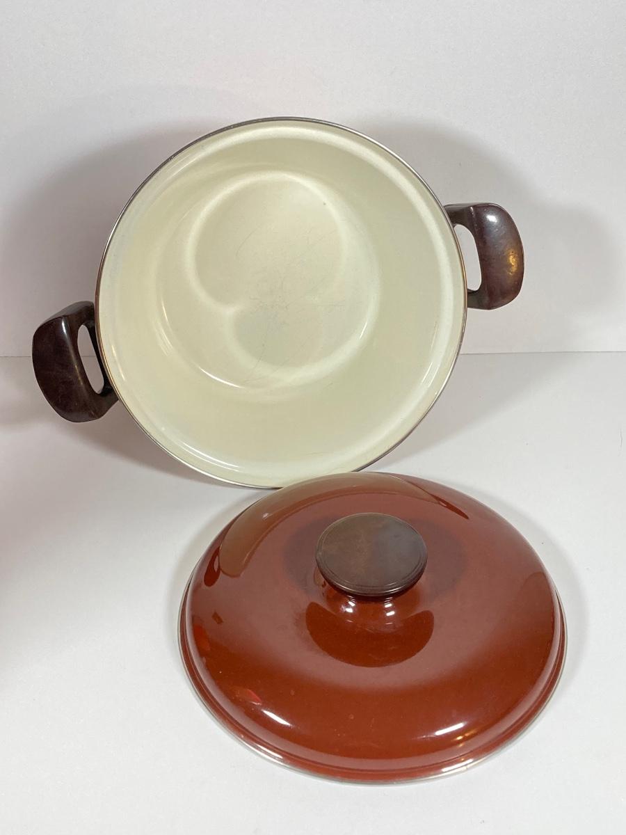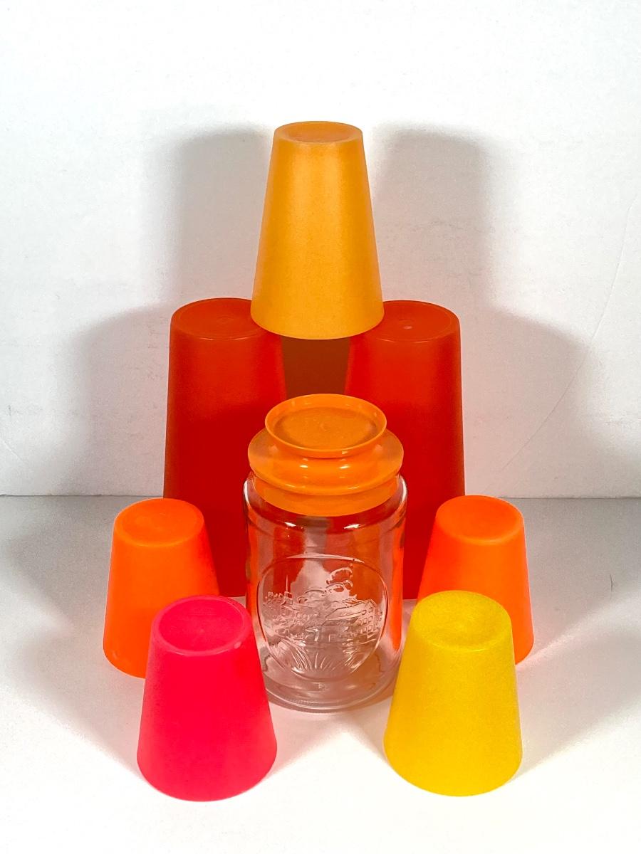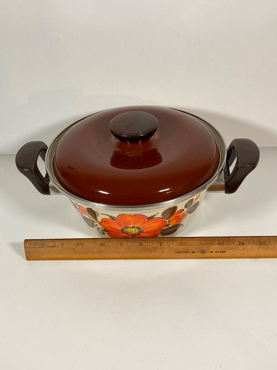 LOT 231: Mid-Century Modern Kitchen Collection - Serving Tray, Sanko-Ware Show Pan, Painted Trivet, Ikea Plastic Drinking Cups