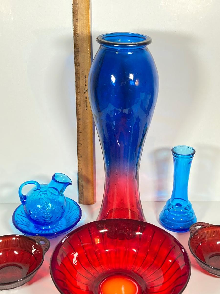 Condition issues - blue / red vasePlease see all pictures as they are the best representation of the items. The pictures show condition, measurements if taken, and what is included in the lot. Due to the large amount that we photograph and the time frame, we are not always able to take measurements. All items unless noted, are pre-owned and have been used. If you purchased furniture, you must bring help. We do not allow one person to carry large furniture out on their own. Bring help, tools and a truck for the safety of our client’s homes, and your personal safety. Any damages that result to the property including walls, and floors due to moving of the furniture will be charged to the buyer. Company policy. Thank you.