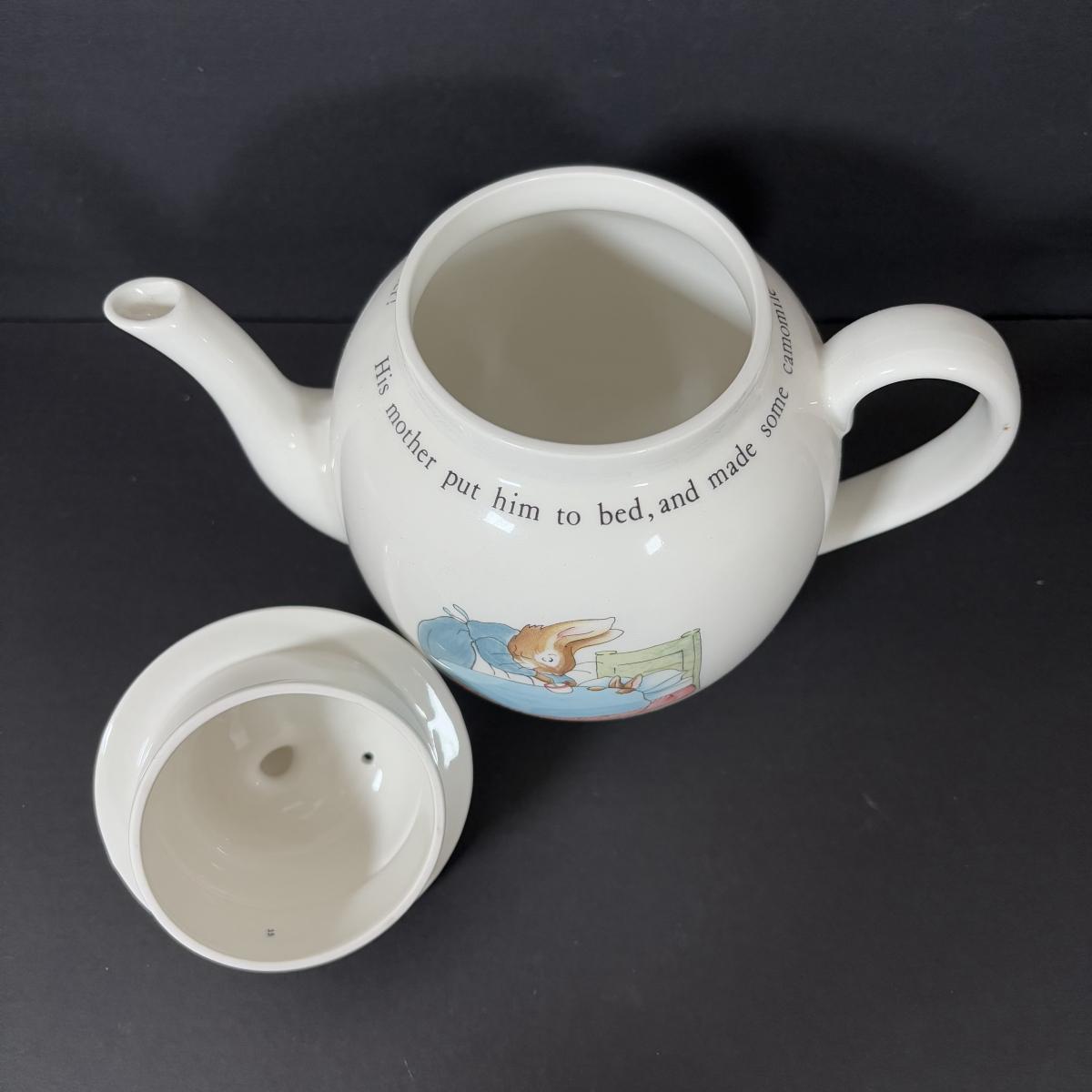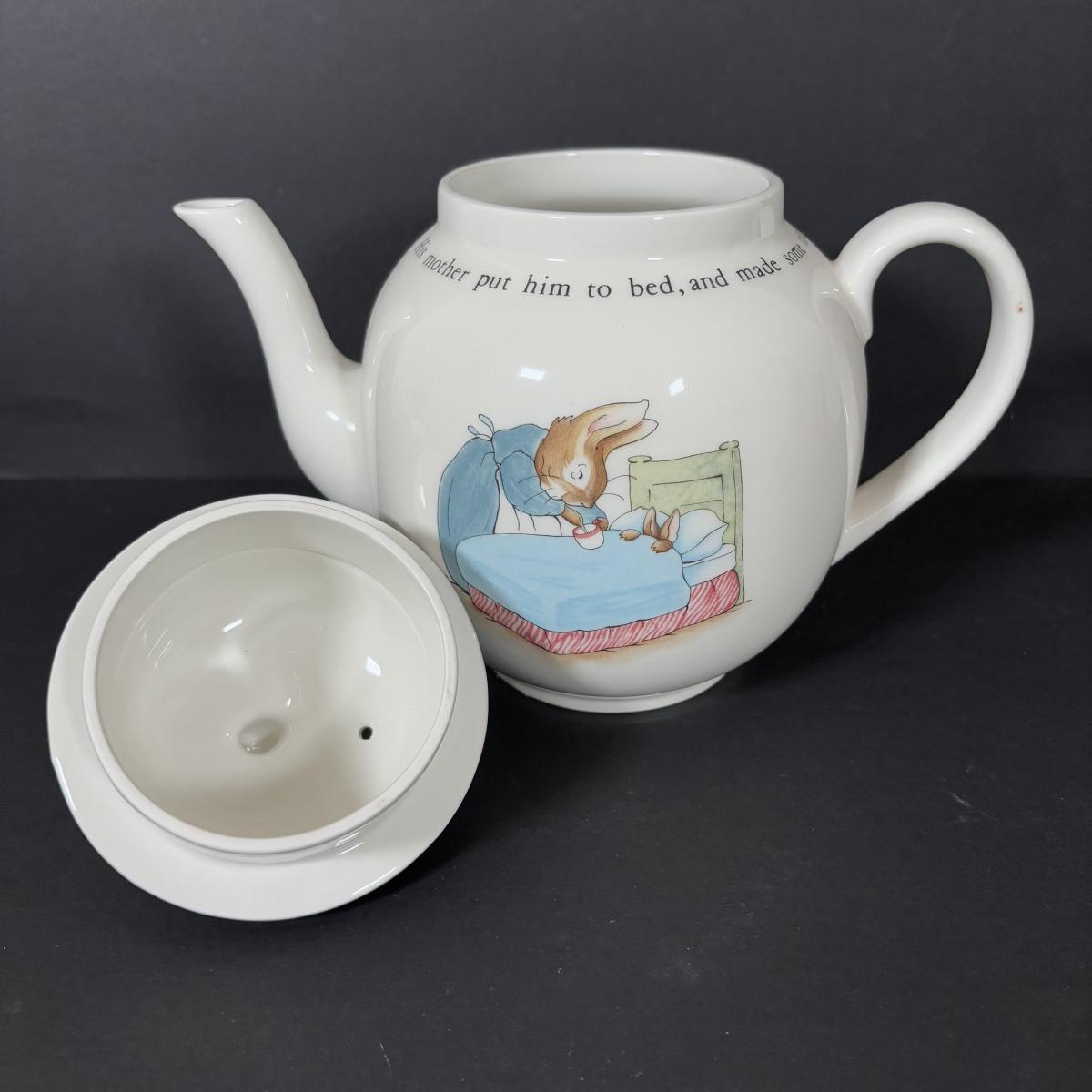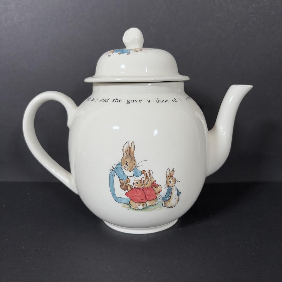 LOT 239: Gorham Emily's Attic Blue Egg Covered Dish, Wedgewood Beatrix Potter Teapot & More