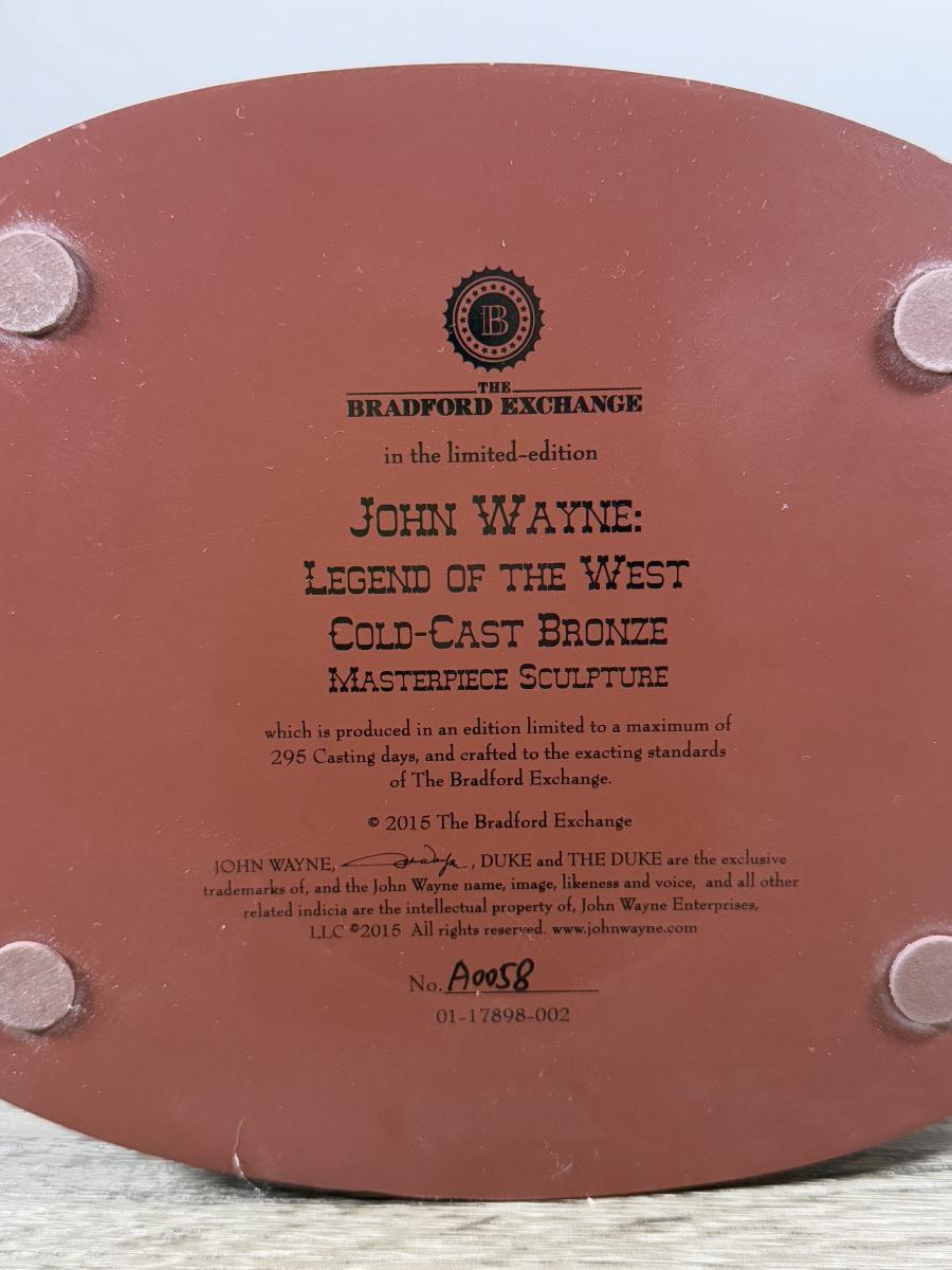 LOT 4B: 2015 Bradford Exchange John Wayne: Legend of the West Cold-Cast Bronze Masterpiece Sculpture A0058 (13”)