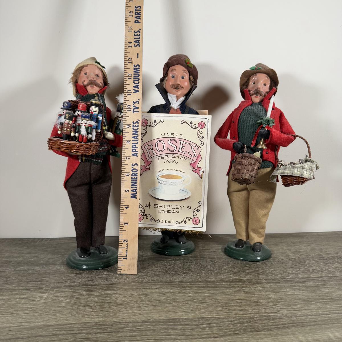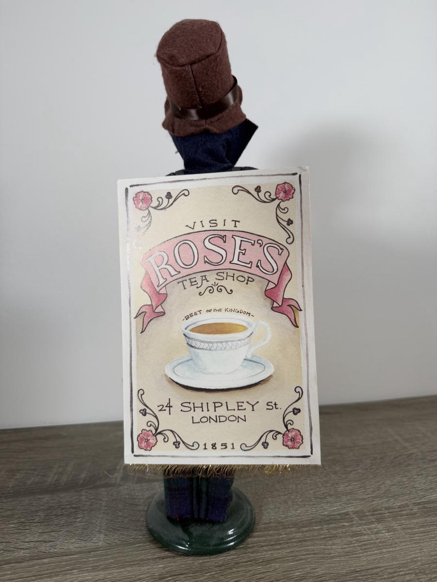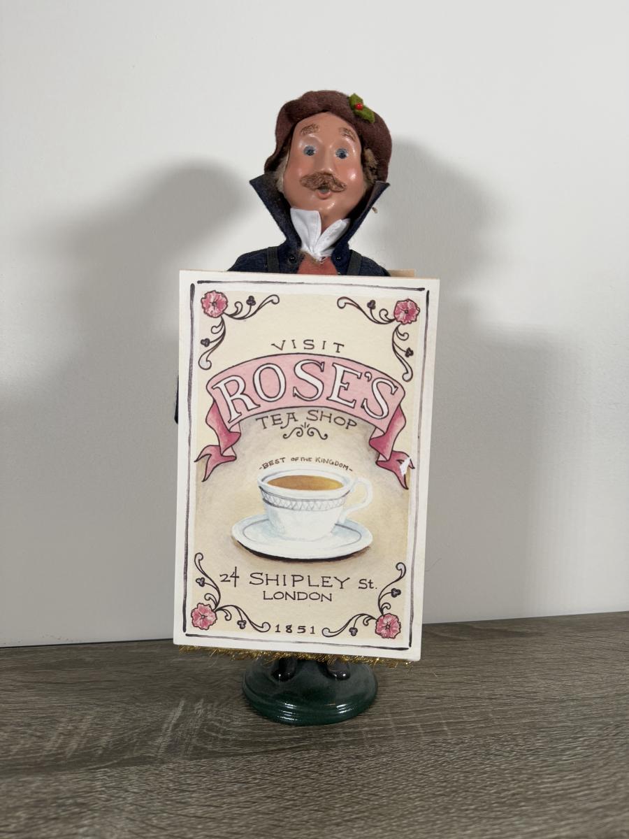 LOT 20B: Byers Choice Carolers - Man w/ Nutcrackers, Rose's Tea Shop Board & Candle Holders