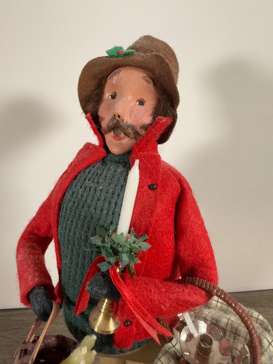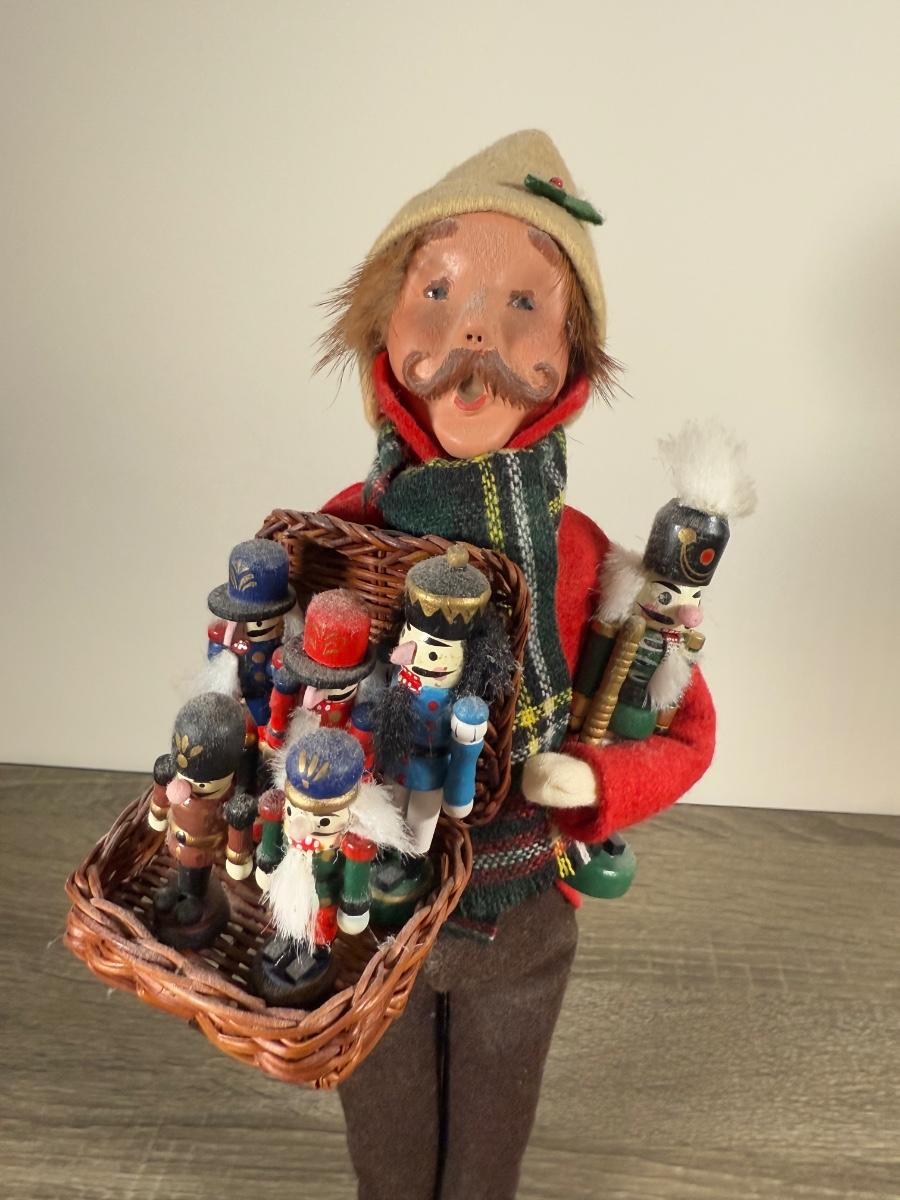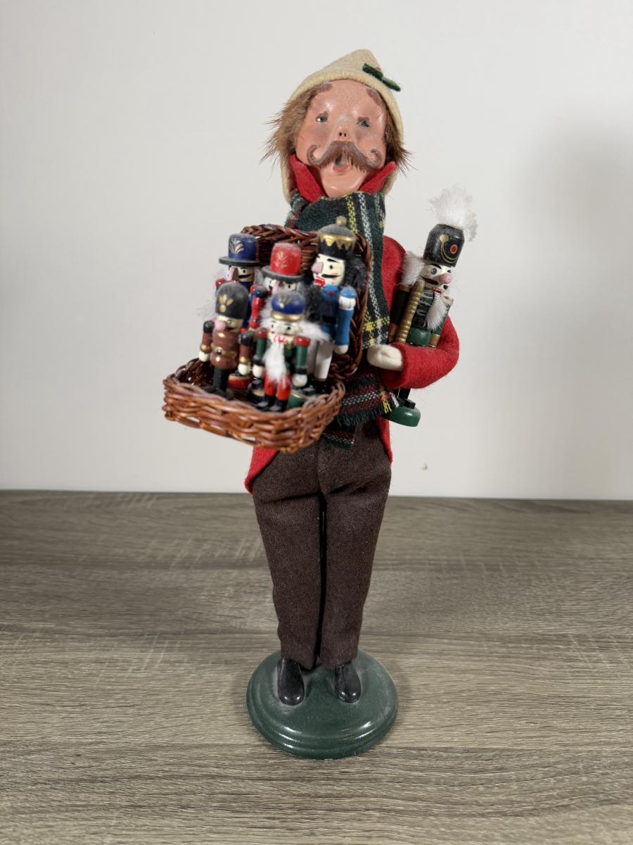 LOT 20B: Byers Choice Carolers - Man w/ Nutcrackers, Rose's Tea Shop Board & Candle Holders