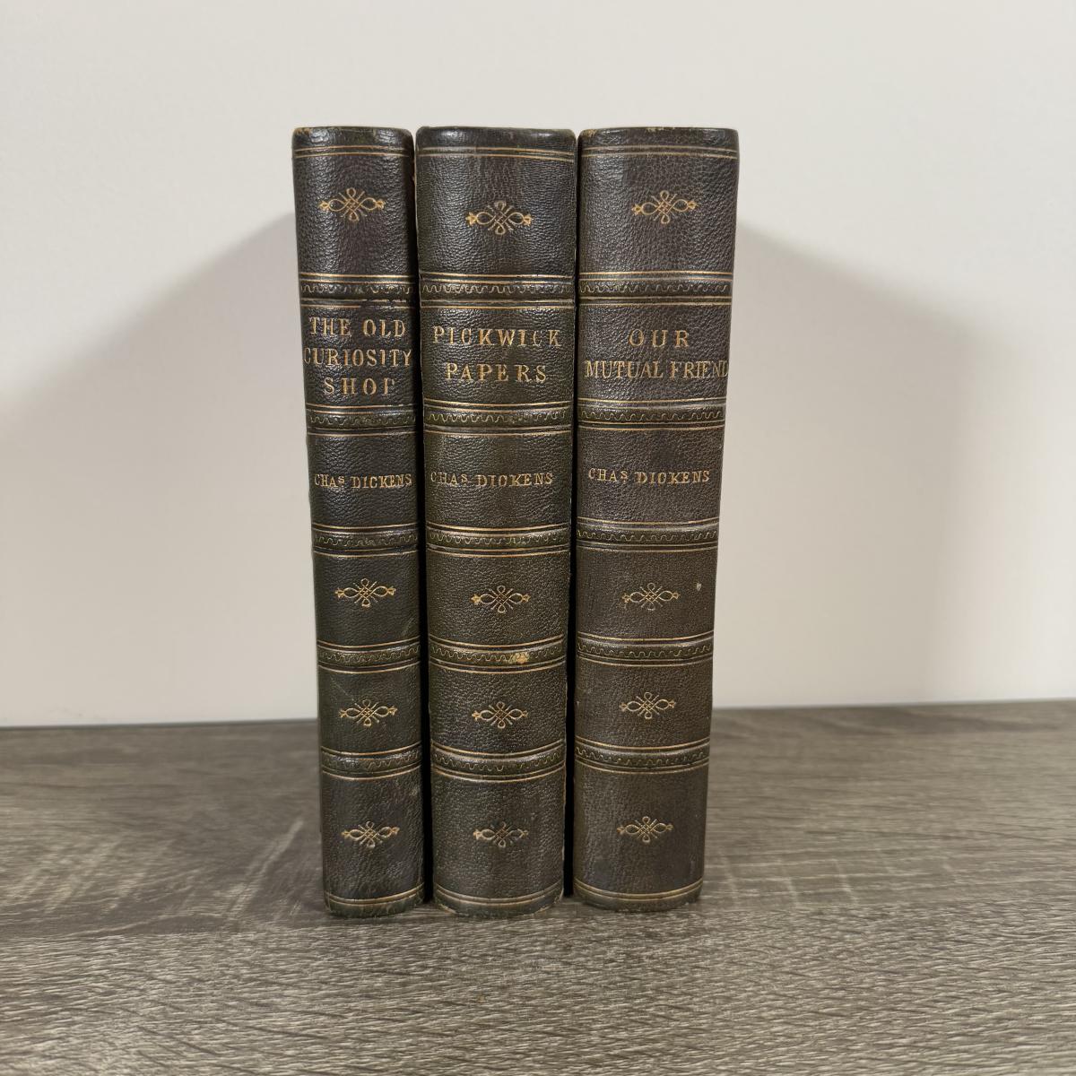 LOT 21K: Antique Charles Dickens Books - 1870 Posthumous Papers of the Pickwick Club, Our Mutual Friend & 1870 The Old Curiosity Shop