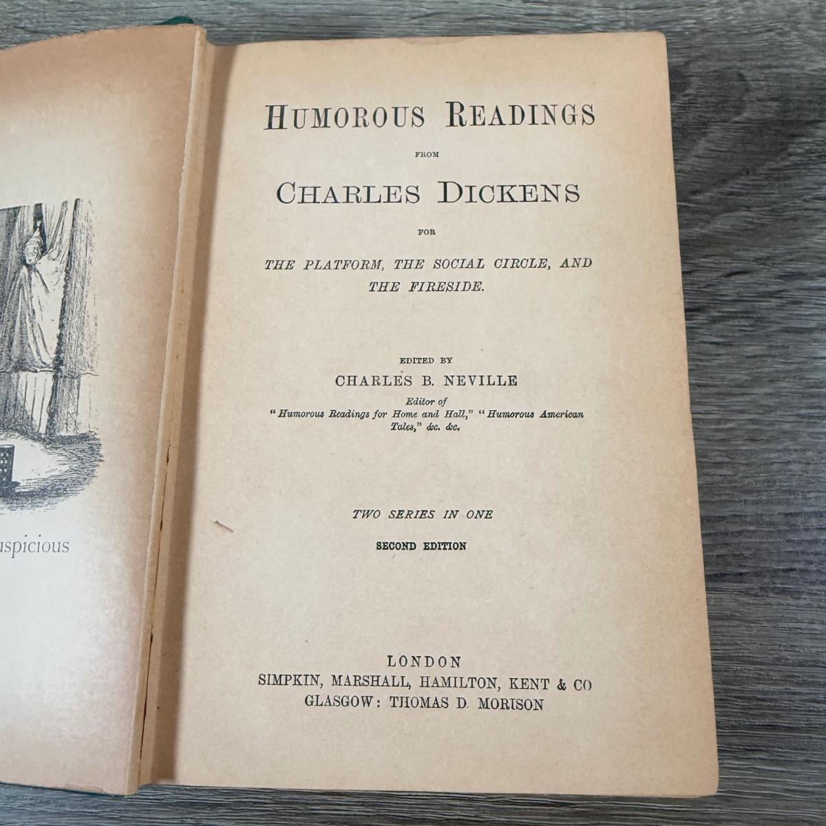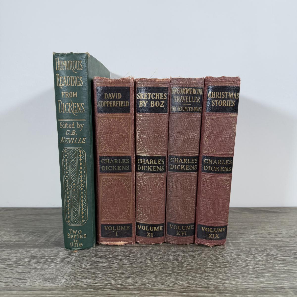 LOT 24K: Antique 1900s Humorous Readings from Charles Dickens 2nd Edition & Vintage/Antique Works of Charles Dickens (4 Volumes)