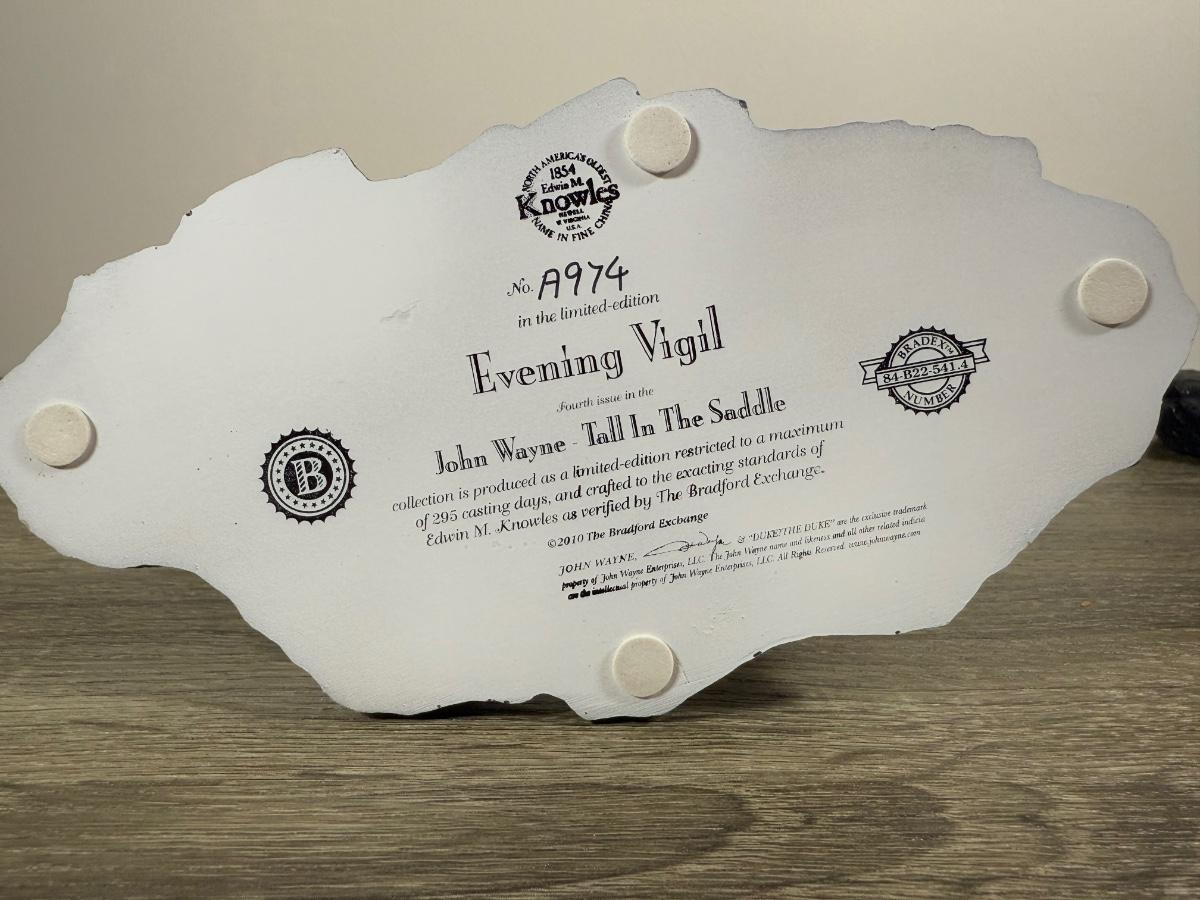 LOT 25B: Edwin M Knowles Bradford Exchange John Wayne Tall in the Saddle Collection - 2010 Evening Vigil A974 & 2011 Standing Proud A0109