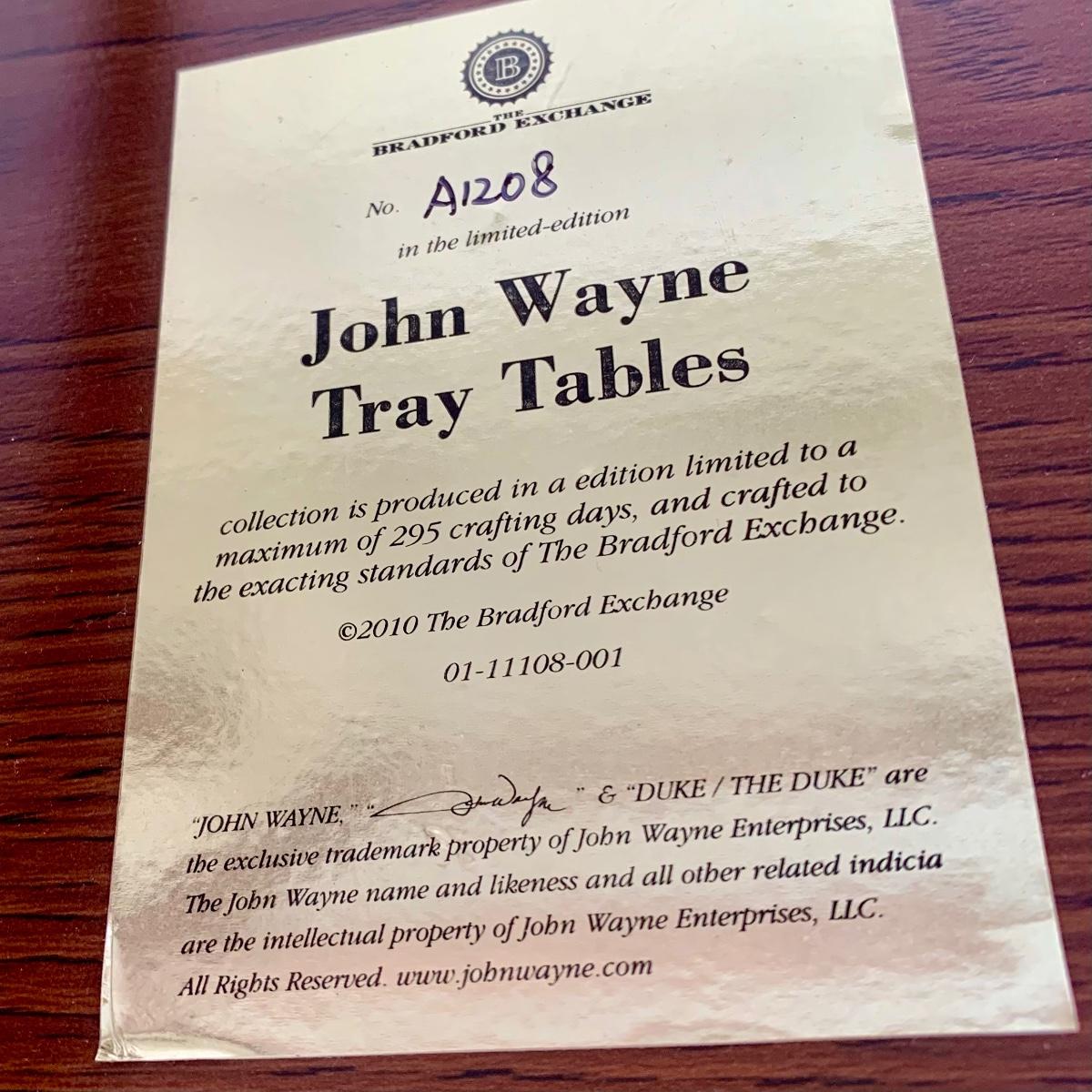 LOT 33 G: 2010 Bradford Exchange Limited Edition John Wayne The Duke Tray Tables