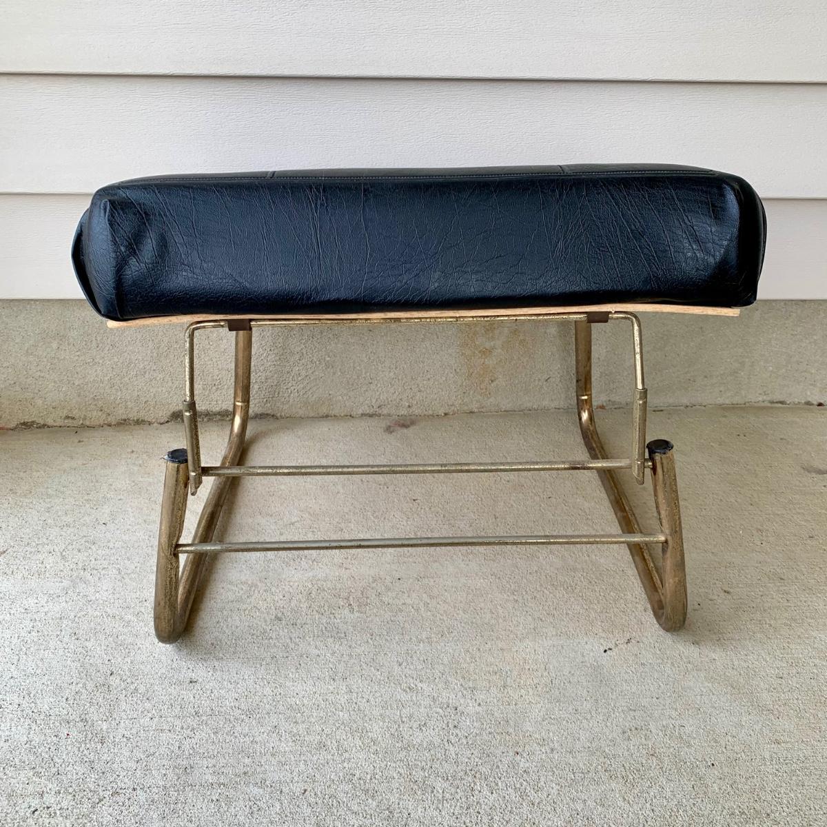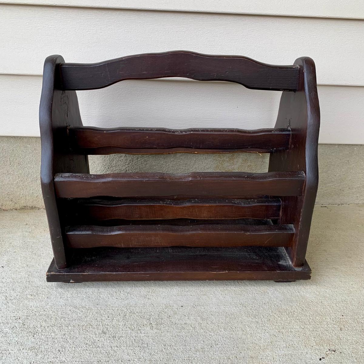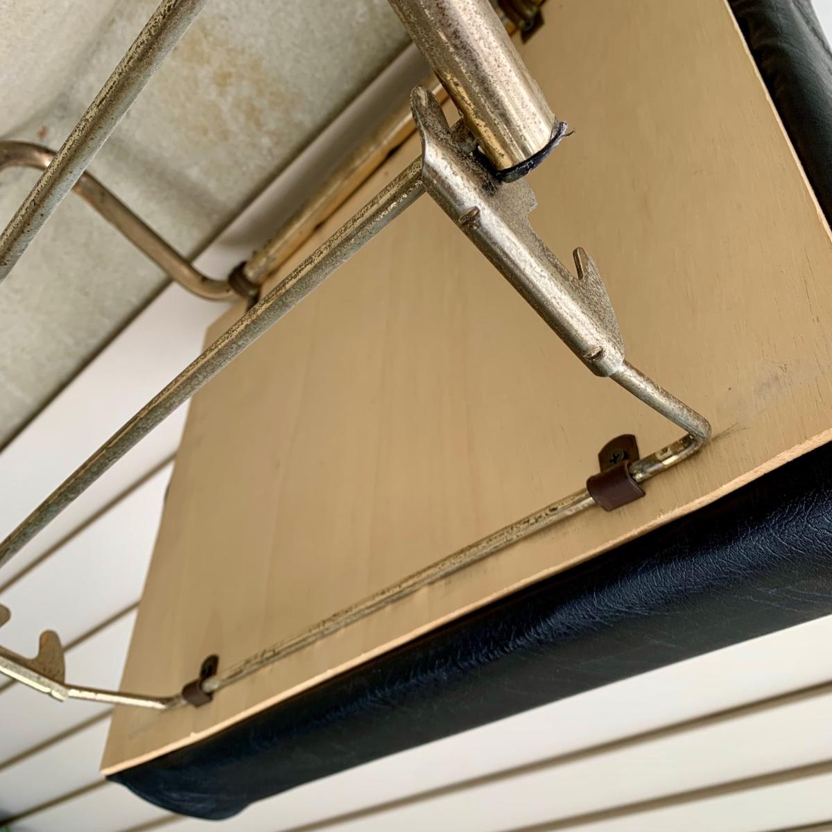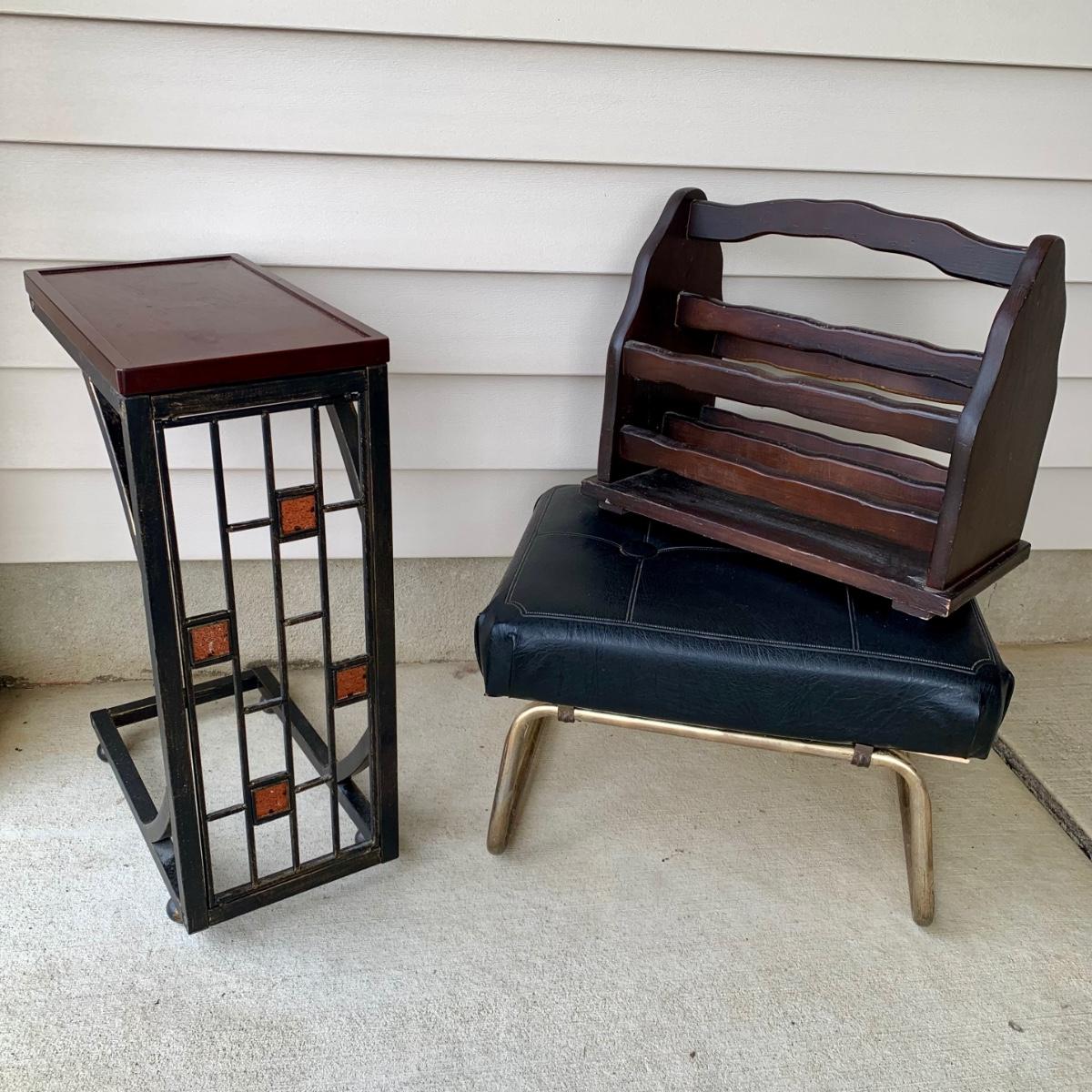 LOT 36 G: Slim Sofa Coffee Tray Table, 1970 Dark Wood Magazine Rack, & 1960's Pearl Wick Adjustable Vinyl Ottoman