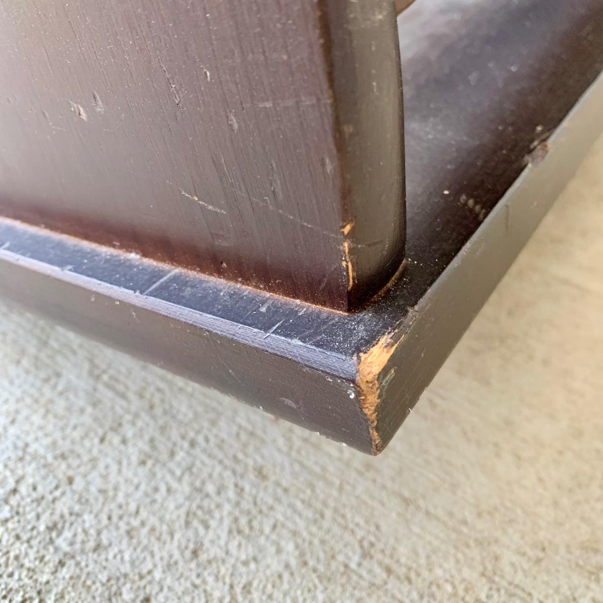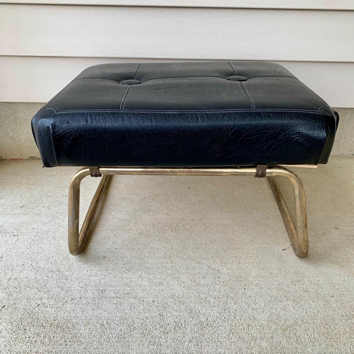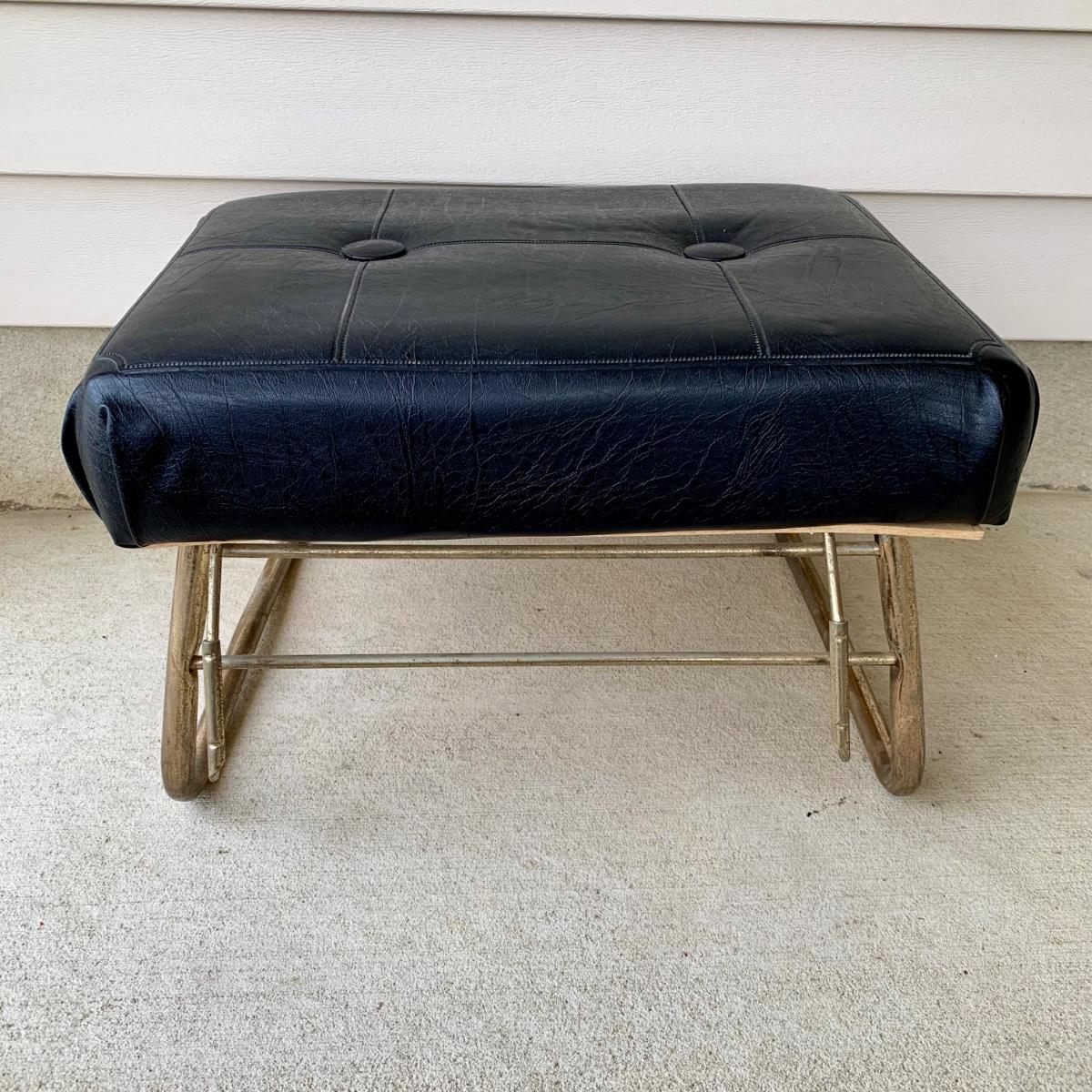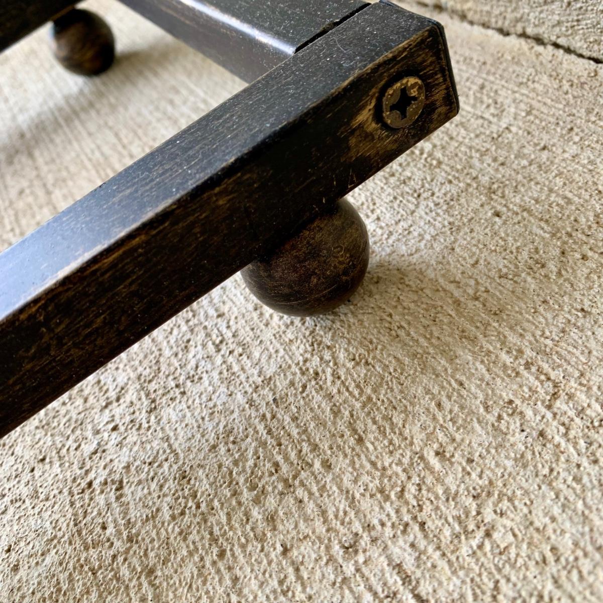 LOT 36 G: Slim Sofa Coffee Tray Table, 1970 Dark Wood Magazine Rack, & 1960's Pearl Wick Adjustable Vinyl Ottoman