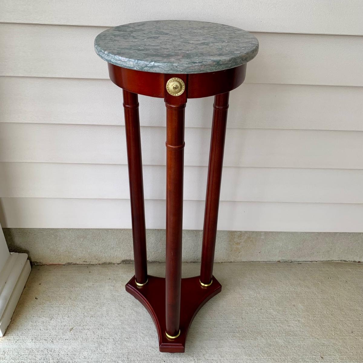 LOT 37 G: Dark Wood Plant Stand & Mahogany w/ Marble Top Plant Stand