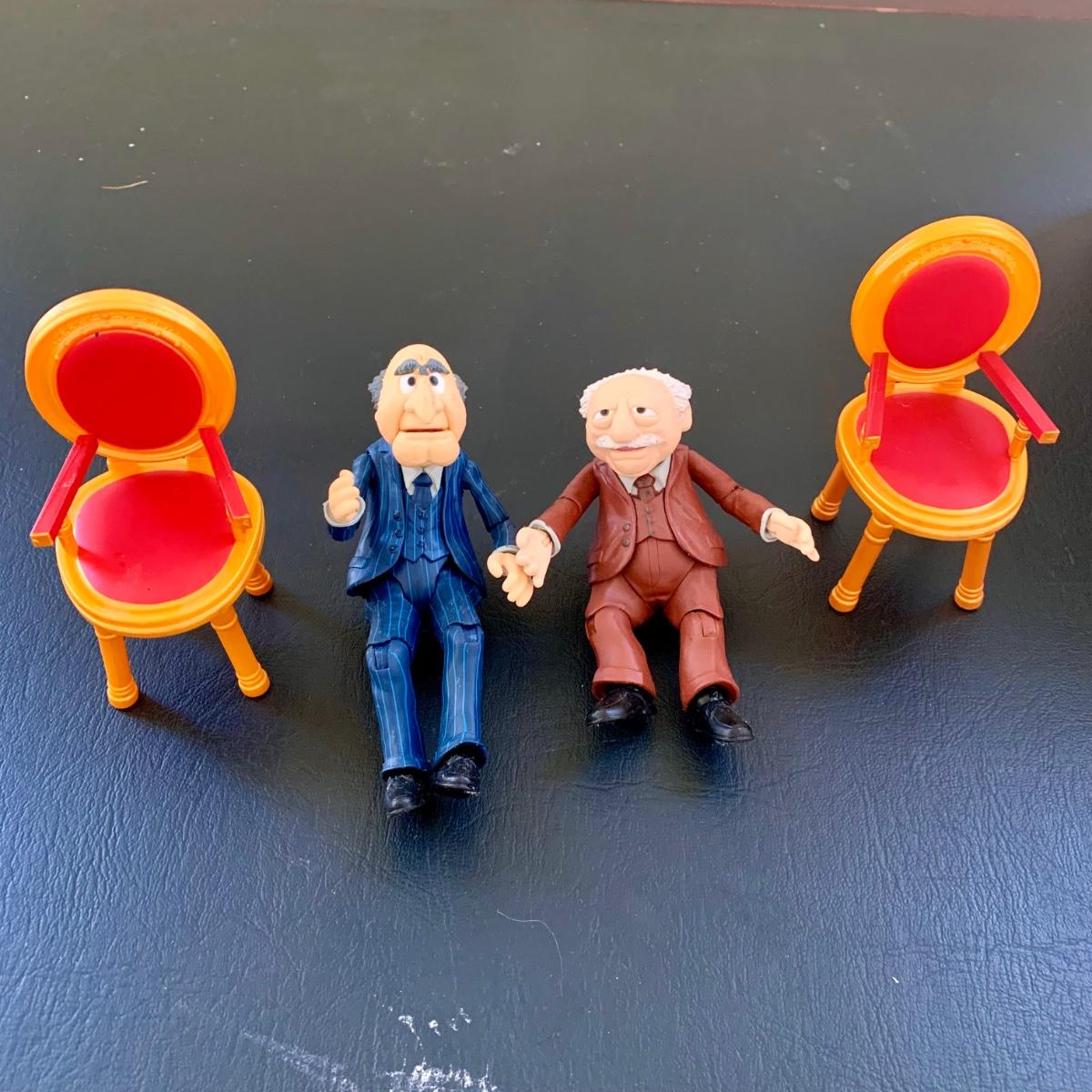 LOT 55 L: The Muppets Collection: 2017 Christmas Carol Ornaments, Statler & Waldorf w/ Balcony Figures, & Lego Figures