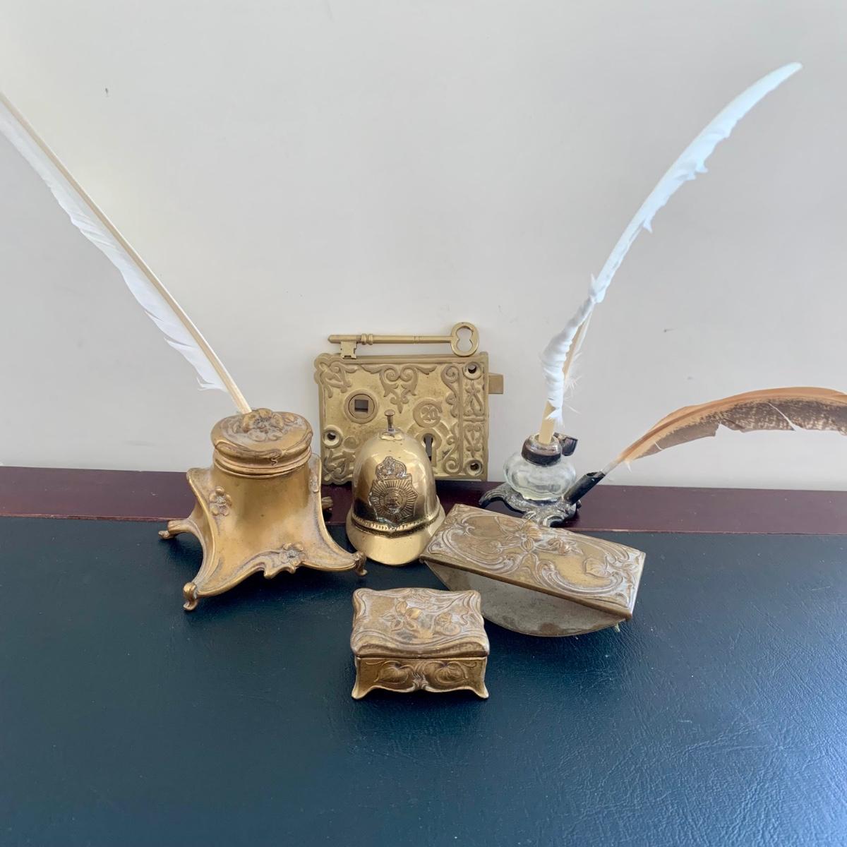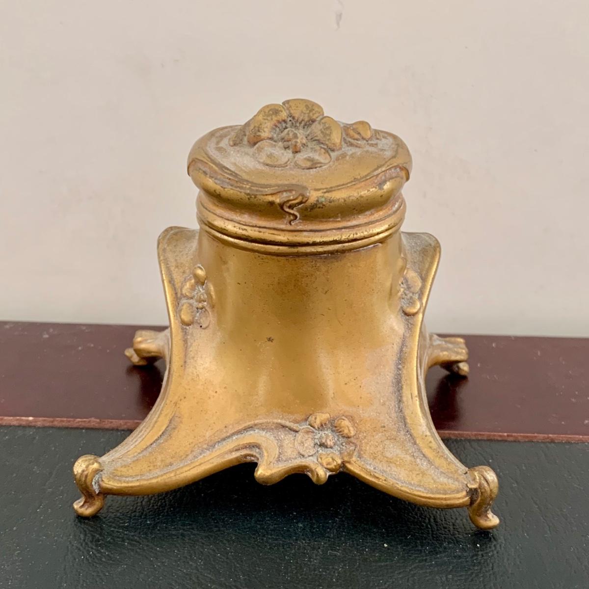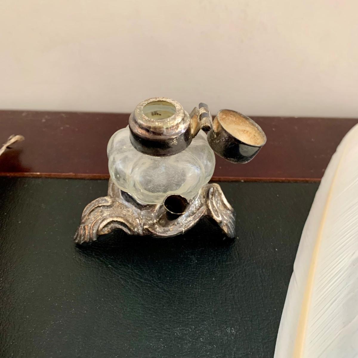 LOT 76 L: Antique French Art Nouveau Miniature Box & Rocking Ink Blotter, Jennings Brothers Ink Well, & More