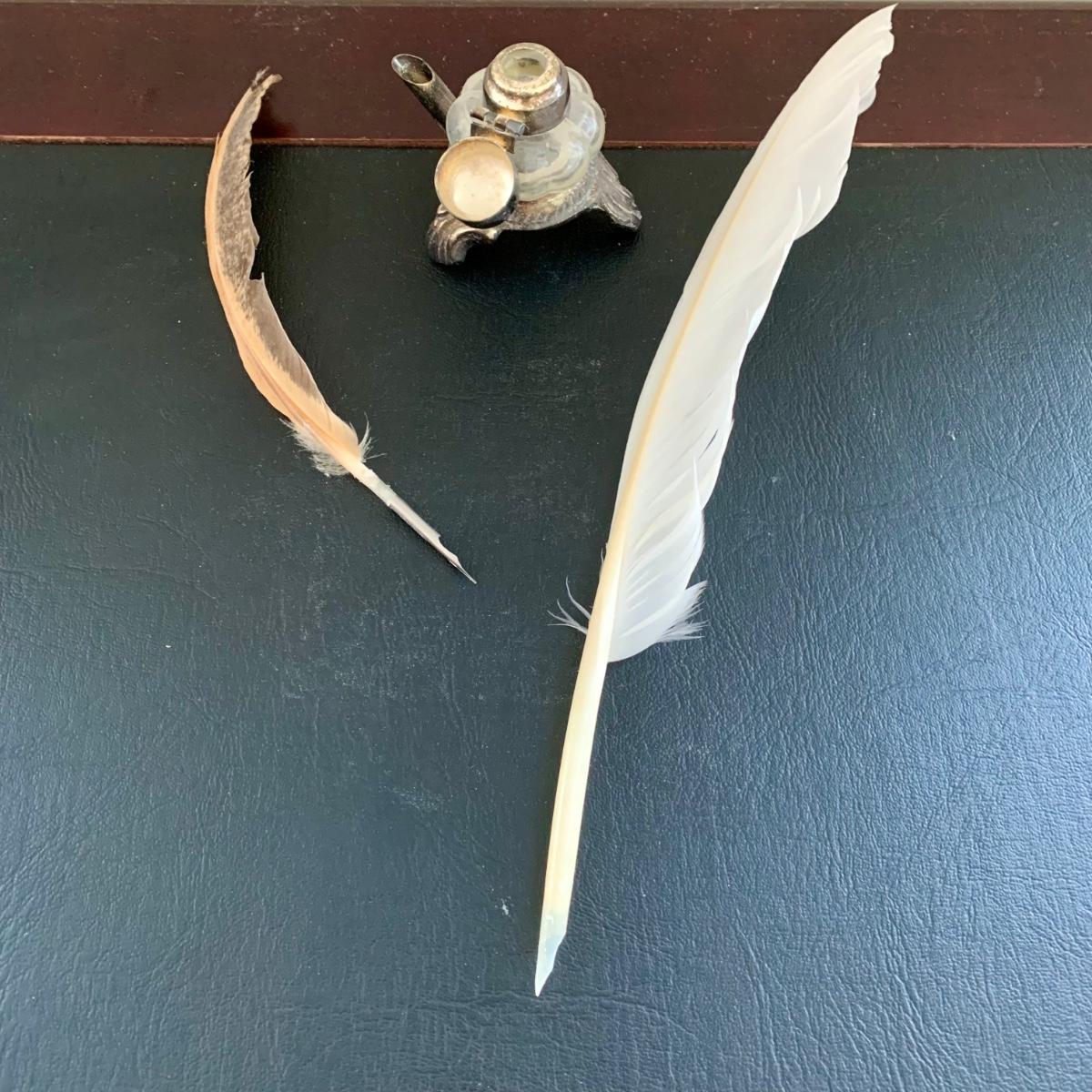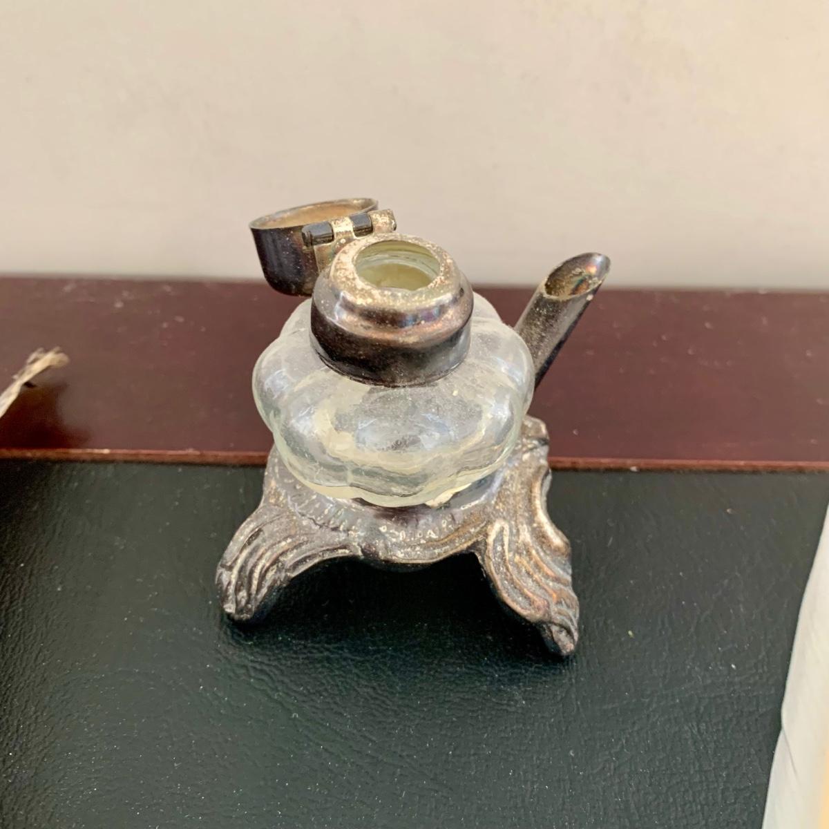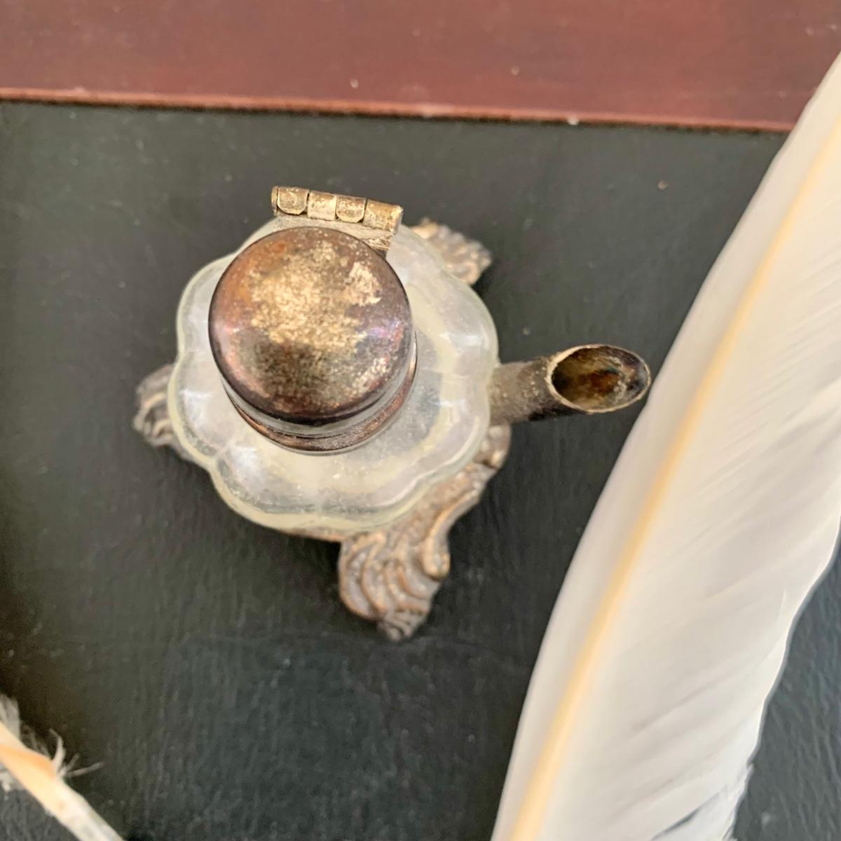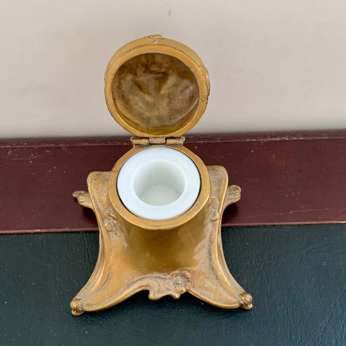 LOT 76 L: Antique French Art Nouveau Miniature Box & Rocking Ink Blotter, Jennings Brothers Ink Well, & More