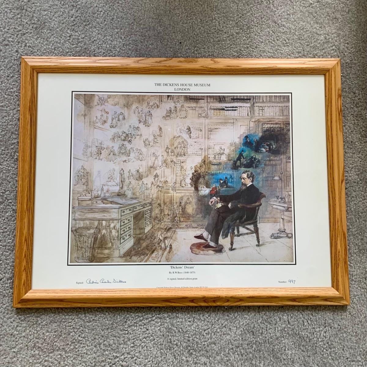 LOT 78 B: Framed & Numbered Limited Edition Print From The Dickens House Museum in London "Dickens' Dream" by R. W. Buss Signed by Cedric Charles Dickens