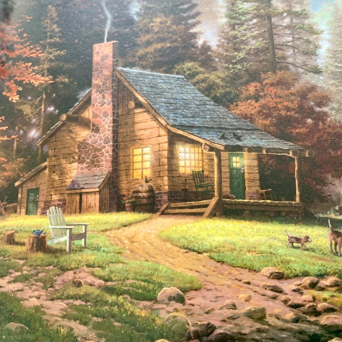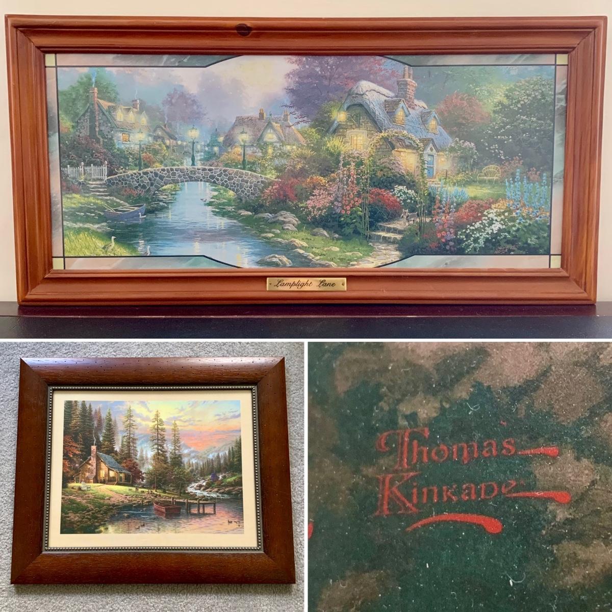 LOT 104 B: Limited Edition Thomas Kinkade Framed & Numbered Thomas Kinkade Print & "Lamplight Lane" Bradford Exchange Wall Decor