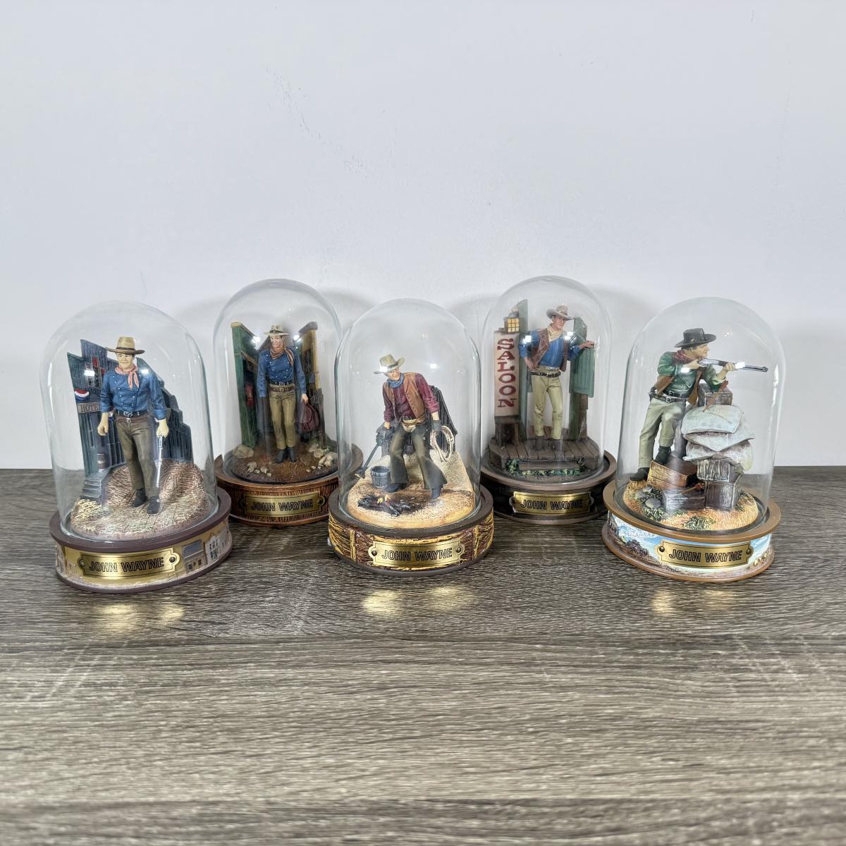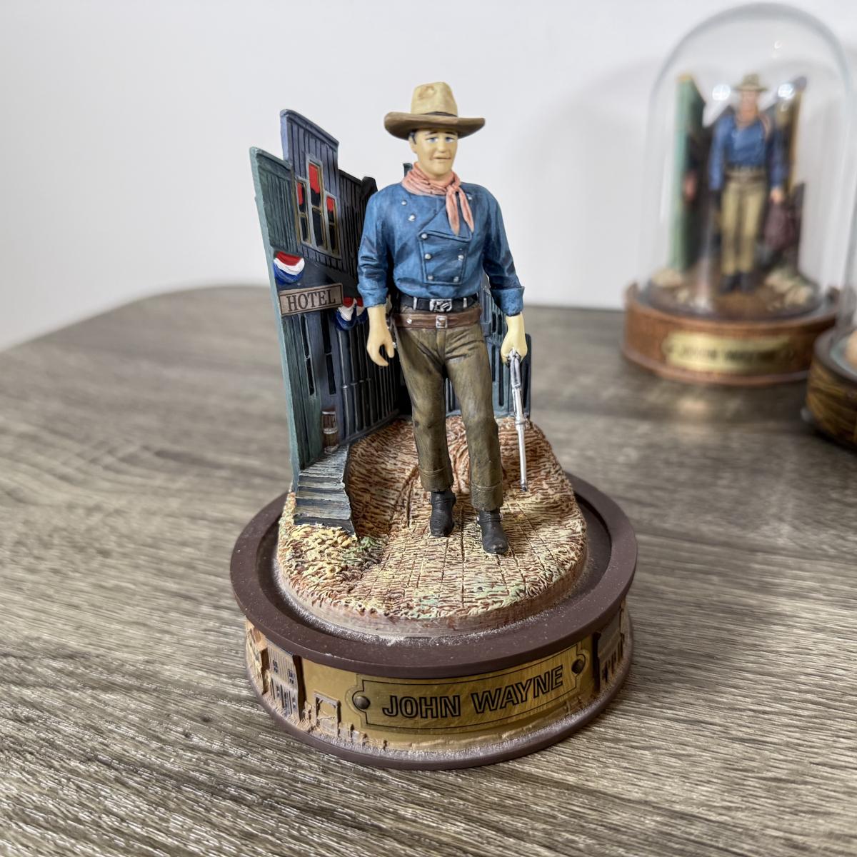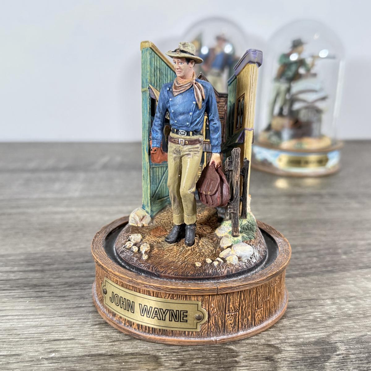 LOT 107L: John Wayne Franklin Mint Limited Edition Figurines w/ Glass Cloches
