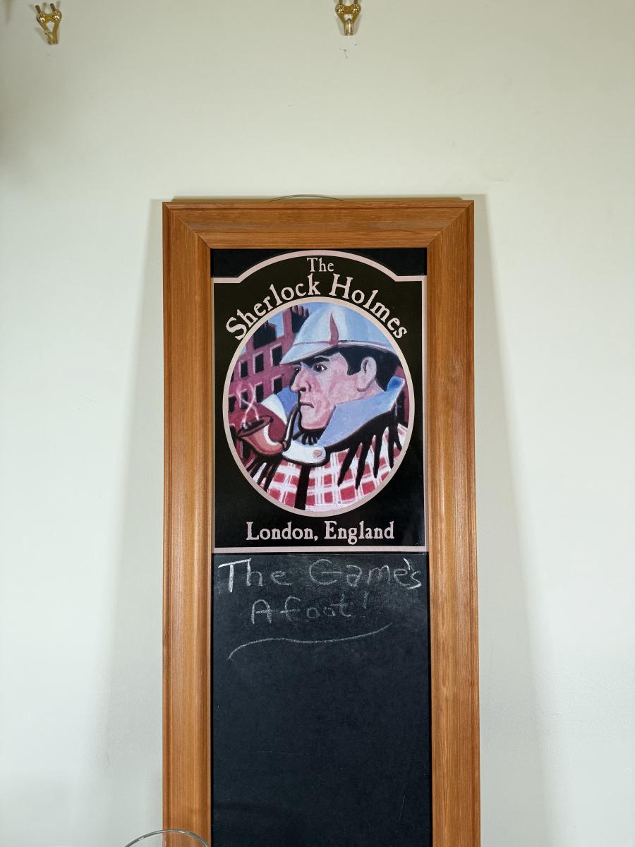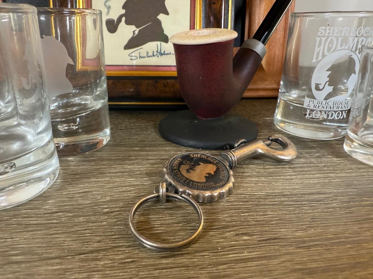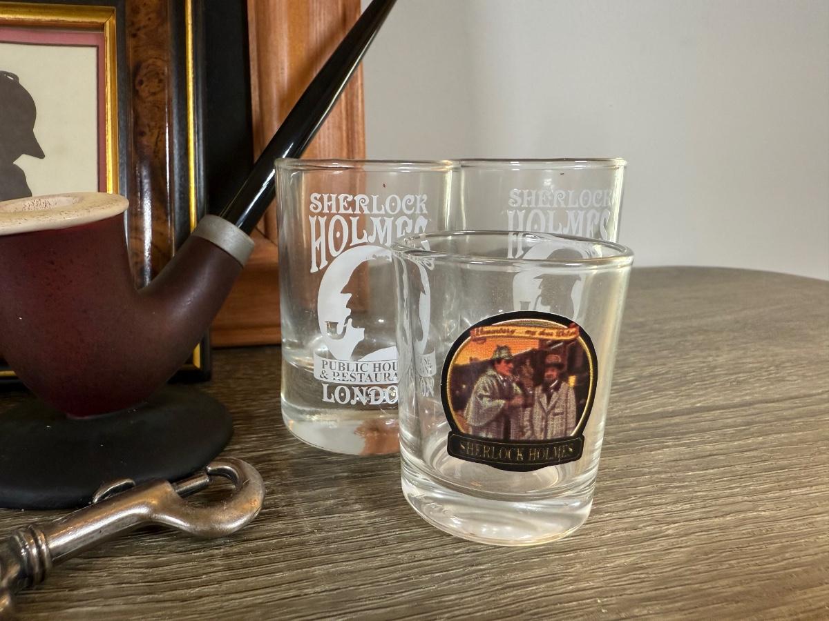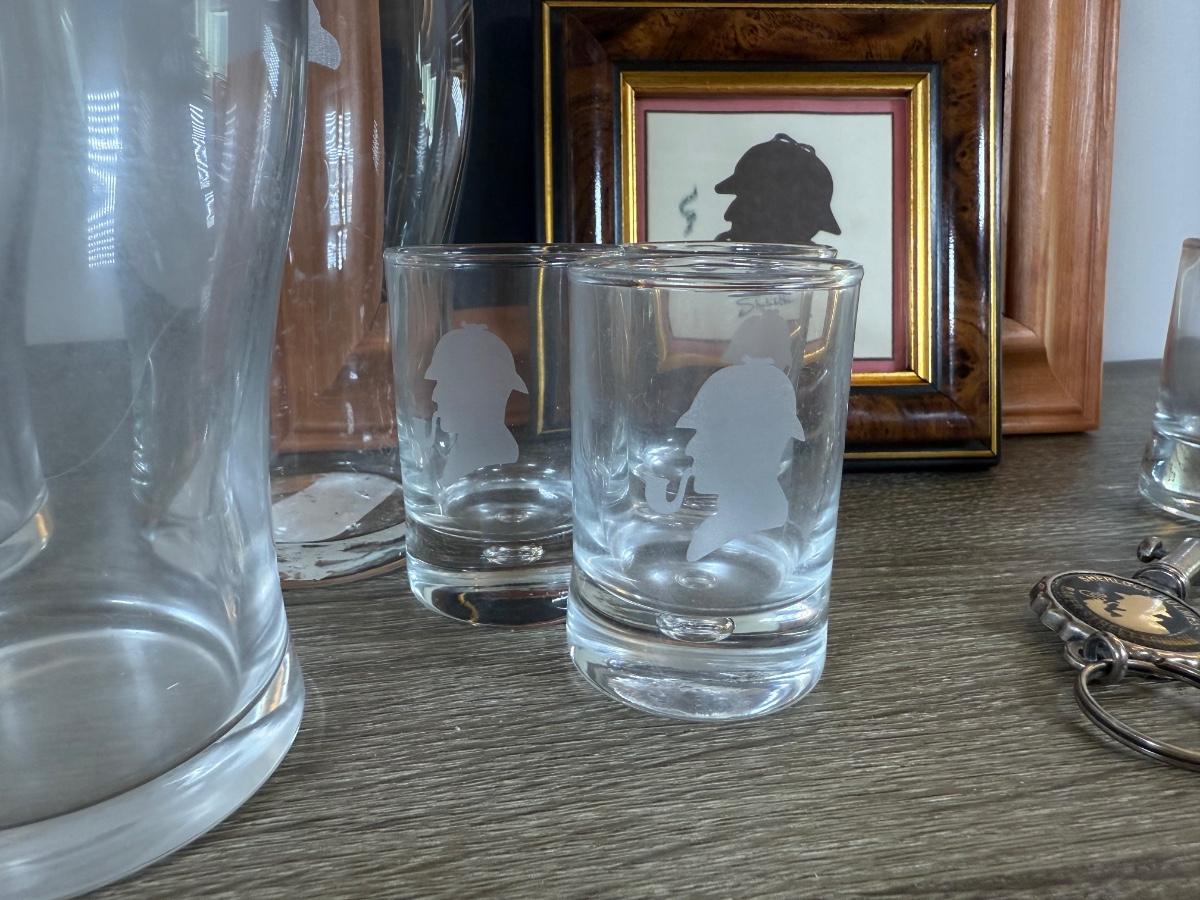 LOT 109L: Sherlock Holmes Collection - Chalkboard Sign, Beer & Shot Glasses, Pipe Pen Holder Desk Set & More