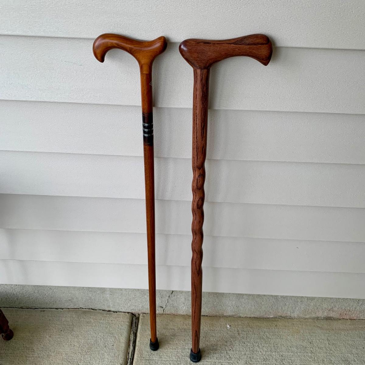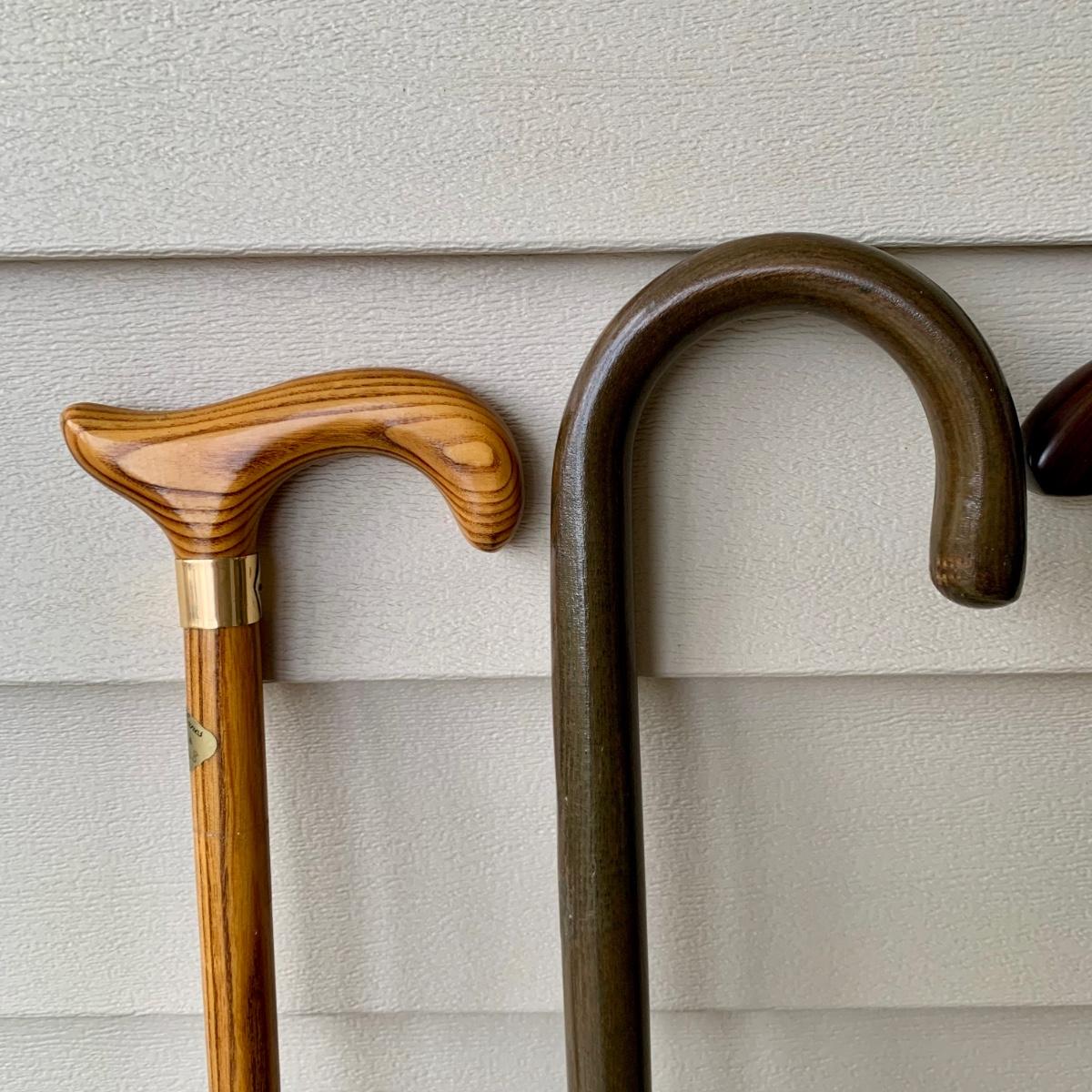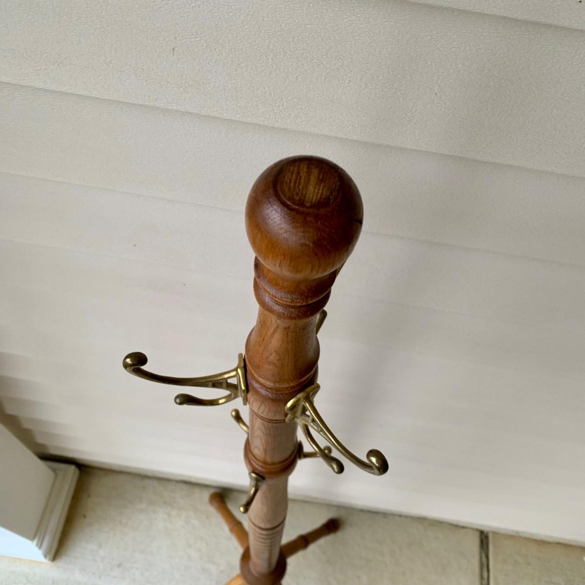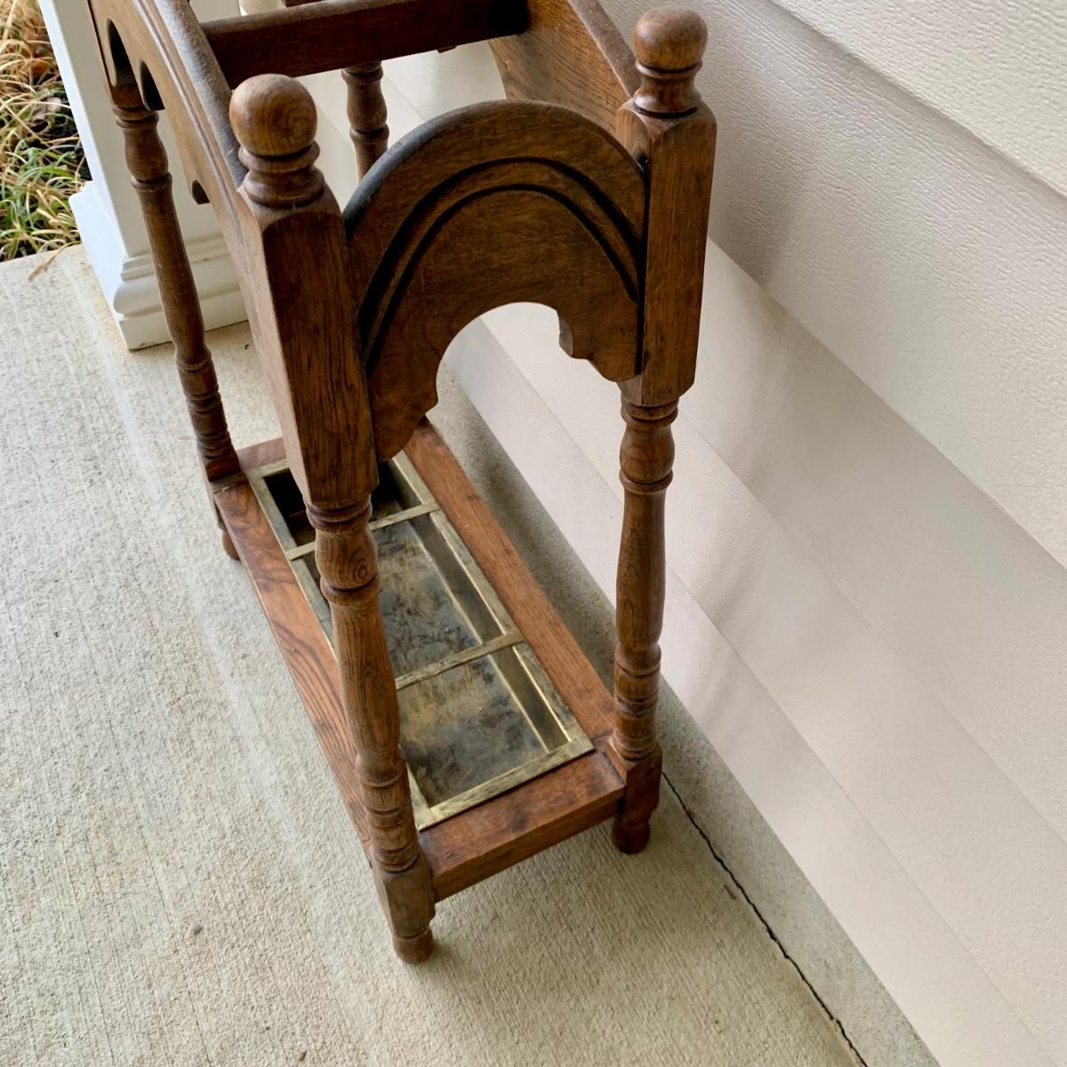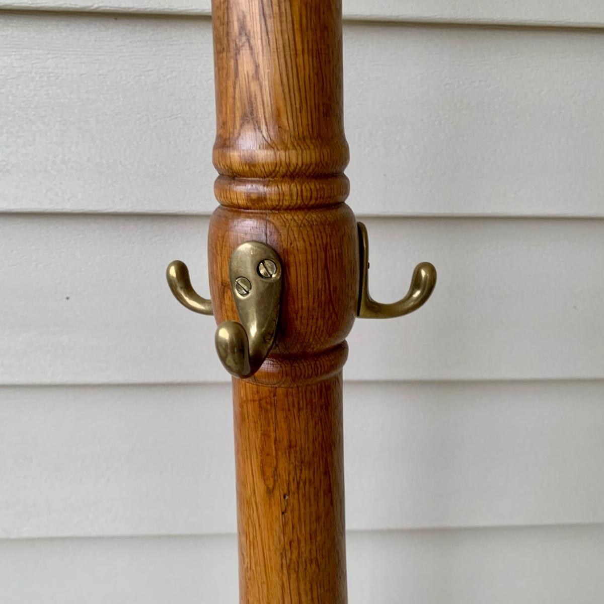 LOT 162 G: Wooden Coat Rack, Oak Umbrella Stand, & Collection of Walking Sticks & Canes (Wood & Aluminum)