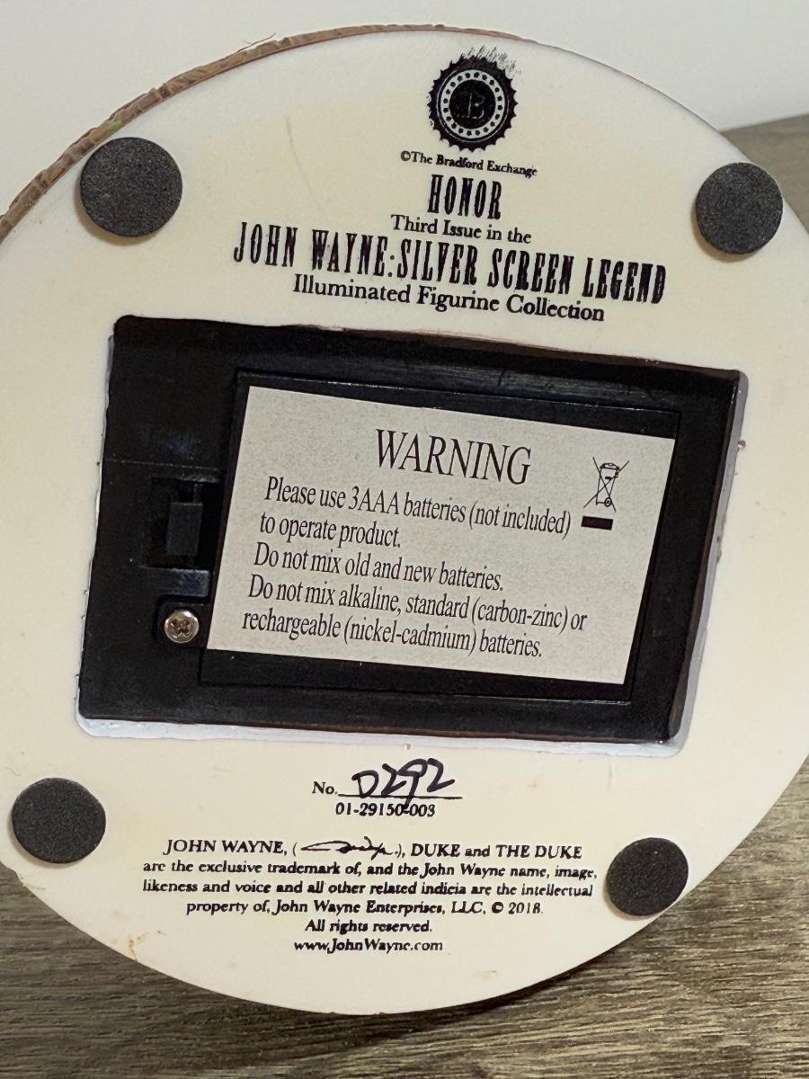 LOT 164B: John Wayne Bradford Exchange - An American Hero Illuminated Statement Edition A0574, American Legend 1st Issue A7344, Silver Screen Legend Honor D292 & Duke The Legend 0304