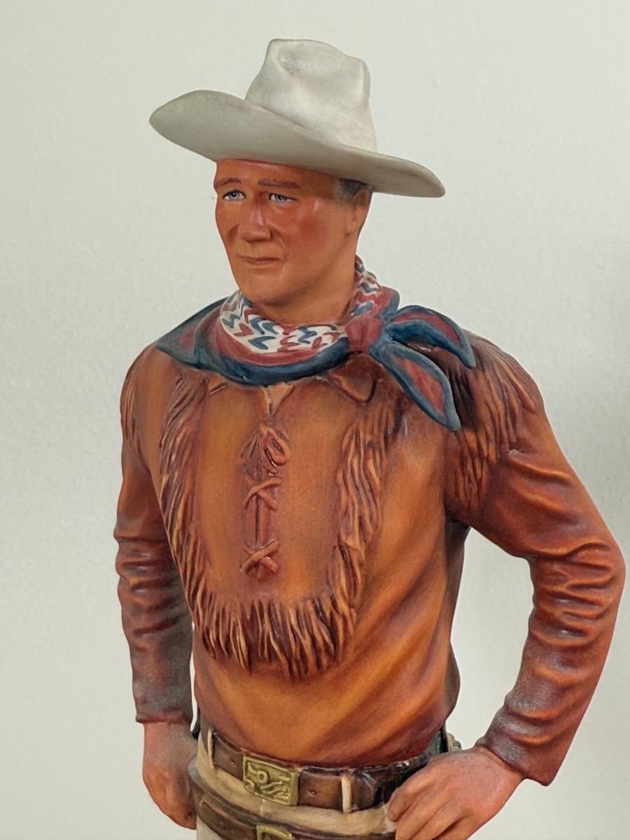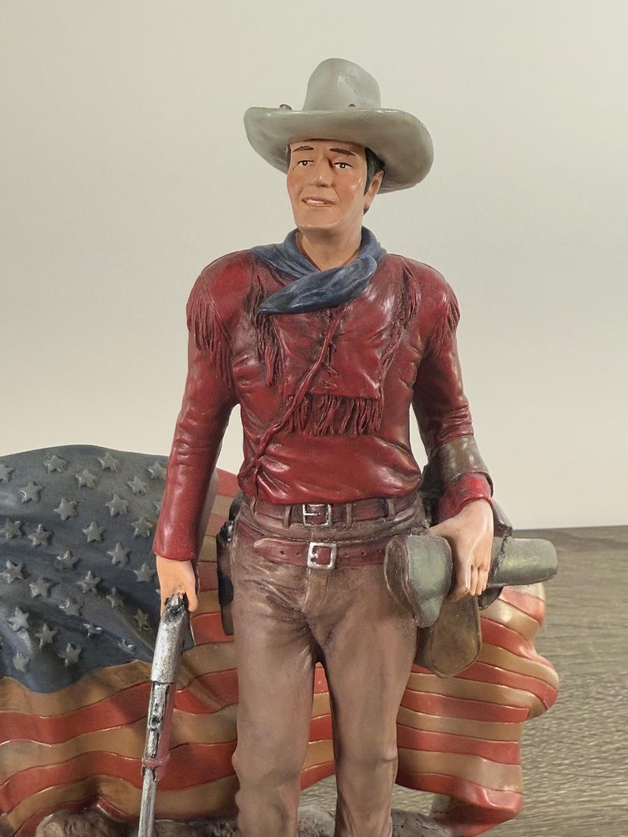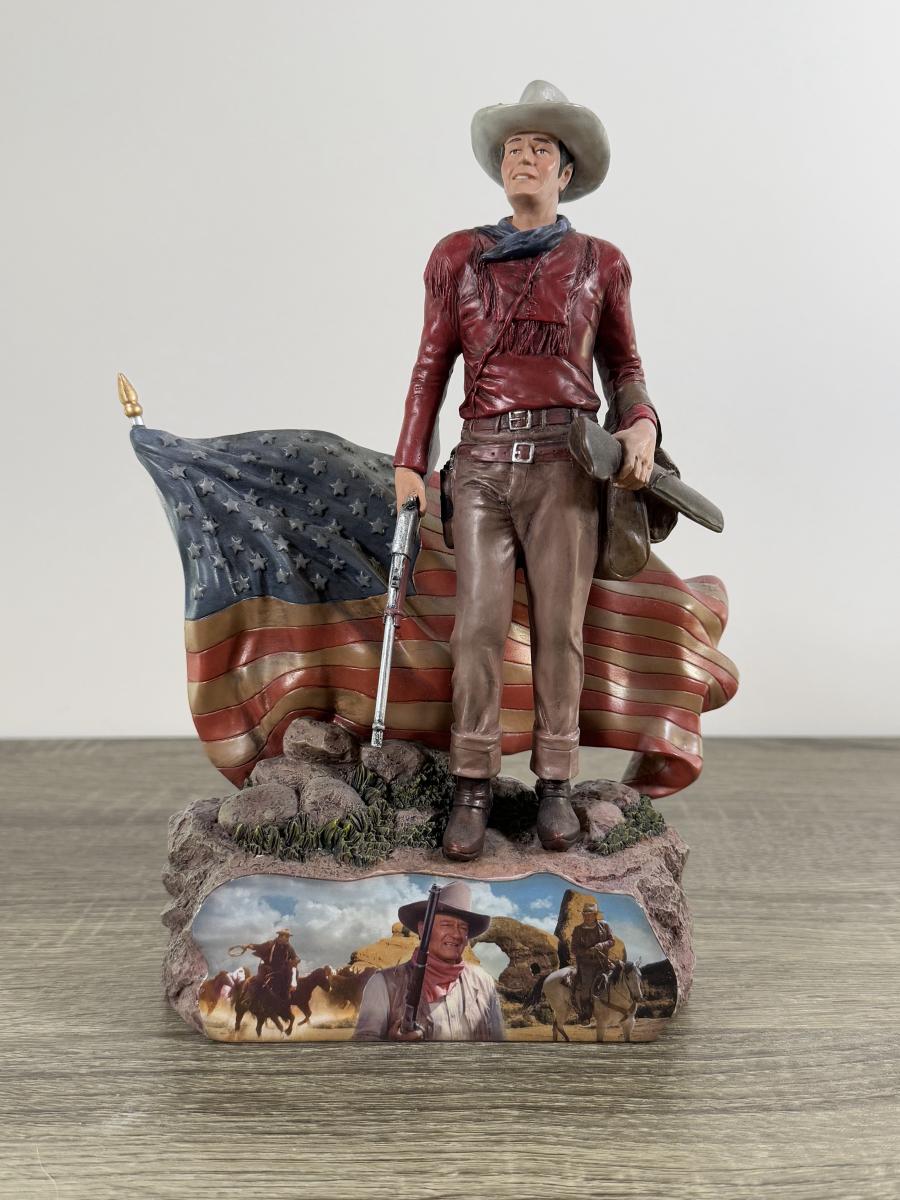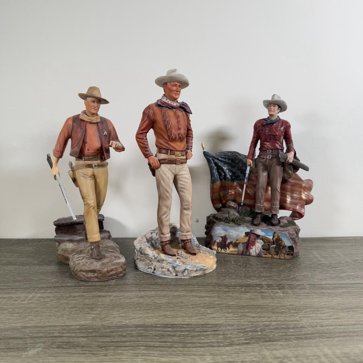 LOT 167L: John Wayne Porcelain Statues - The Franklin Mint "The Duke", "Western Lawman" and Bradford Exchange Trails of Glory