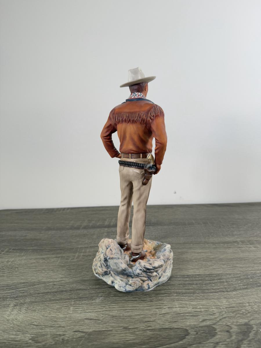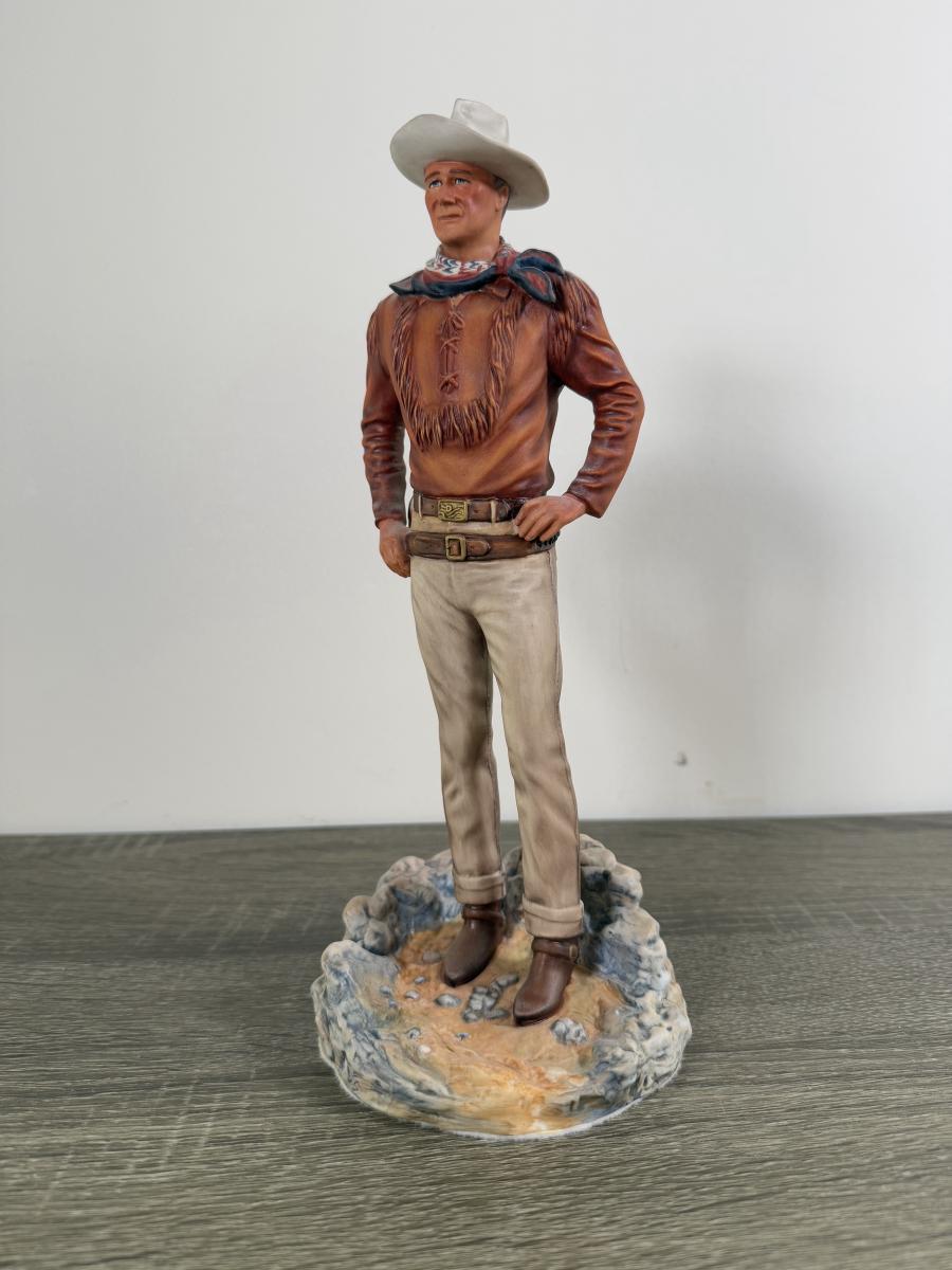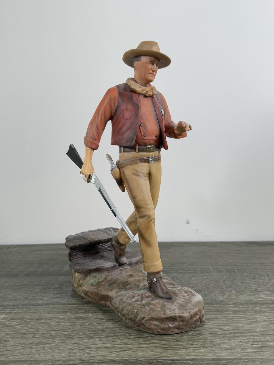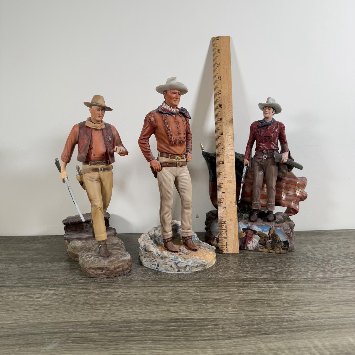LOT 167L: John Wayne Porcelain Statues - The Franklin Mint "The Duke", "Western Lawman" and Bradford Exchange Trails of Glory