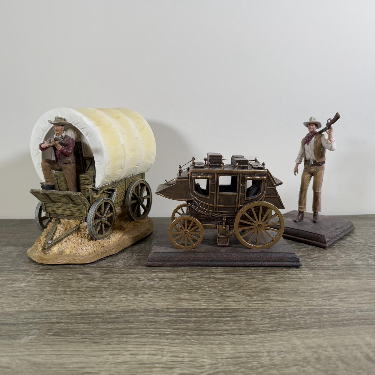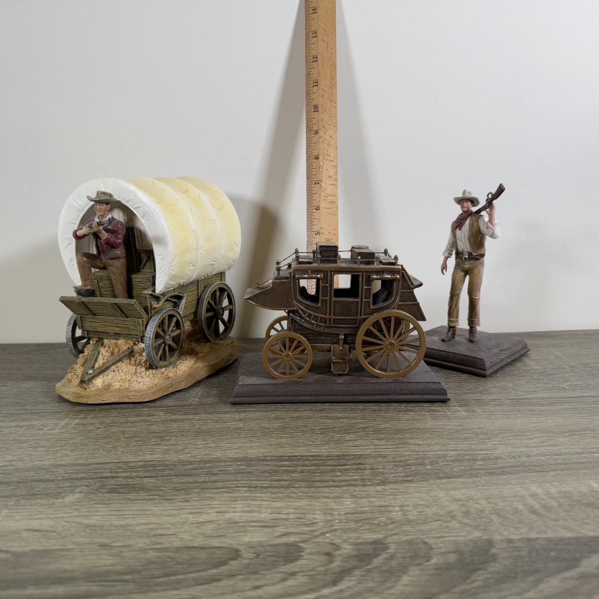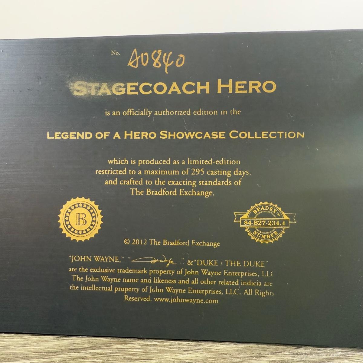 LOT 168L: Bradford Exchange John Wayne - 2009 America's Lawman A0048, 2011 Edwin M Knowles A Legend Stands Tall A0812 & 2012 Stagecoach Hero A0840