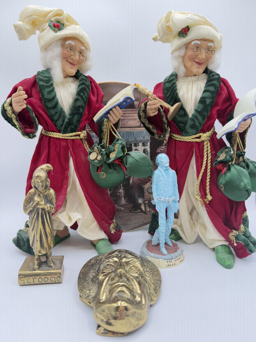 LOT 190L: Kurt S Adler Ebeneezer Scrooges, Brass Jacob Marley / Undigested Lobster Door Knocker & More