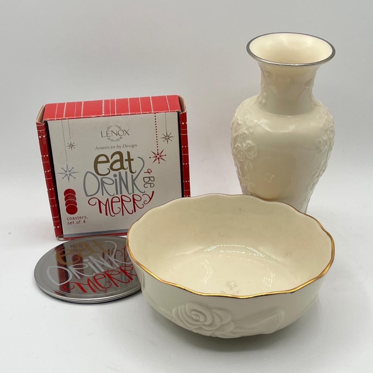 LOT 218K: Lenox Vase, Bowl and Coasters