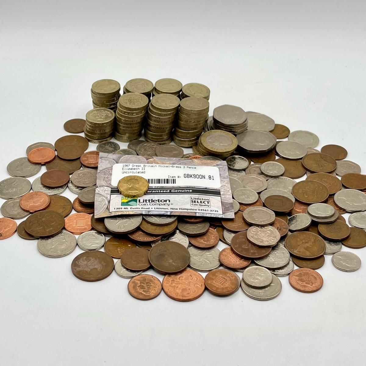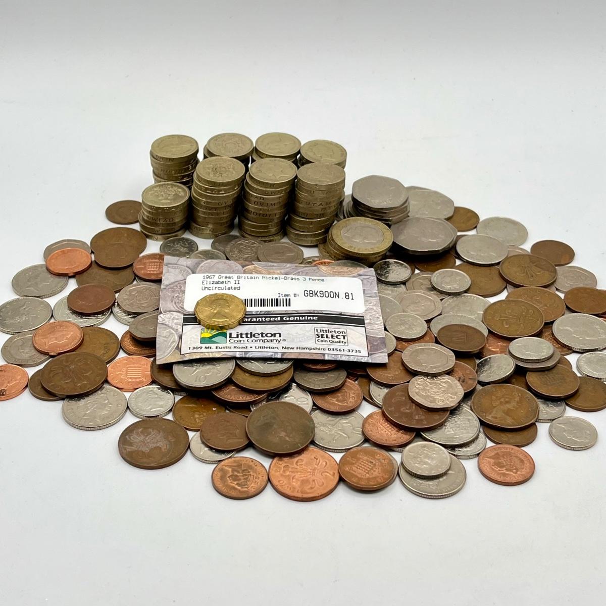 LOT 223J: Big Lot of British Coins - Uncirculated 1967 3-Pence - Over 80 Pounds in 1 and 2-Pound Coins