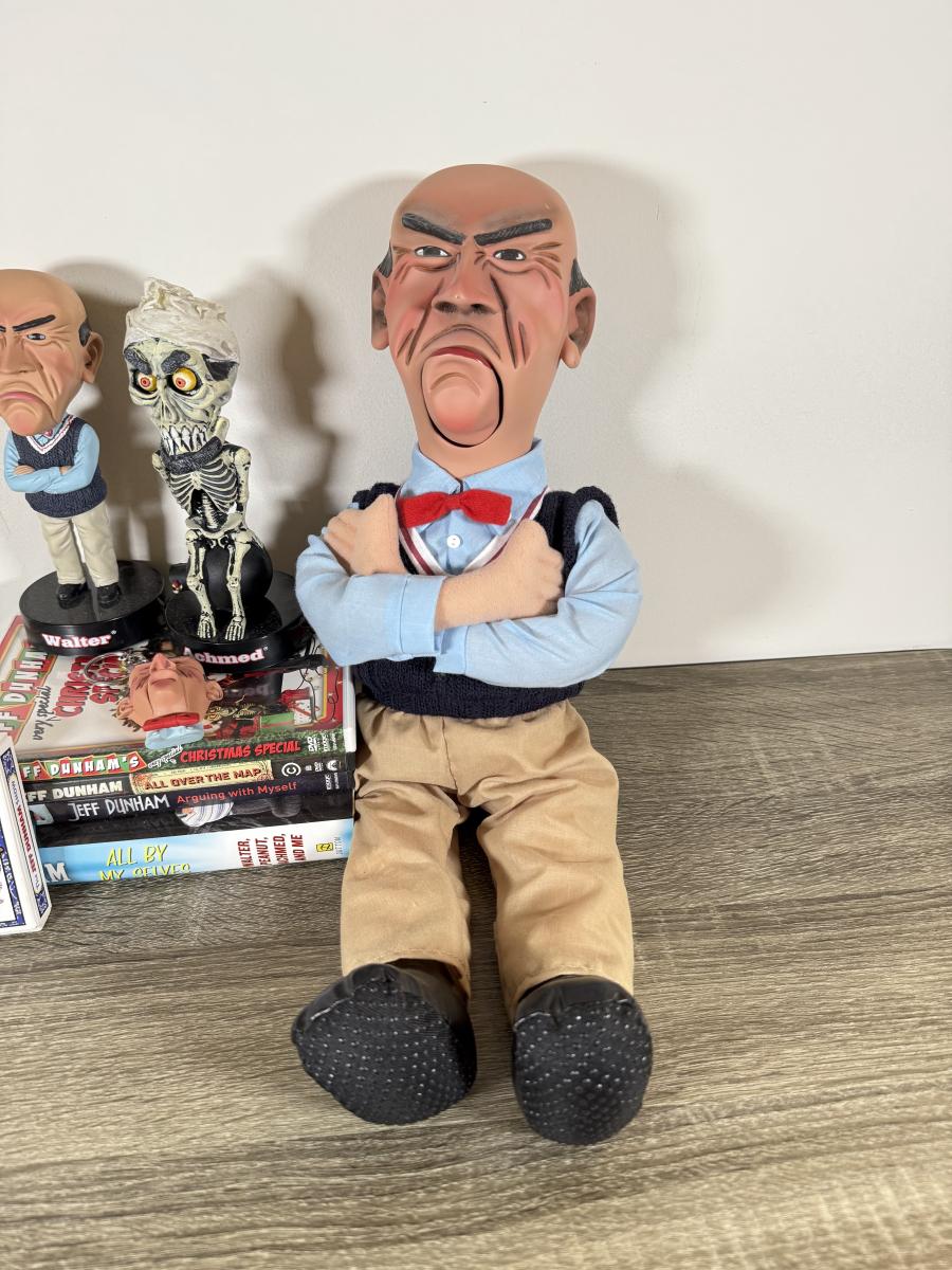 LOT 238L: Jeff Dunham Dolls, Playing Cards, Book, Bobbleheads & DVDs
