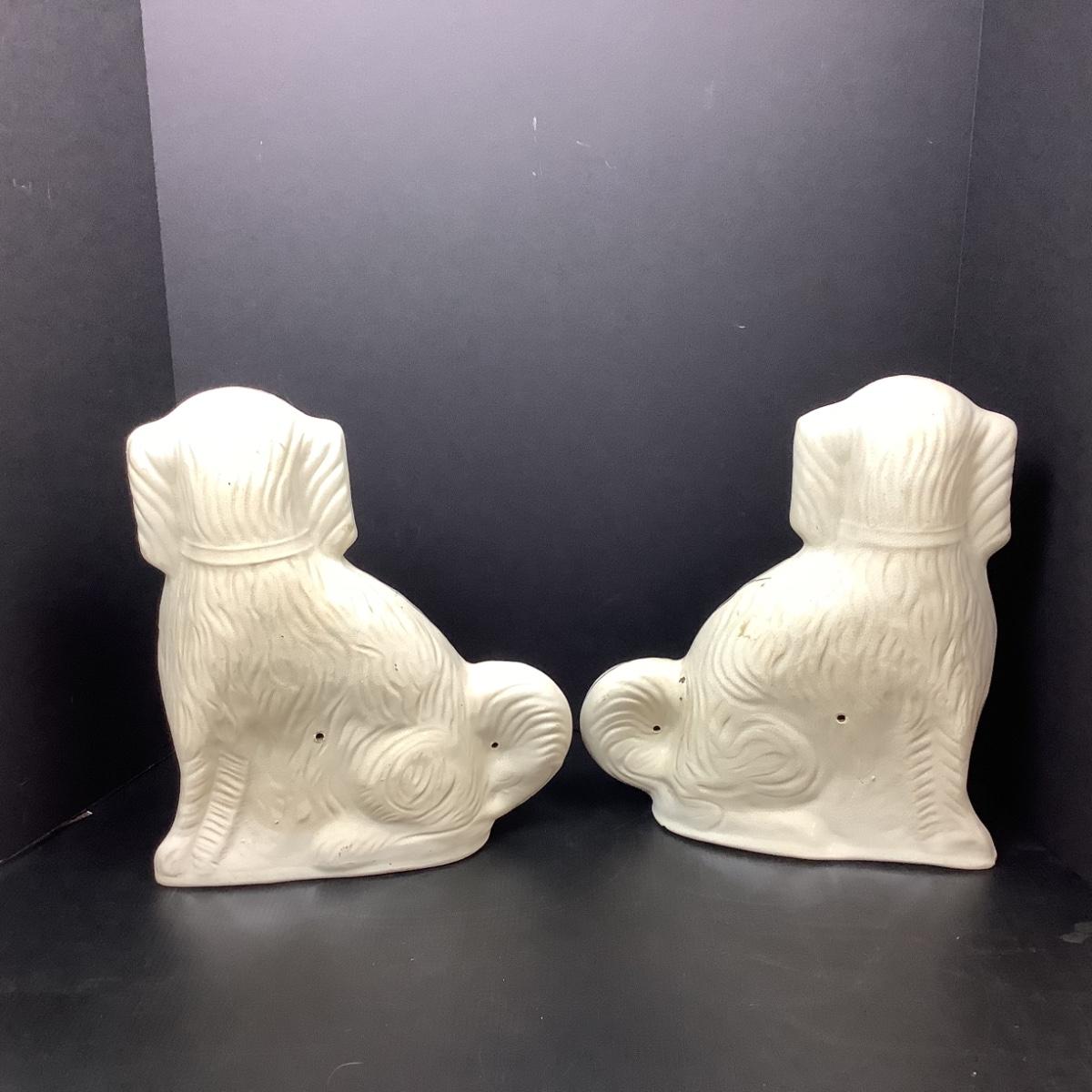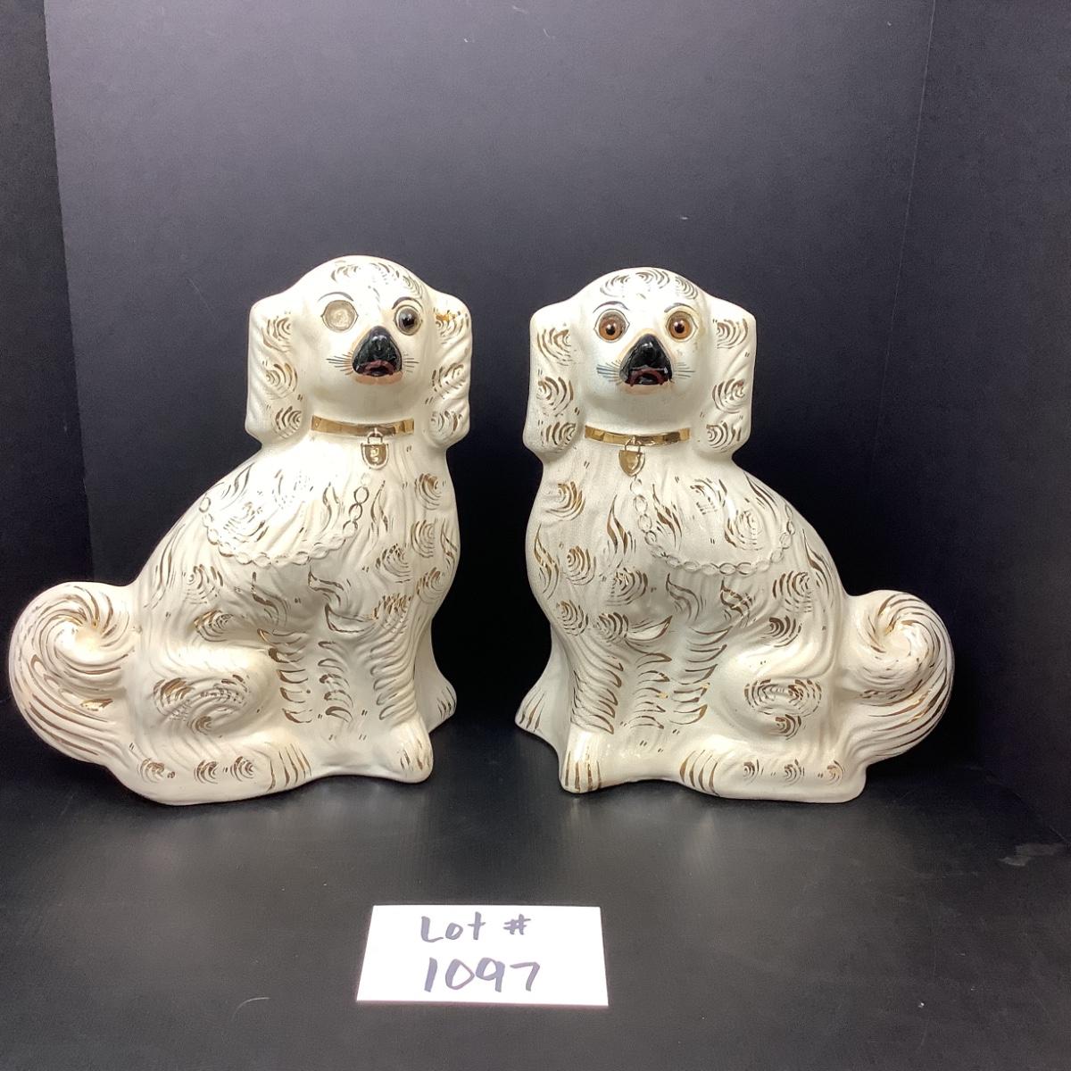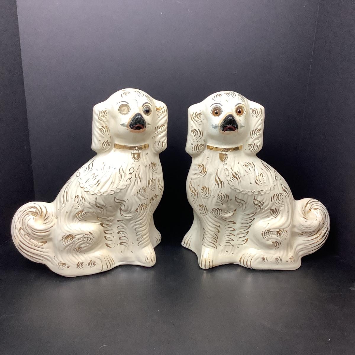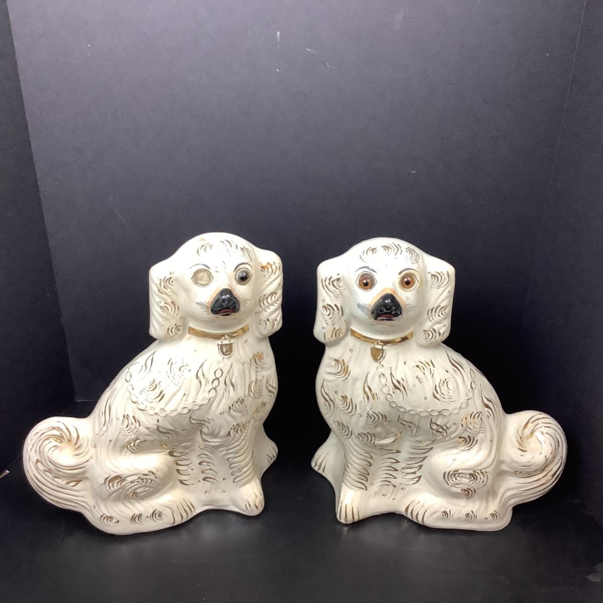 Lot # 1097 Pair of Sitting Vintage White & Gold Staffordshire Spaniel Dogs
