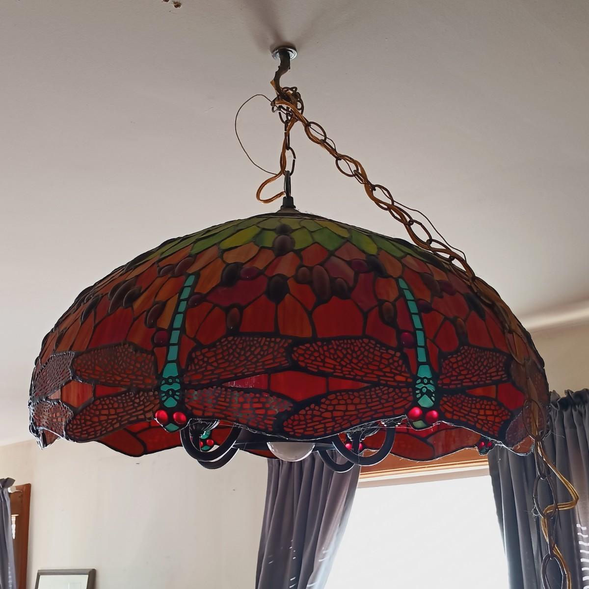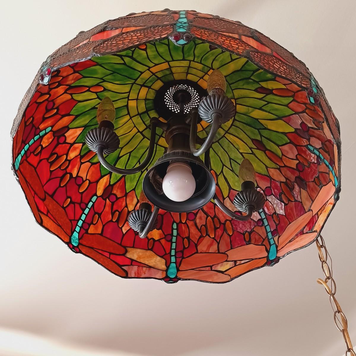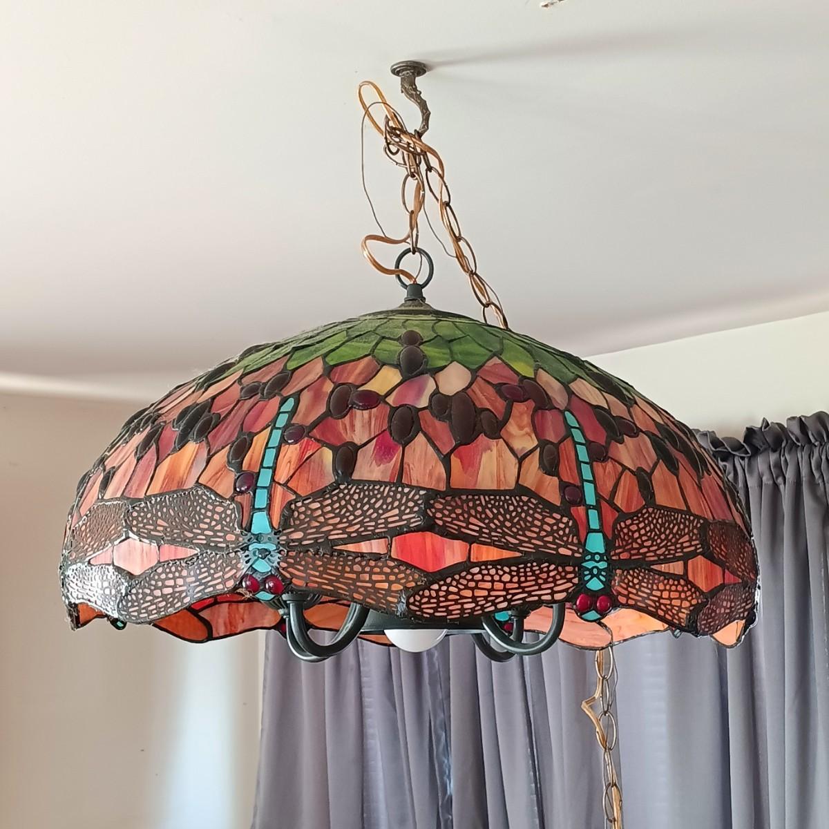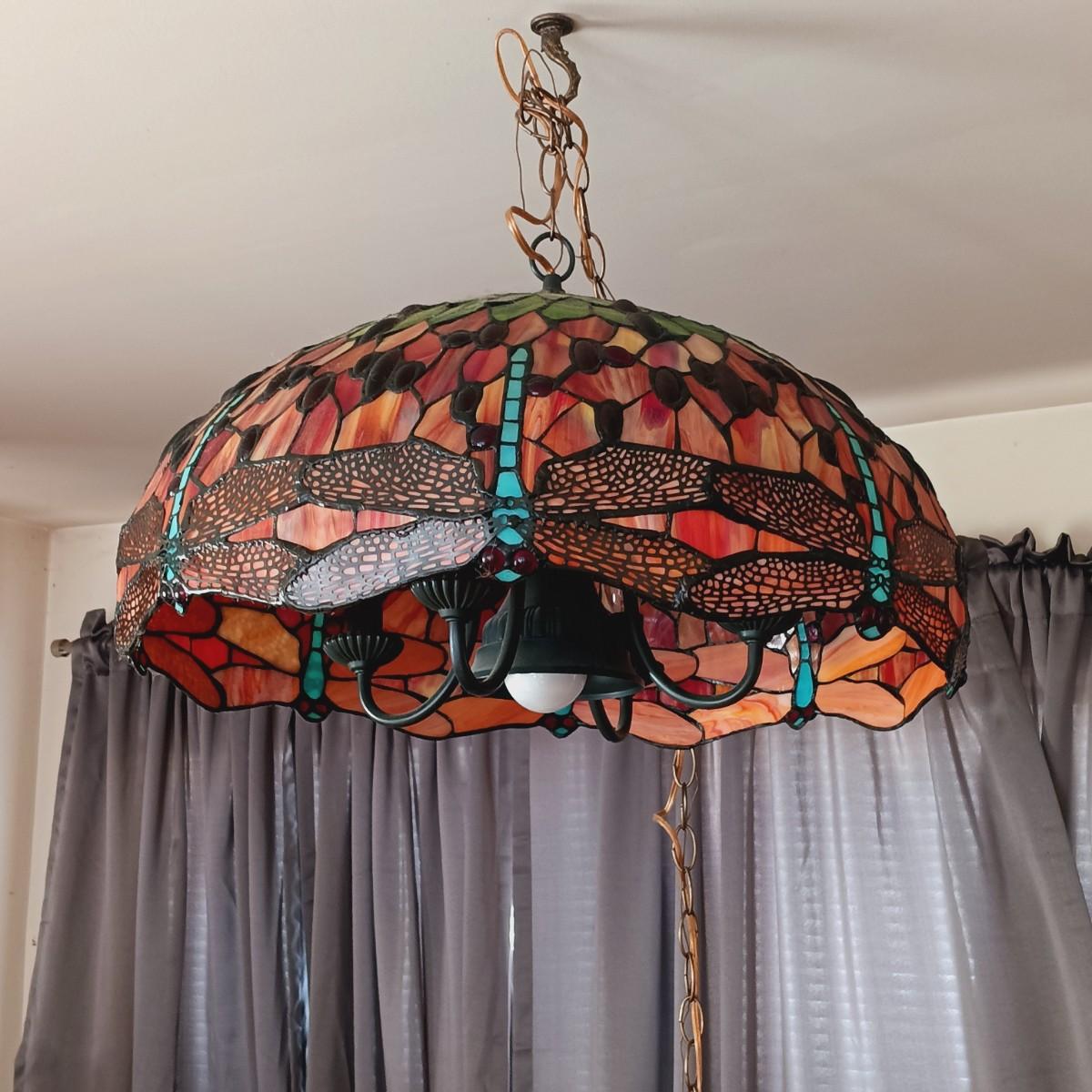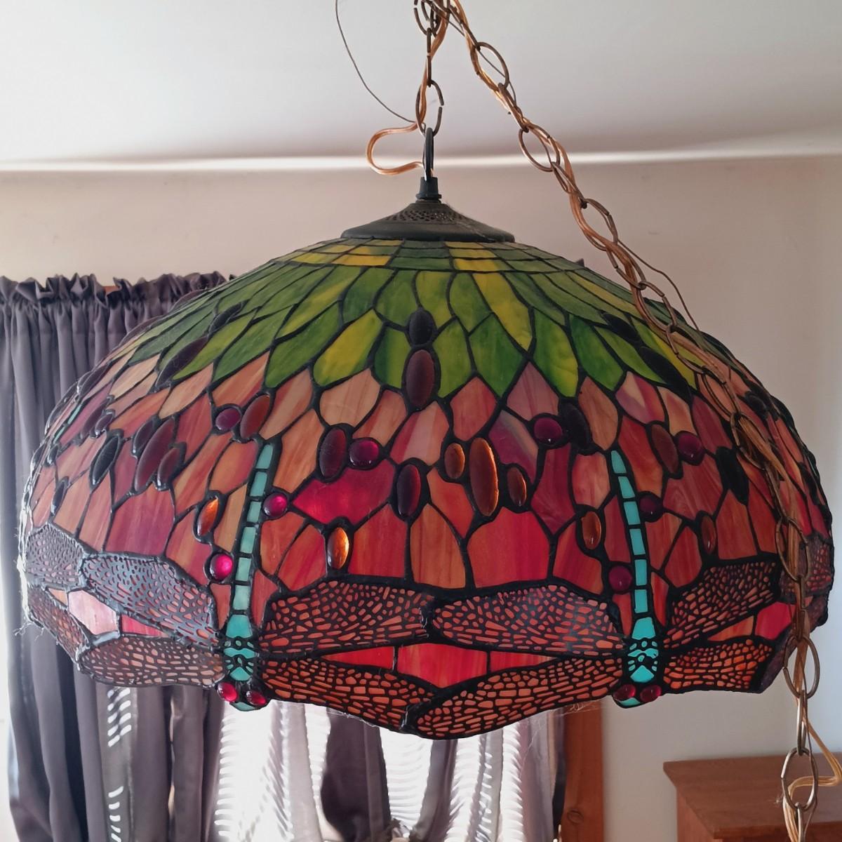 LOT 10: Tiffany-Style Stained Glass Dragonfly Hanging Lamp