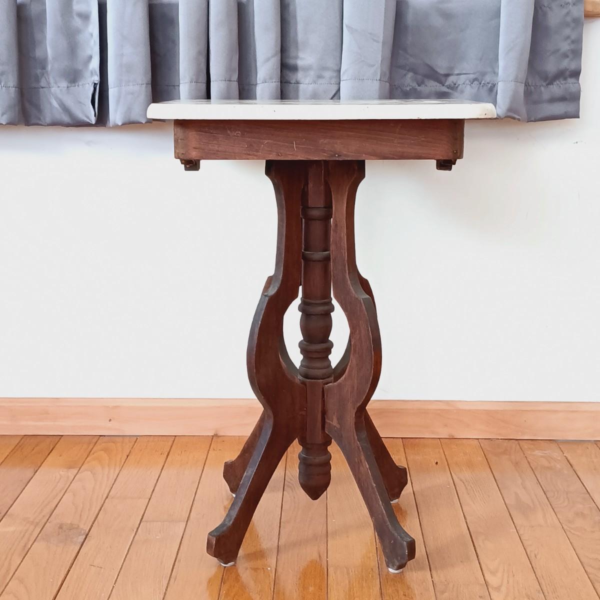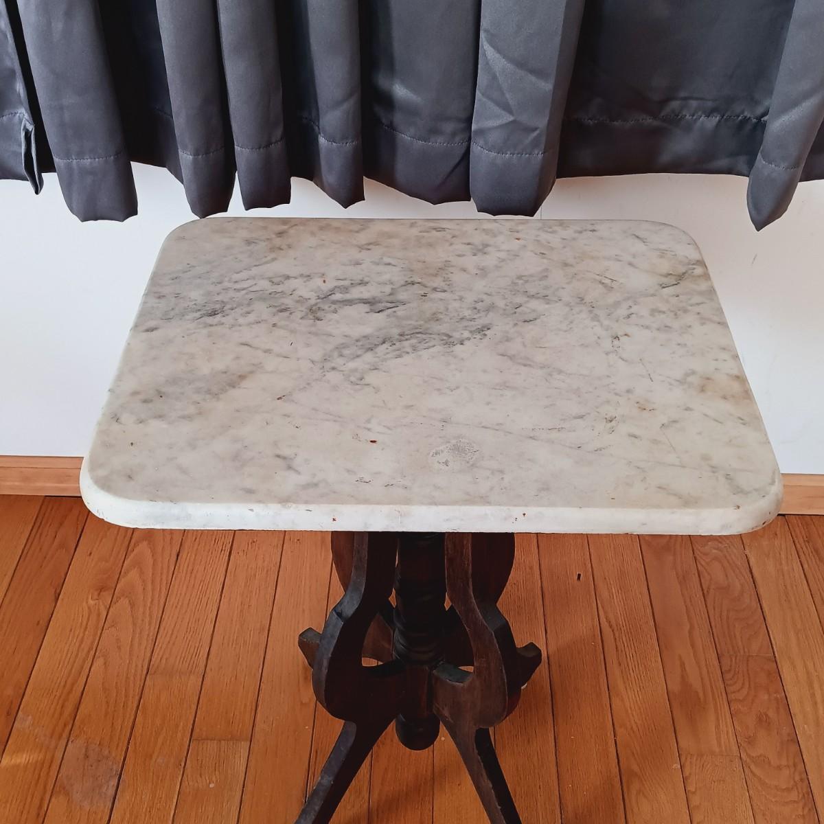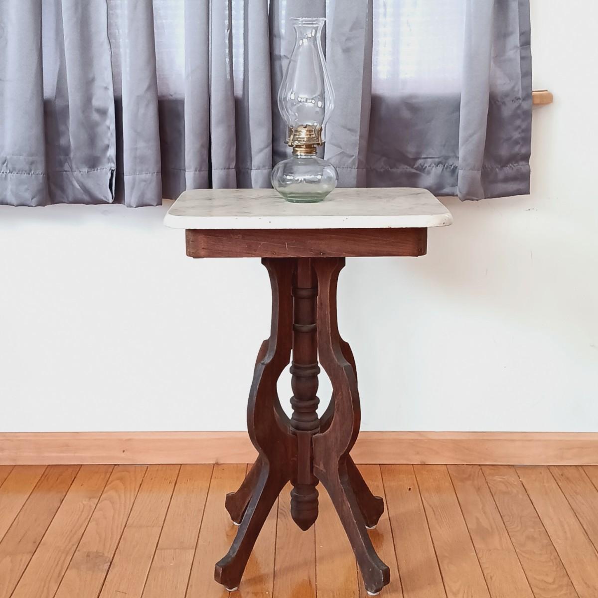 LOT 12: Antique Marble Top Side Table w/ Glass Oil Lamp
