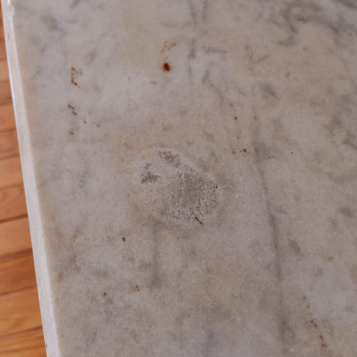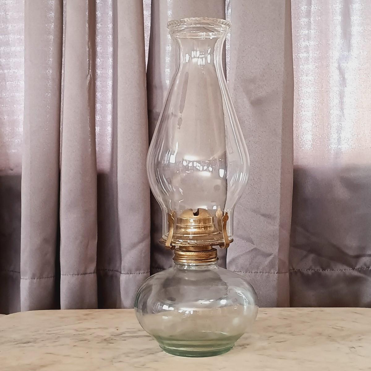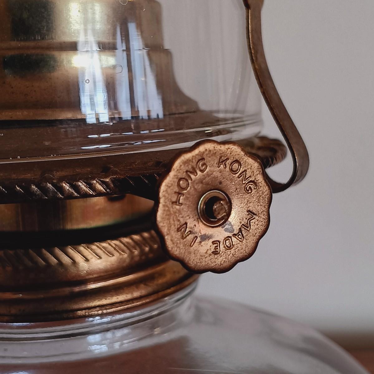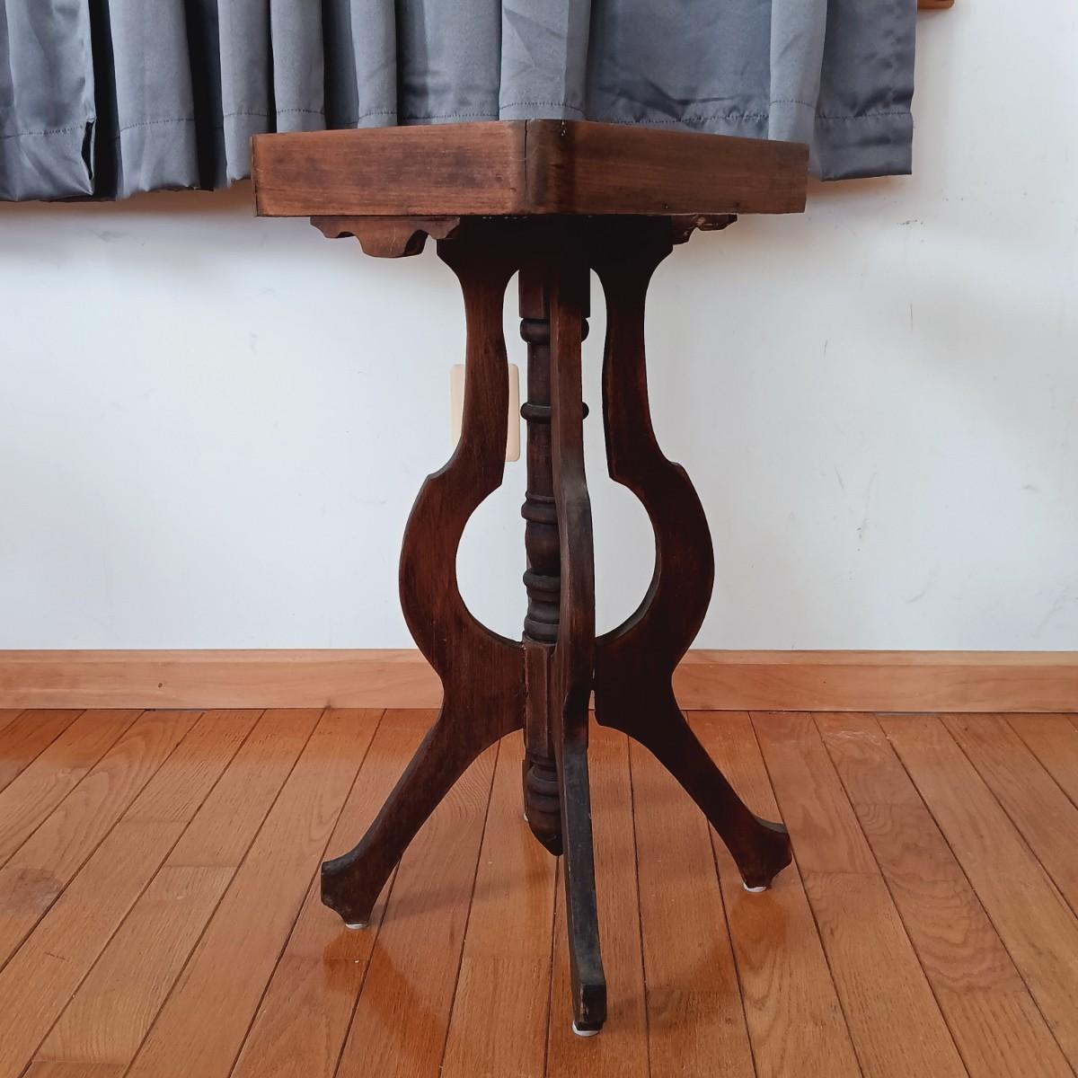 LOT 12: Antique Marble Top Side Table w/ Glass Oil Lamp