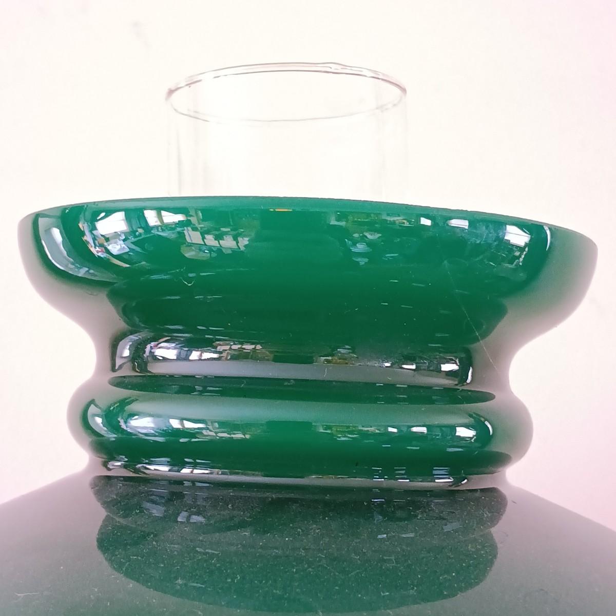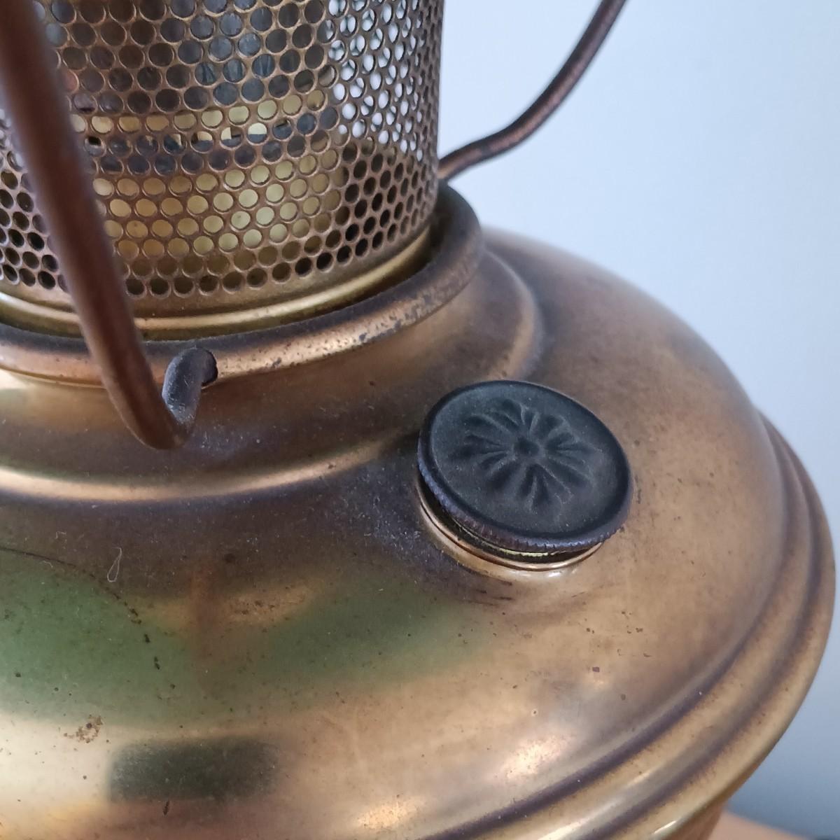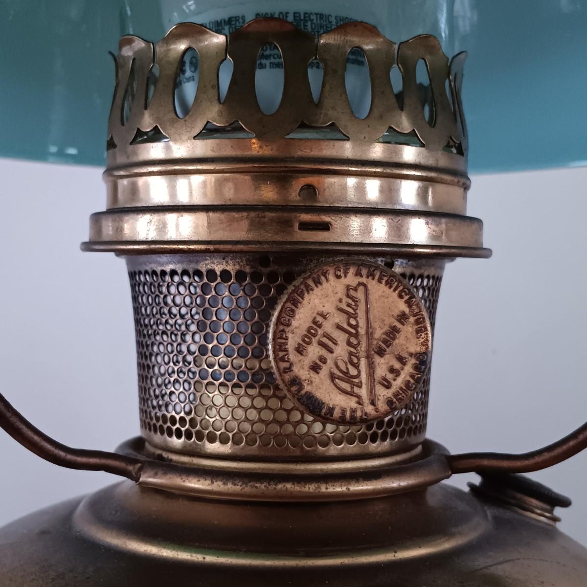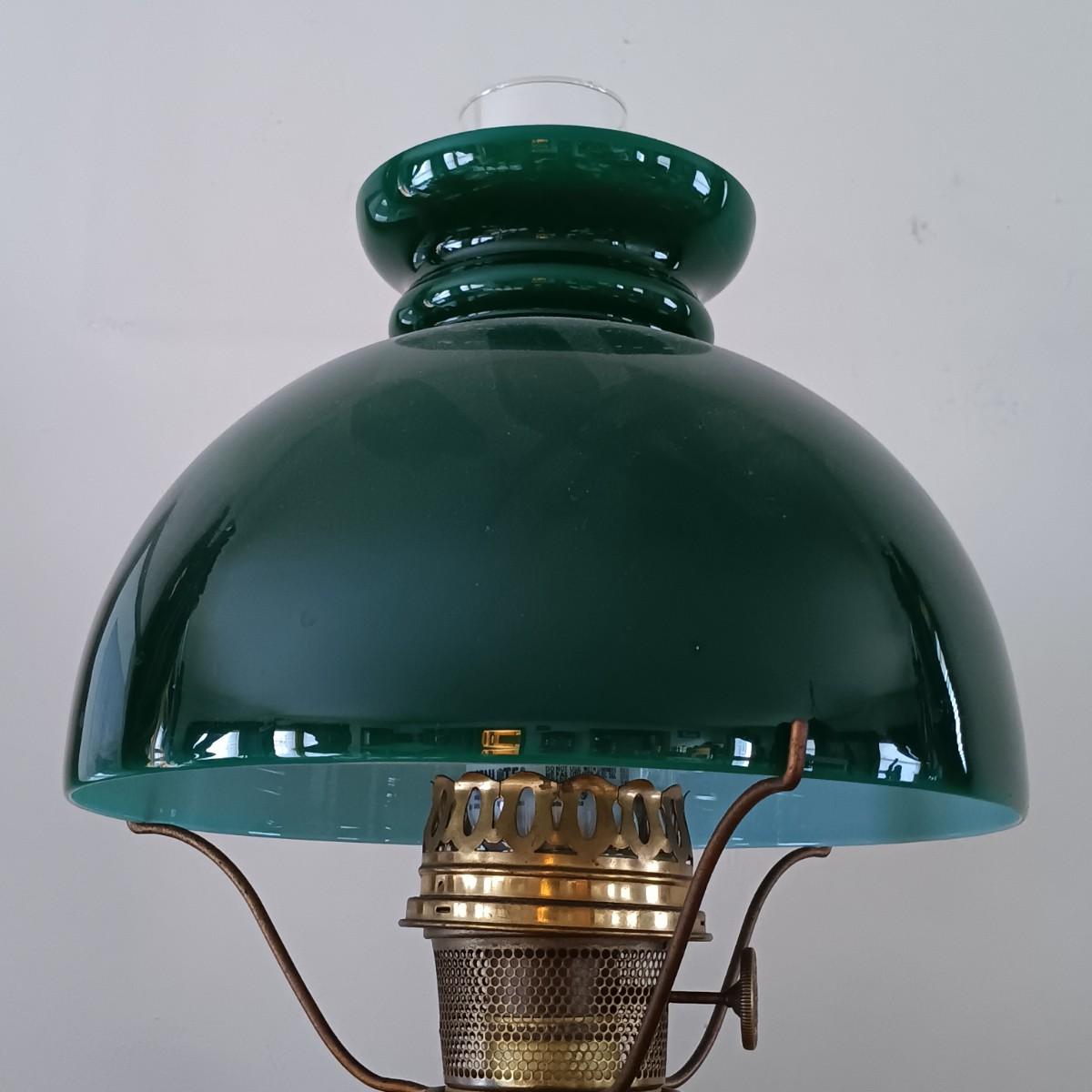 LOT 23: Antique Brass Oil Lamp w/ Green Glass Shade (Electrified)