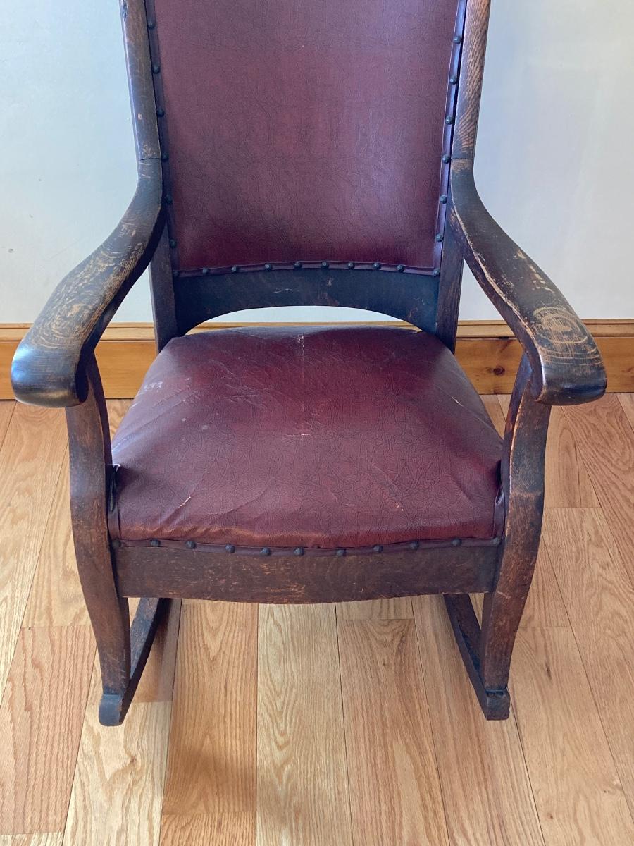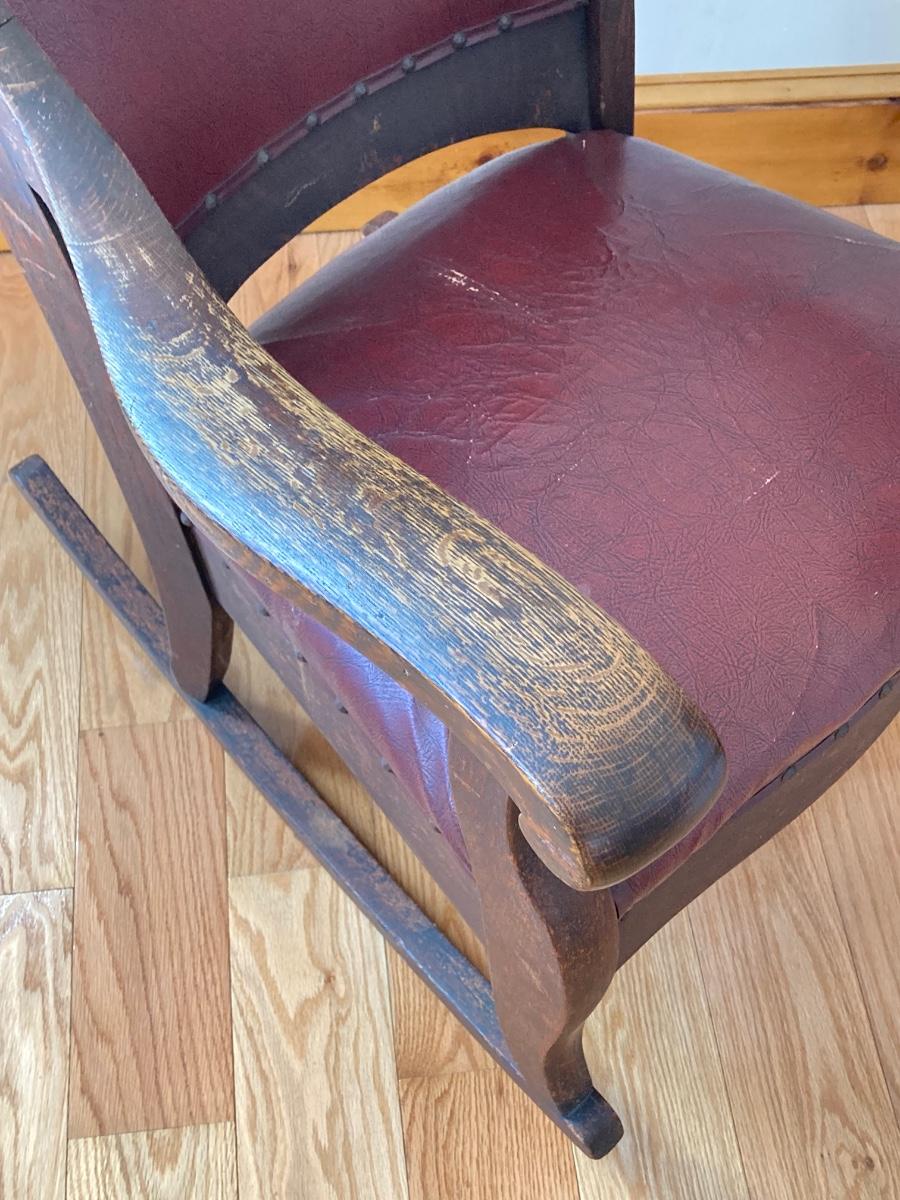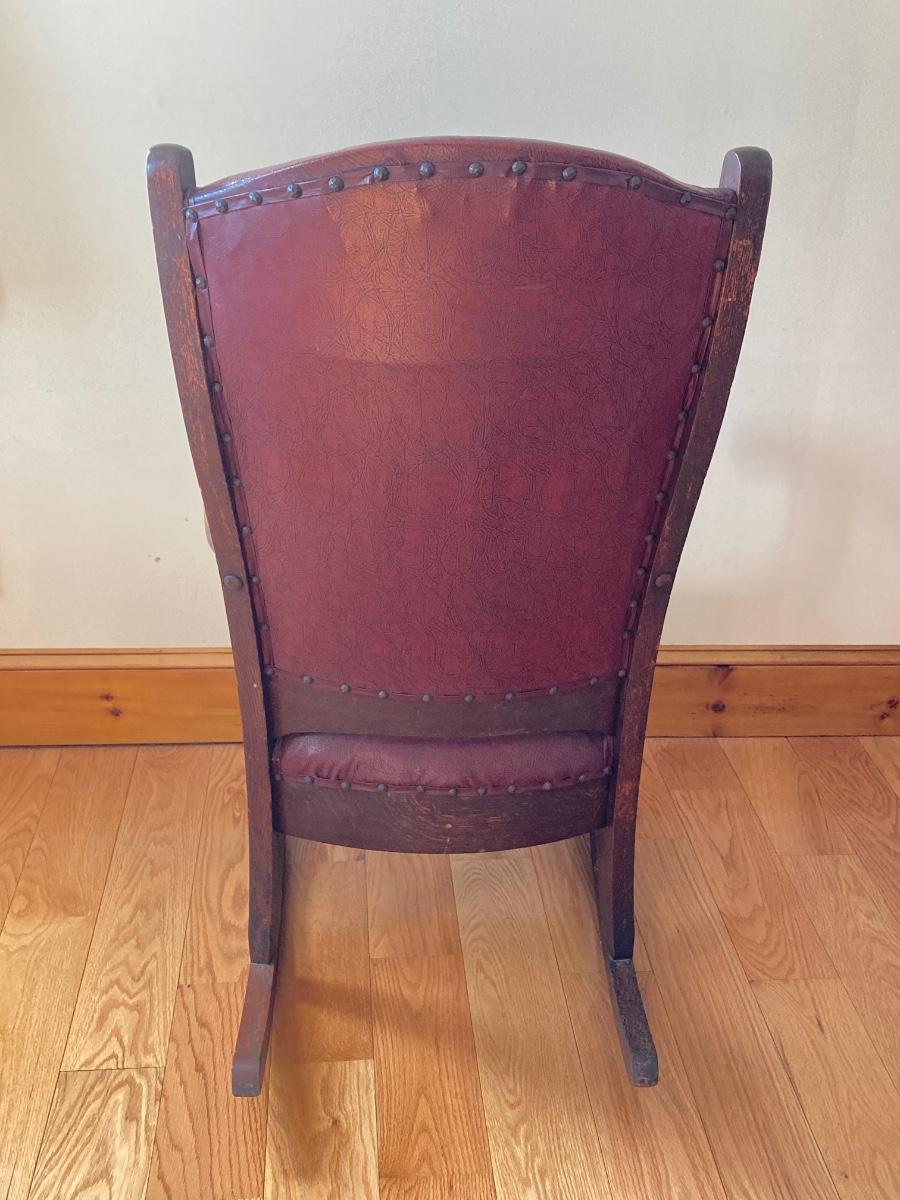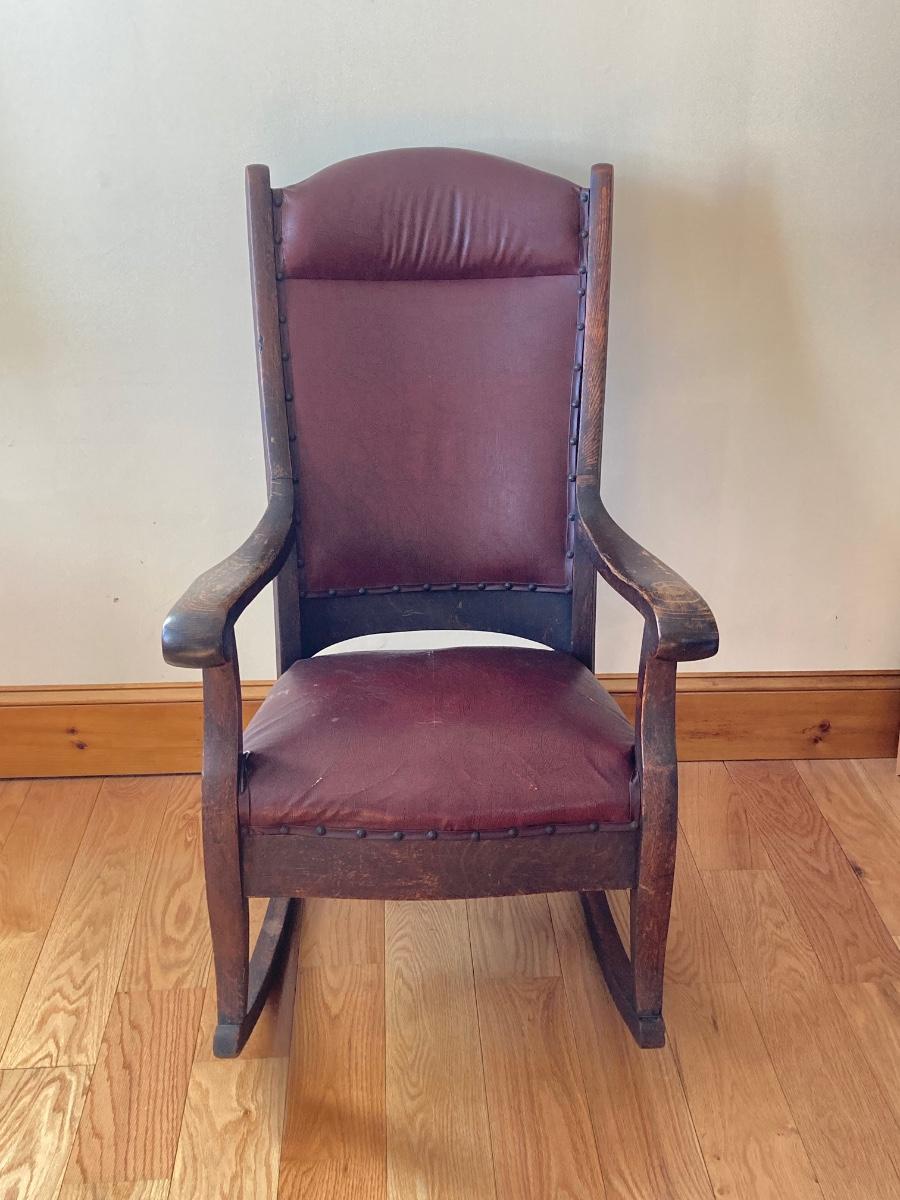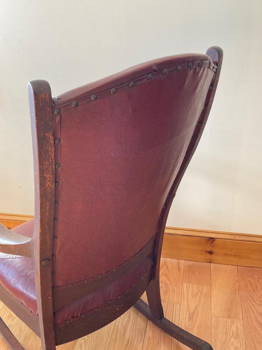 LOT 28: Vintage Wood and Leather Upholstered Rocking Chair